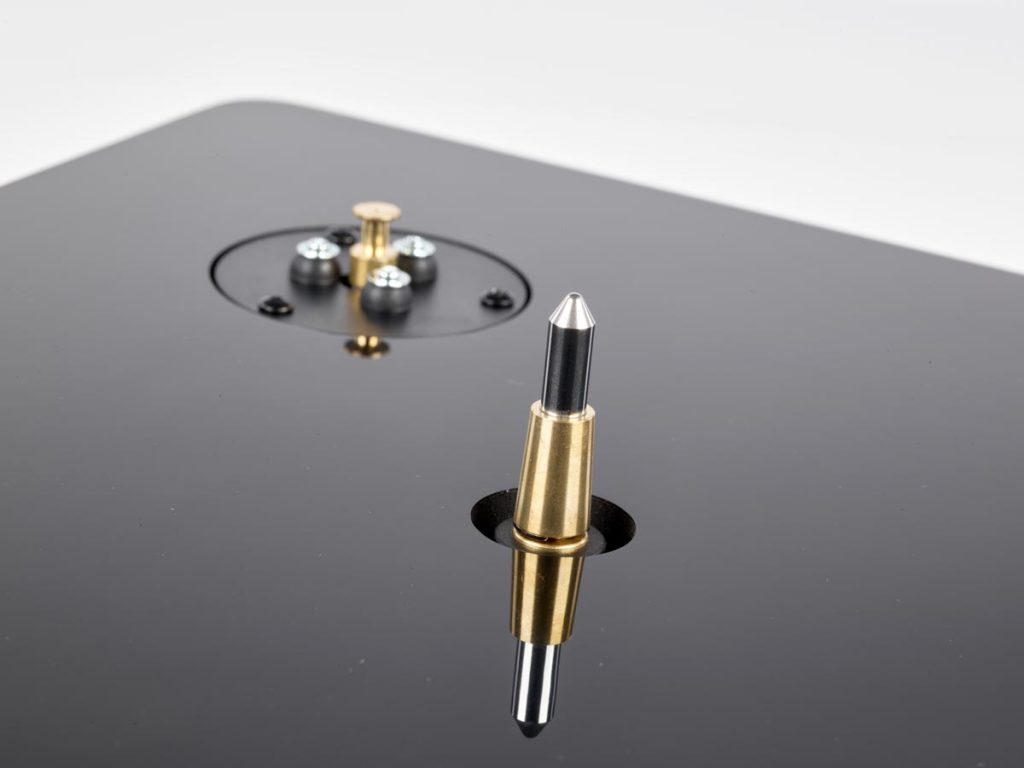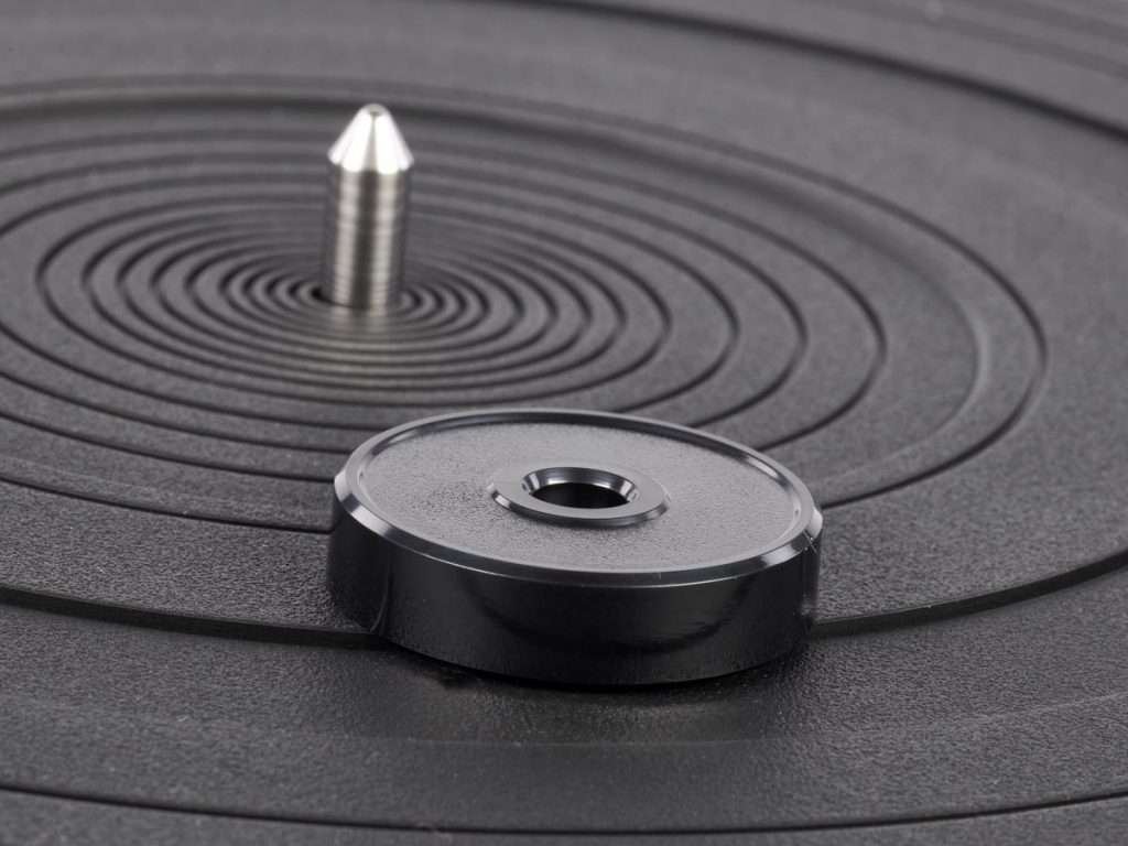 Der Aluminiumteller liegt auf einem Subteller, dessen gehärtete Stahlachse auf einer 8-Millimeter-Rubinkugel rotiert. Die Achse selbst steckt in Sinterbronzebuchsen. Das alles erweckt den Eindruck solider Handwerkskunst. Der Motor ist sowohl vom Chassis als auch vom Tonarm entkoppelt und erweist sich als recht zugkräftig. So waren selbst im langsamen Satz von Beethovens Hammerklaviersonate bei den Passagen, in denen Maurizio Pollini ins Grübeln verfällt, keine nennenswerten Tonhöhenschwankungen vernehmbar.