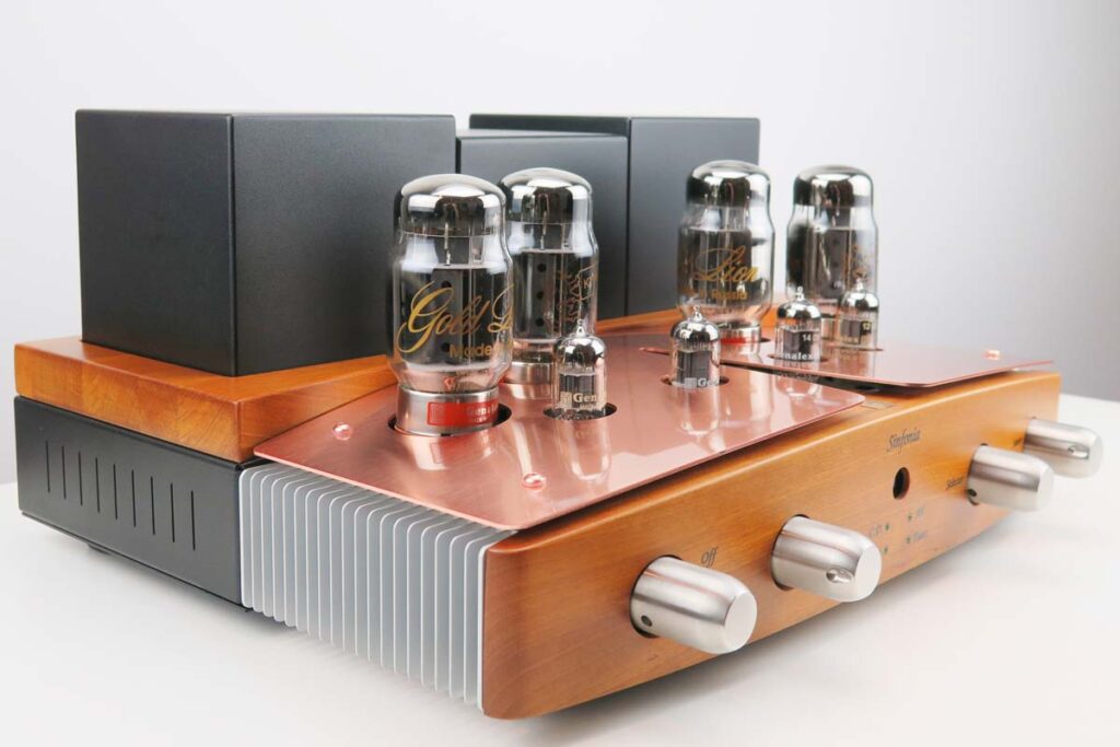 Der Sinfonia LE unterscheidet sich optisch vom 2005 erschienen Ur-Sinfonia durch die Mahagoni-Gehäuseverkleidung und die in Kupfer statt Aluminium ausgeführten Hitzeschilde.