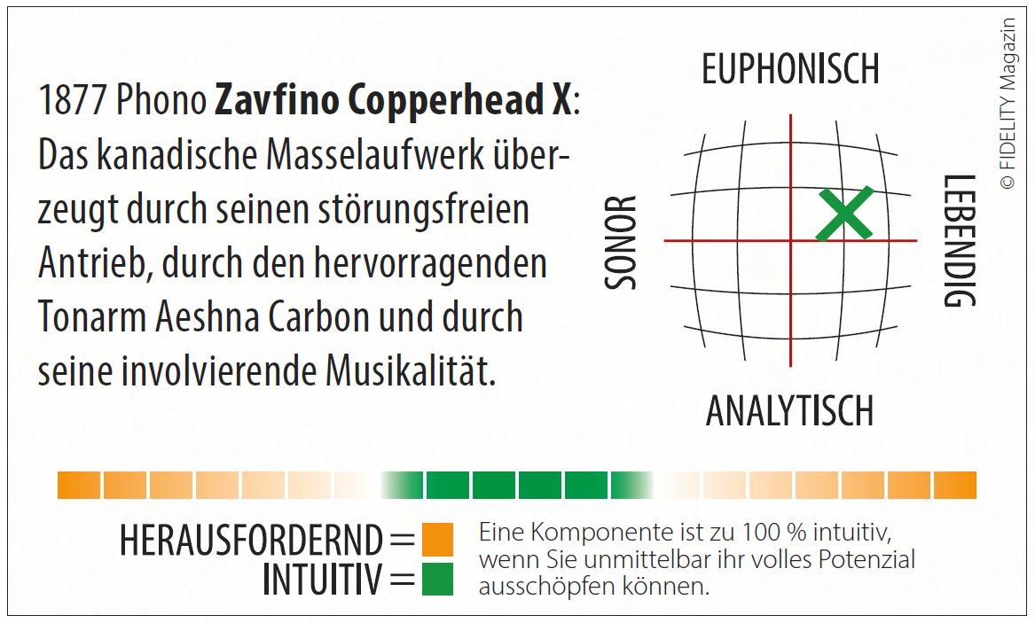 1877 Phono Zavfino Copperhead X: Das kanadische Masselaufwerk überzeugt durch seinen störungsfreien Antrieb, durch den hervorragenden Tonarm Aeshna Carbon und durch seine involvierende Musikalität.