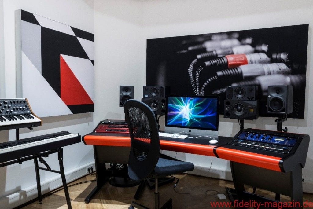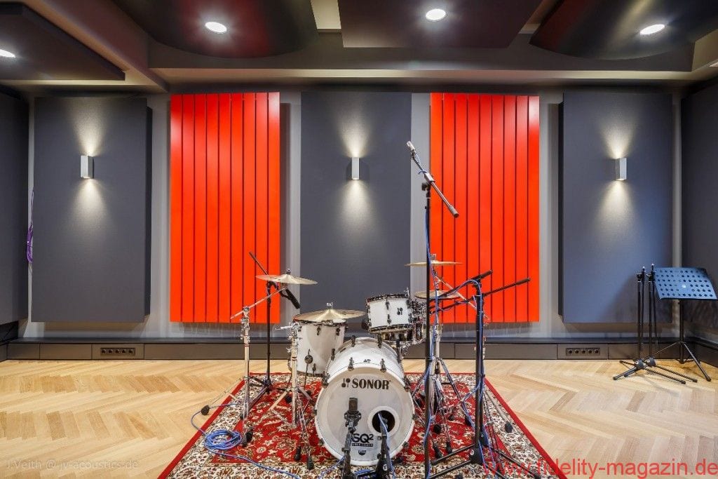 Im Studiobereich wurde die Bau- und Raumakustik auf höchstem Niveau von Jochen Veith und seinem Team von JV.Acoustics in der von ihm bekannten Professionalität umgesetzt. Und natürlich wurde auch hier in der Farbgestaltung das CI des Abbey Road Institute berücksichtigt.