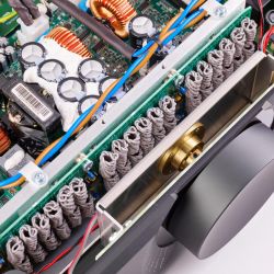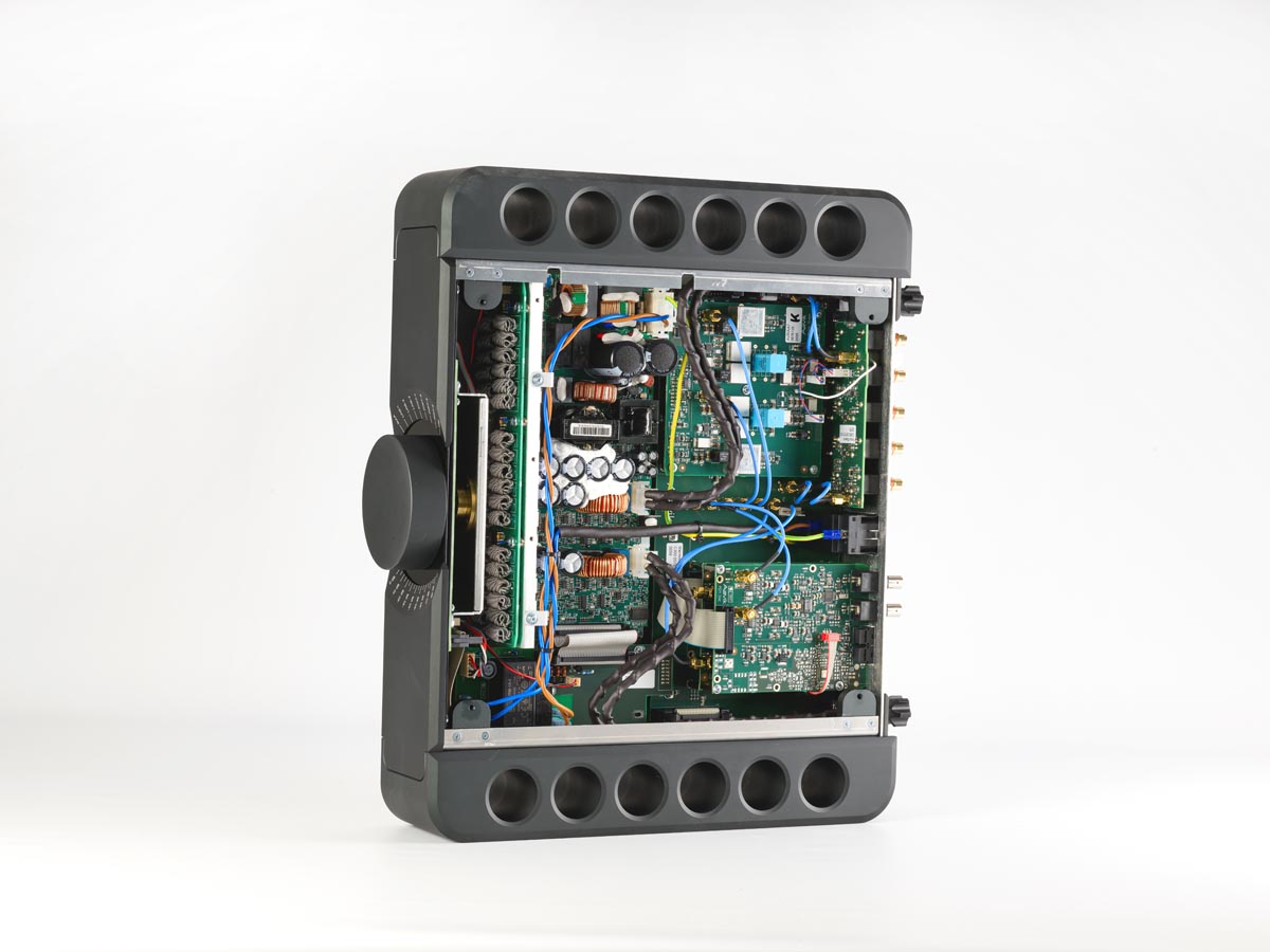 „Tesla-Spulen“ nennt Aavik die aus grau isoliertem Draht kunstvoll gefertigten Wickel, die eine lange Platine direkt hinter der Frontplatte einnehmen. Mit den spektakuläre Blitze erzeugenden Tesla-Trafos aus dem Physikunterricht haben die nichts zu tun. Michael Børresen will den großen Nikola Tesla auch eher als Inspirationsquelle für seine eigene Methode der Störunterdrückung in einer Hochfrequenzumgebung verstanden wissen. Die genaue Wirkungsweise kennt nur er – aber entscheidend ist ohnehin: Klingt es denn gut?