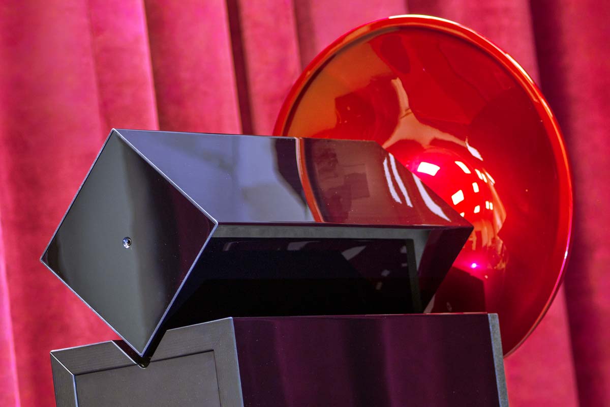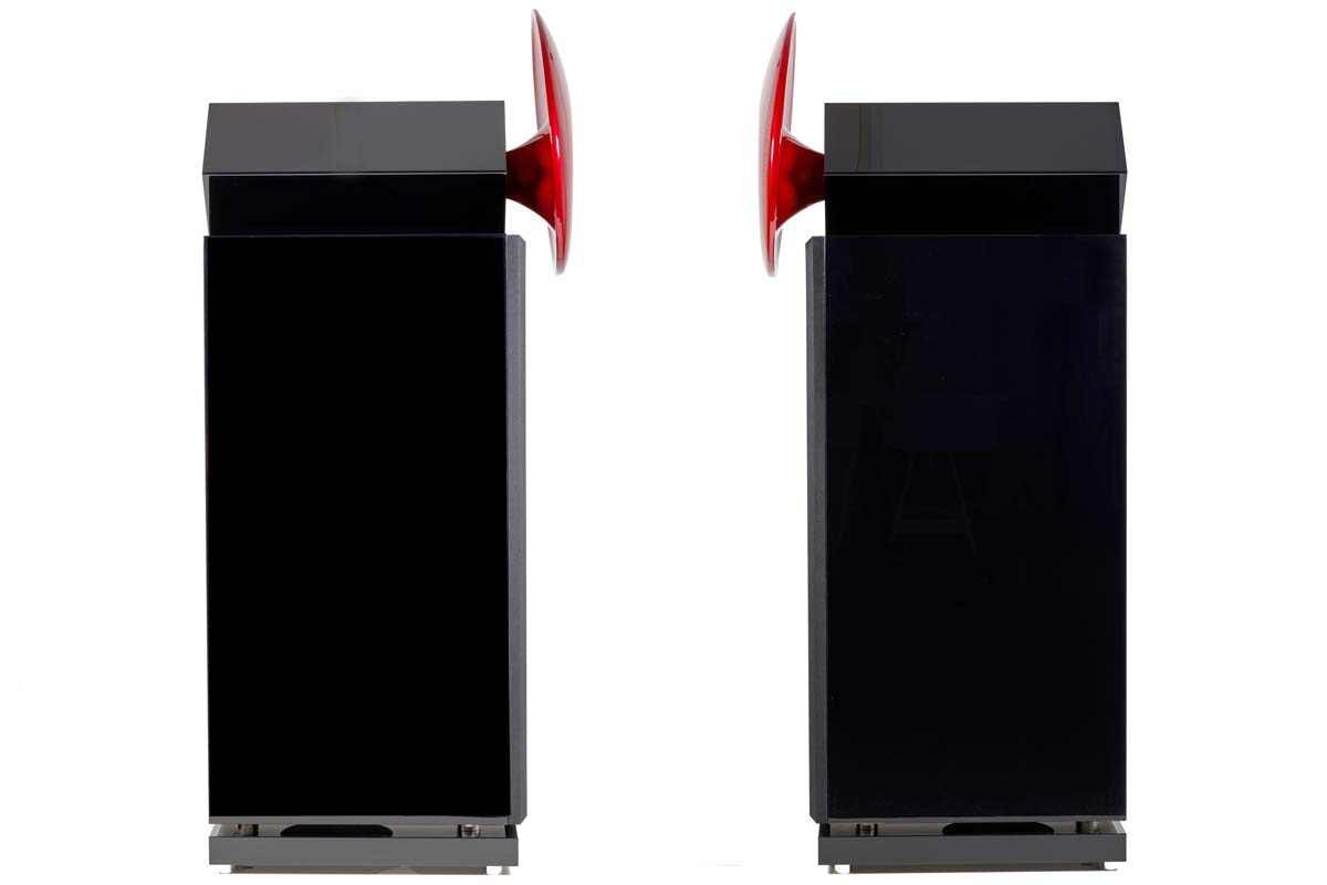 Optisch ist La Campanella ein Kunstwerk. Das Horn, Herzstück und Blickfang zugleich, prägt die gesamte Erscheinung. In acht Grundfarben erhältlich – von elegantem Midnight Blue über kräftiges Soul Red bis hin zu edlem Frosted Gold – lässt sich der Charakter des Lautsprechers je nach Wahl in Richtung Understatement oder Eyecatcher verschieben. Wer es ganz individuell mag, kann auch Sonderlackierungen aus der RAL-Palette oder dem Automobilbereich wählen. Das Gehäuse aus schwarzem oder weißem Acryl wirkt je nach Lichtspiel fast wie ein skulpturales Objekt, das ebenso gut in einer Galerie stehen könnte wie in einem Hörraum. Allerdings sollte man sich darauf einstellen, dass auf den hochglänzenden Oberflächen jedes Staubkorn und jeder Fingerabdruck sichtbar wird. Ein Staubtuch und eine Flasche Glasreiniger sollten daher stets griffbereit sein – nicht, weil die Lautsprecher besondere Pflege verlangen, sondern weil sie es schaffen, dass selbst kleinste Alltagsspuren wie störende Fremdkörper wirken. Man könnte fast sagen: Wer sich für diesen Lautsprecher entscheidet, hört nicht nur besser hin, sondern sieht auch genauer hin.