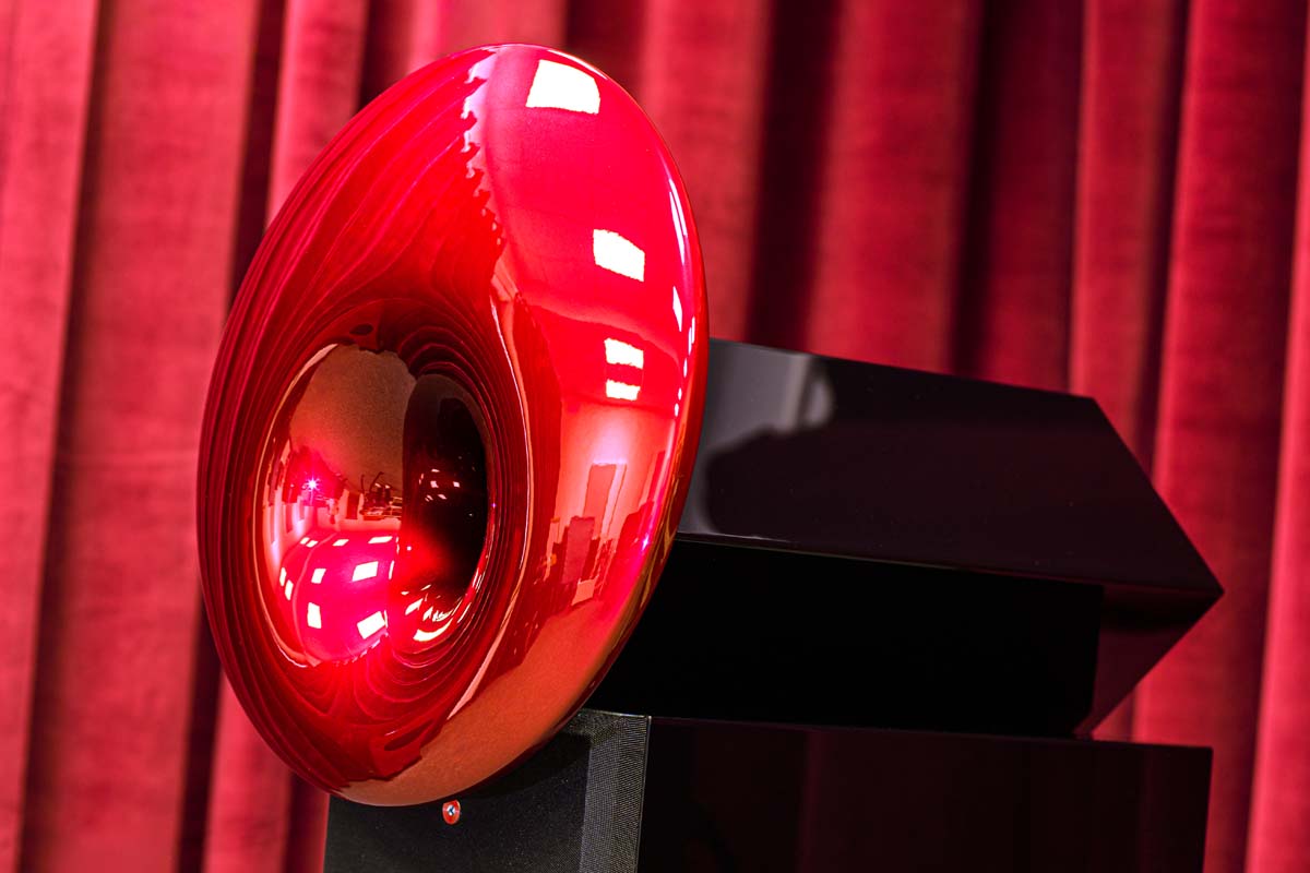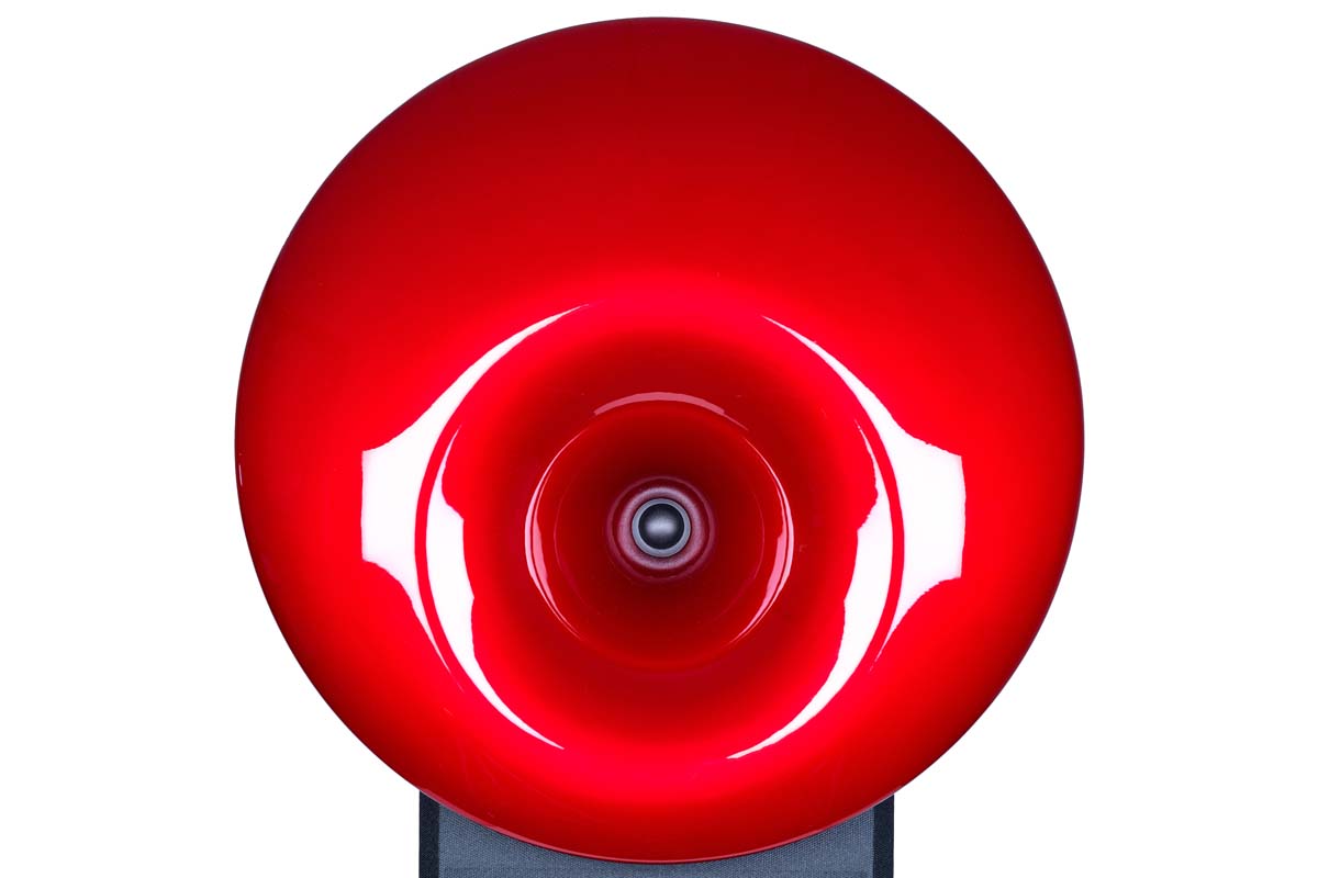 Technisch steckt in der Campanella das hypersphärische Horn, eine Weiterentwicklung der klassischen sphärischen Hornform. Anders als Kugelwellen- oder Exponentialhörner geht diese Konstruktion von einem imaginären Kugelpunkt im Unendlichen aus und wölbt sich ab einem Öffnungswinkel von 180 Grad wieder zurück – ein Kunstgriff, der nicht nur optisch markant wirkt, sondern auch die Schallabstrahlung optimiert. Die asymmetrische, patentierte Form sorgt dafür, dass der Übergang zum Tieftonbereich homogener und phasenstabiler gelingt als bei herkömmlichen Hornformen, bei denen die Schallwelle abrupt abreißt. Der nutzbare Übertragungsbereich reicht von 800 Hertz bis 25 Kilohertz.