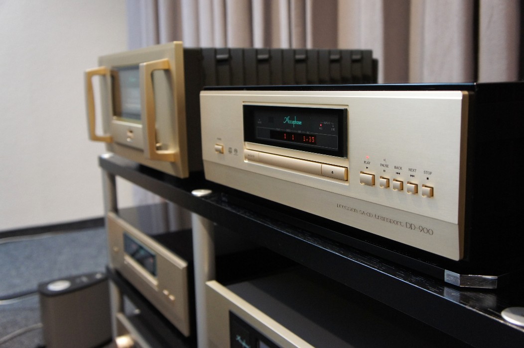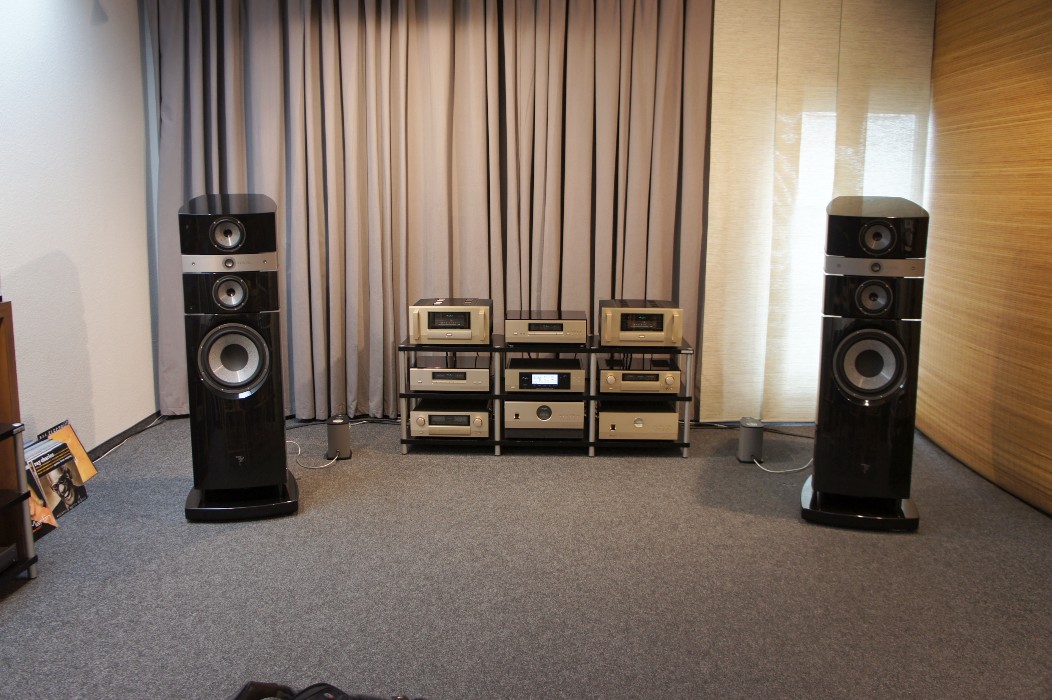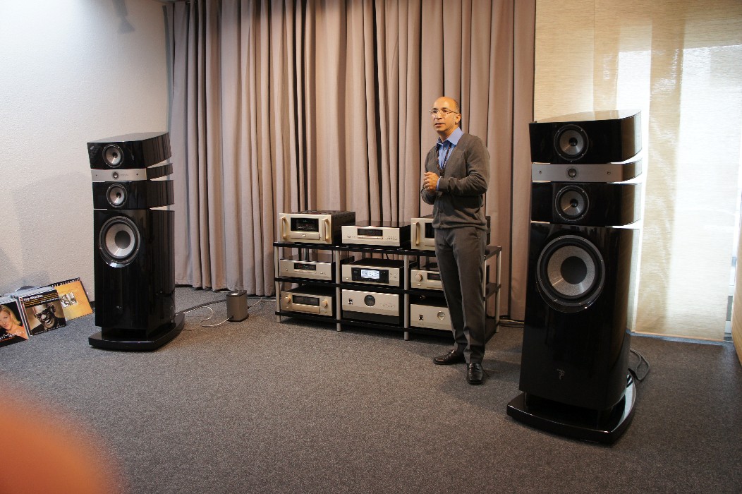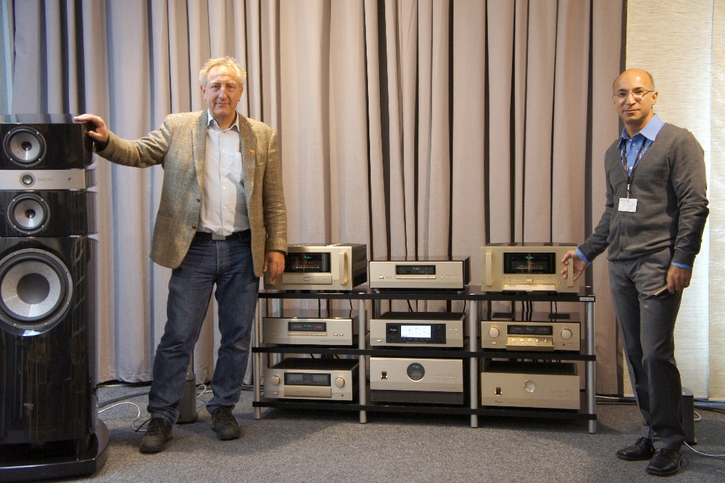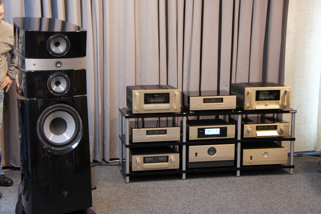 Am 28. und 29 September hatten PIA, der deutsche Vertrieb der japanischen Nobelschmiede Accuphase, nach Essen zu Aura Hifi eingeladen. Moderiert von Herrn Babak Moayedpour, dem Verkaufsrepräsentant von PIA, wurde eine Anlage vorgeführt, die aktuell so nur zweimal in ganz Europa zu sehen und zu hören ist. Die neue Laufwerk Wandler Kombination DP 900 und DC 901, die größte Vorstufe C 3800 und das neue State of the Art Gerät der Japaner in Sachen Class A; die A-200 Monos mit sagenhaften 200 Watt in reinem Class A. Nebenbei waren dann noch der Power Cleaner PS 1220 und der Digitalen Raumkorrektur DG 48 vor Ort, der aber aufgrund des vom Pia Team für ausgezeichnet empfundenen Hörraums bei Aura Hifi nicht benötigt wurde. Als Lautsprecher stand ein weiterer Gigant zur Verfügung: die Focal Stella Utopia, der technologischen Zwillingsschwester der bekannten Referenz der Franzosen, der Grande Utopia. Diese Türme von einem Lautsprecher sind ca. 156 cm hoch, 54 cm breit, 83 cm tief und 165 kg schwer.