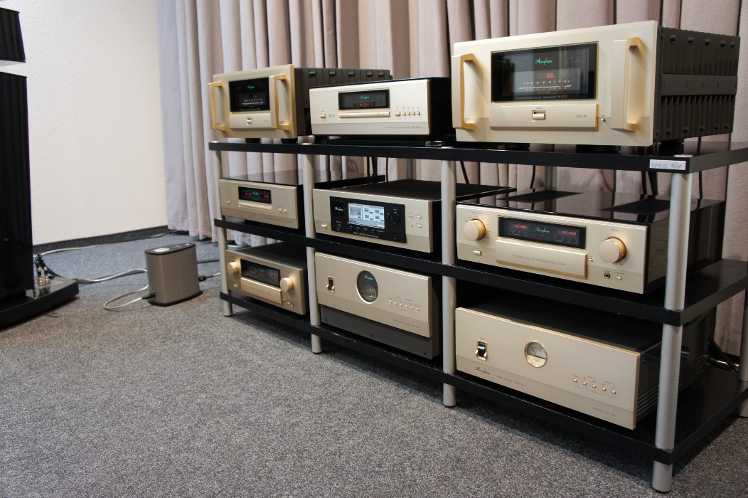 Hier konnte offenbar auch die Elektronik ihre ganzen Stärken ausspielen und einen nicht geringen Anteil dürften dabei die wahrlich gigantischen Monos A-200 gehabt haben, die auch bei Originallautstärken nicht wirklich gefordert schienen. Der Eindruck, dass es bei dieser Anlage kein Limit zu geben schien wurde begleitet durch eine phantastische Qualität der musikalischen Wiedergabe, die förmlich in Stein gemeißelt war. Ohne Zweifel ist dies ein echtes Statement von Accuphase, das erneut deutlich macht, warum diese Firma völlig zu Recht und seit Jahrzehnten im Olymp des High Ends einen vordersten Platz innehat. Neben den phantastischen Klangergebnissen und einer hohen Wertstabilität der Geräte, die wohl ohne Übertreibung als einmalig gelten kann, ist es aber auch weiterhin die Haptik beim Umgang mit dem Equipment, dass einen immer wieder wie ein Kind unter dem Weihnachtsbau grinsen lässt. Wer auch nur einen Knopf oder einen Schalter eines Accuphase Gerätes einmal in seinem Leben betätigt hat, wird – neben dem Klangerlebnis – sicher auch dieses Gefühl nie wieder vergessen.