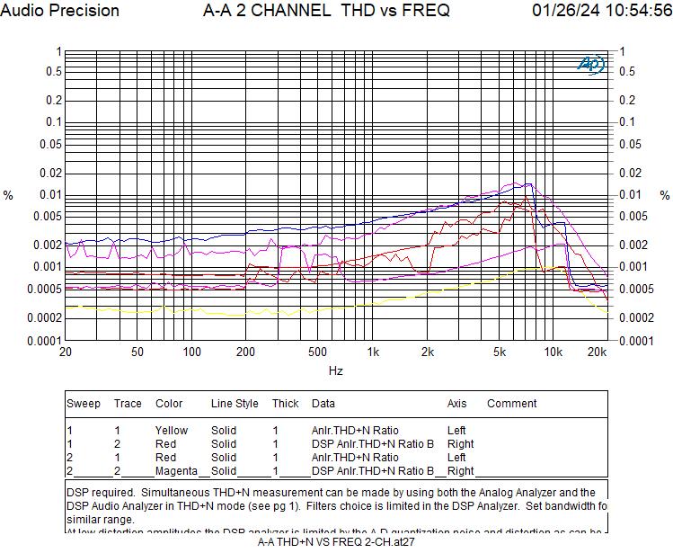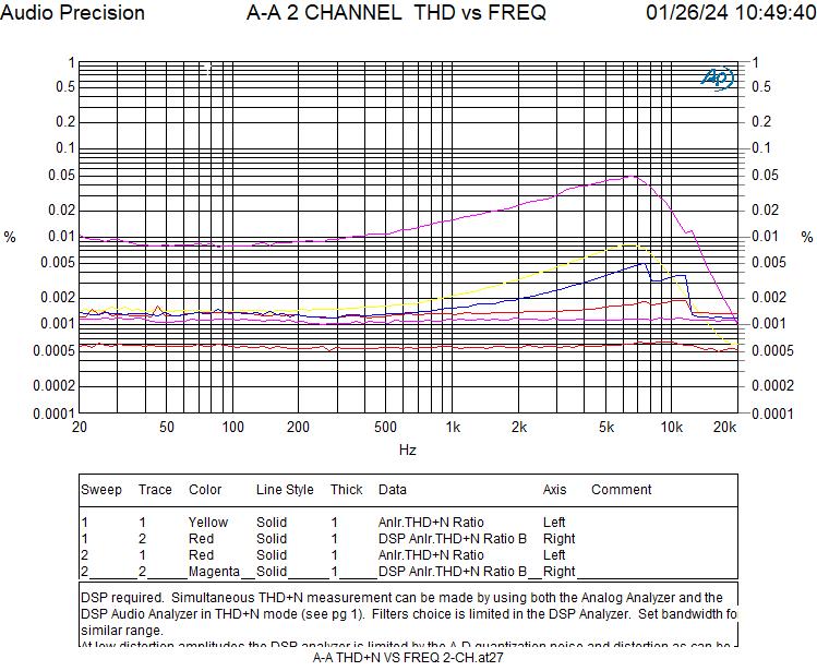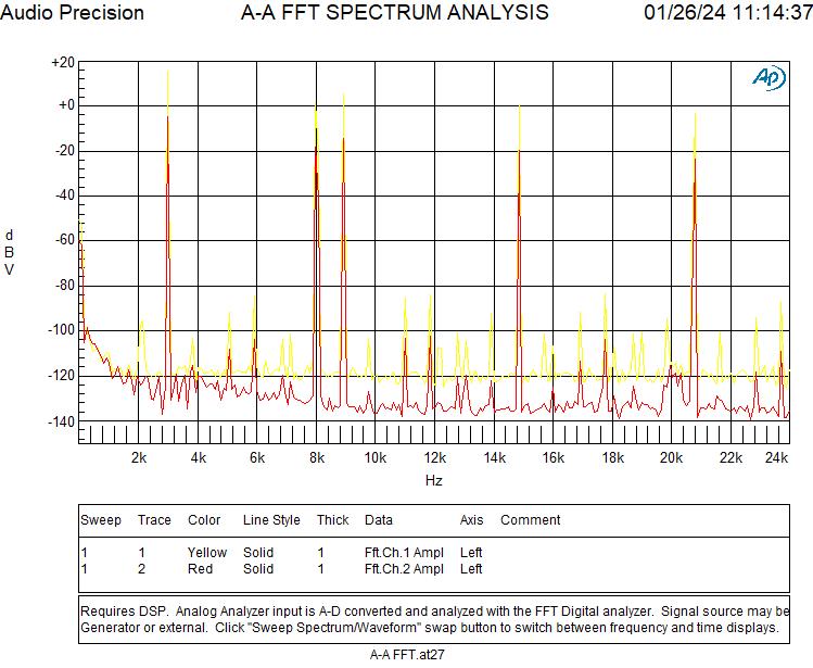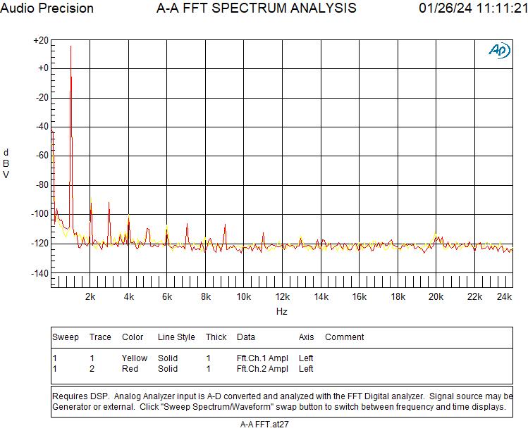 Der Noise Level entspricht den Herstellerangaben. Auch sieht man die niedrig liegenden Verzerrungen, in erster Linie zweite und dritte Harmonische.
