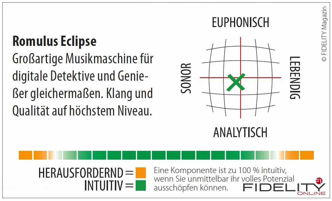 Gerade in Zeiten, in denen die digitale musikalische Wiedergabe immer stärker in den profanen Consumerbereich hinabsinkt und fragwürdige 24/7-Dauerstreams das Musikbewusstsein überfluten, erfreut sich der auf Nachhaltigkeit und Entschleunigung konzentrierte Musikliebhaber über eine technisch perfekte High-End-Maschine wie den Romulus, über ein Gerät, das haptisch und klanglich ein unverrückbarer Fels in der Brandung ist. Dank Jim White kehrt höchste Qualität und Ernsthaftigkeit in die digitale Musikreproduktion zurück. Die Zukunft kann kommen.