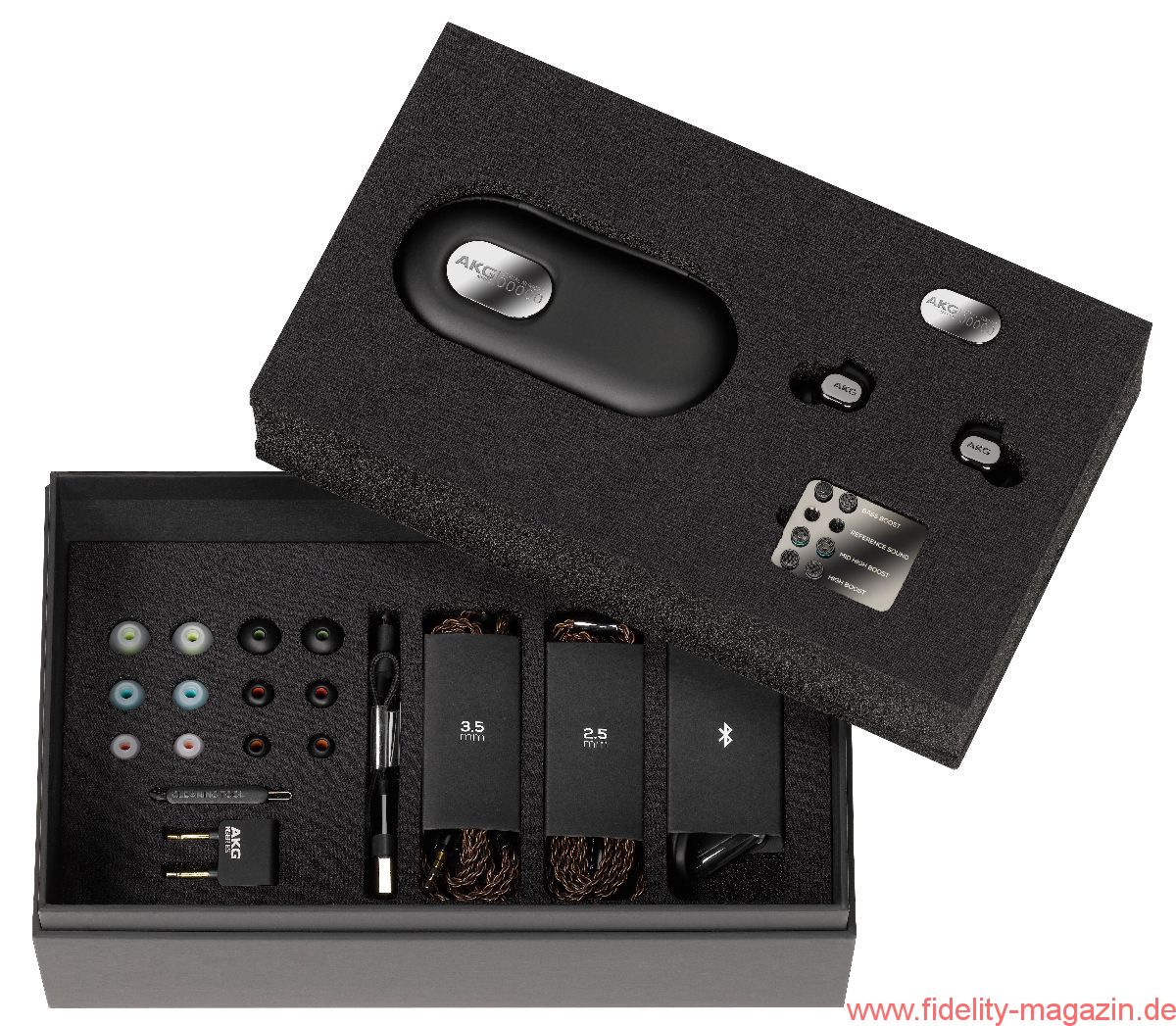 Der AKG Referenzklang des Kopfhörers erzeugt kristallklaren Klang mit einer warmen Basswiedergabe und liefert damit ein absolut unverfälschtes Hörerlebnis. Aus der hybriden Anordnung von einem dynamischen und vier Balanced-Armature-Treibern entsteht ein wunderbar ausgewogener Fünf-Wege-Kopfhörer mit einem extrem niedrigen Klirrfaktor sowie präzisen Mitten und kristallklaren Höhen. Audiophile haben, je nach Vorliebe, die Option der Bass- und Höhenanhebung oder eines linearen Klangs.