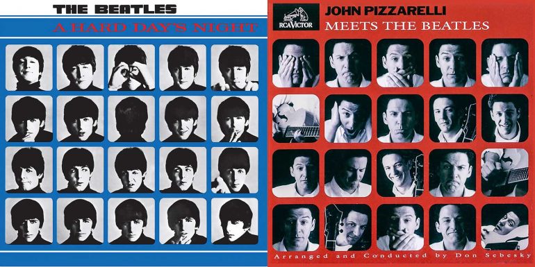 Die Verbindung zum Film wird am Plattencover von A Hard Day’s Night schon deutlich. Je fünf Porträts der vier Musiker sind hier nebeneinander gereiht wie Einzelbilder eines Filmstreifens. Die Fotos machte Robert Freeman, damals der Hausfotograf der Beatles, der die Covershots für eine ganze Reihe früher Beatles-Alben lieferte. Wie fast jedes Beatles-Cover hat auch dieses zahlreiche Imitationen, Anspielungen und Parodien angeregt – bis hin zu den Bangles und dem Soundtrack-Album von High Fidelity. Unter diesen Bild-Hommagen befindet sich (natürlich) auch ein amerikanisches Jazzalbum. Gleich 20-mal sieht man John Pizzarelli auf dem Cover seines jazzigen Beatles-Tributs – dem Mann mangelt es nicht an Selbstbewusstsein. Warum auch? Er spielt – wie sein Vater Bucky Pizzarelli, der noch mit Benny Goodman arbeitete – eine sehr flotte Swinggitarre. Und nicht nur das: Er ist auch ein ordentlicher Sänger, ein Jazz-Crooner – Nat King Cole und Frank Sinatra gehören zu seinen Vorbildern. Ein einziges der zwölf Stücke auf John Pizzarelli Meets The Beatles ist als bloßer Instrumental aufgenommen.
