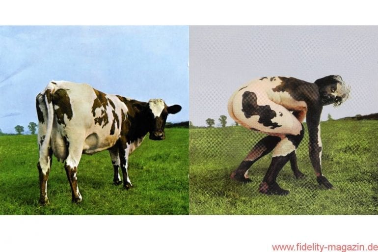 Nichts Beeindruckendes, nichts Dramatisches. Setzt man aber so ein Foto einer weidenden Kuh aufs Cover einer Rockplatte, dazu noch ganz ohne Text und Titel dabei, wird aus dem Tier eine Ikone, ein Sinnbild, ein Kunstwerk. Das ist der Andy-Warhol-Effekt: Eine ausgetrunkene Getränkedose wird im Museum zum „art object“. Nicht umsonst war bei diesem Plattencover von Pink Floyd eine renommierte Designer-Firma am Werk. Gerne möchte man sich vorstellen, wie Storm Thorgerson, der ehemalige Schulfreund von Roger Waters und Syd Barrett und Begründer der Grafikdesign-Agentur Hipgnosis, einst mit der Kamera über englische Kuhwiesen streifte, auf der Suche nach diesem Fotomotiv. Denn ein einfaches, ein bodenständiges Coverbild wünschten sich die Jungs von der Band. Es war das Jahr 1970 und das Psychedelic-Space-LSD-Image von Pink Floyd schon fast ein alter Hut. 1970 war doch fast alles spacig. Also: Etwas ganz anderes musste her. So kam die Kuh ins Spiel. Das Tier hieß übrigens Lulubelle die Dritte.