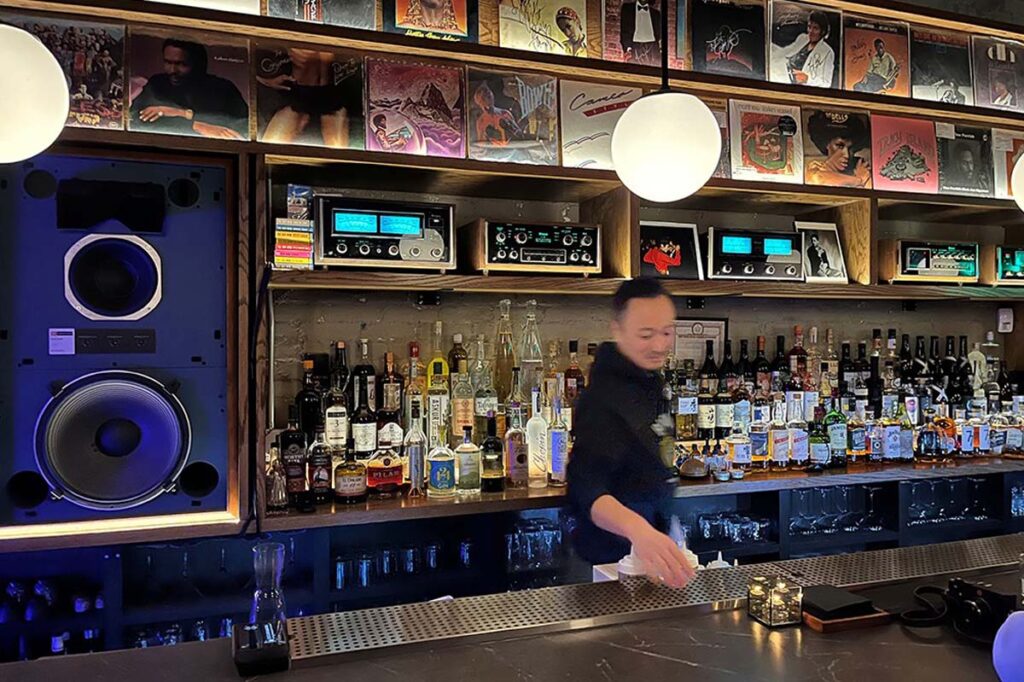 Waren an der Eingangstür zum All Blues ein paar im Fenster platzierte Alben noch der einzige Hinweis darauf, dass ich am richtigen Ort bin, verfliegen alle meine Zweifel in dem Augenblick, in dem ich durch die Tür trete – in die Wand hinter der Bar ist ein Paar riesiger JBL-Studiomonitore eingelassen, begleitet von mehreren alten McIntosh-Geräten und Reihen von LPs. Das All Blues ist in zwei Hälften unterteilt: den Barbereich und den durch einen Vorhang abgetrennten Hörraum.