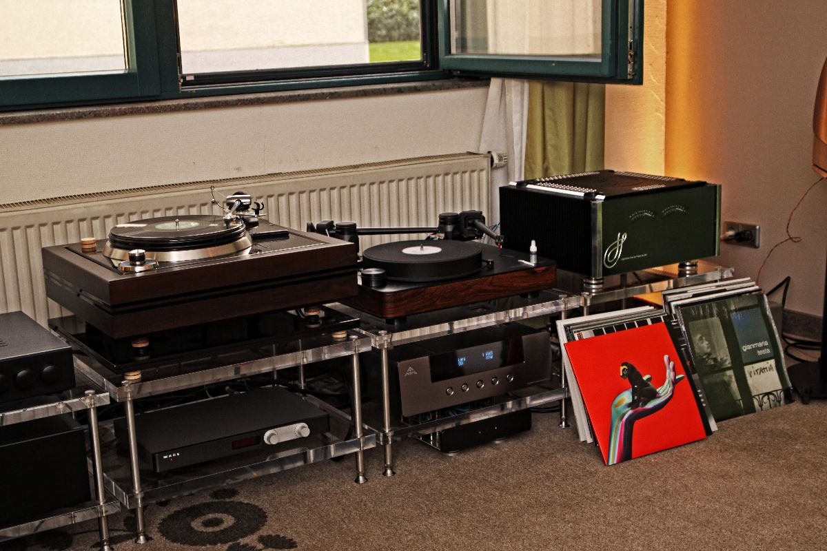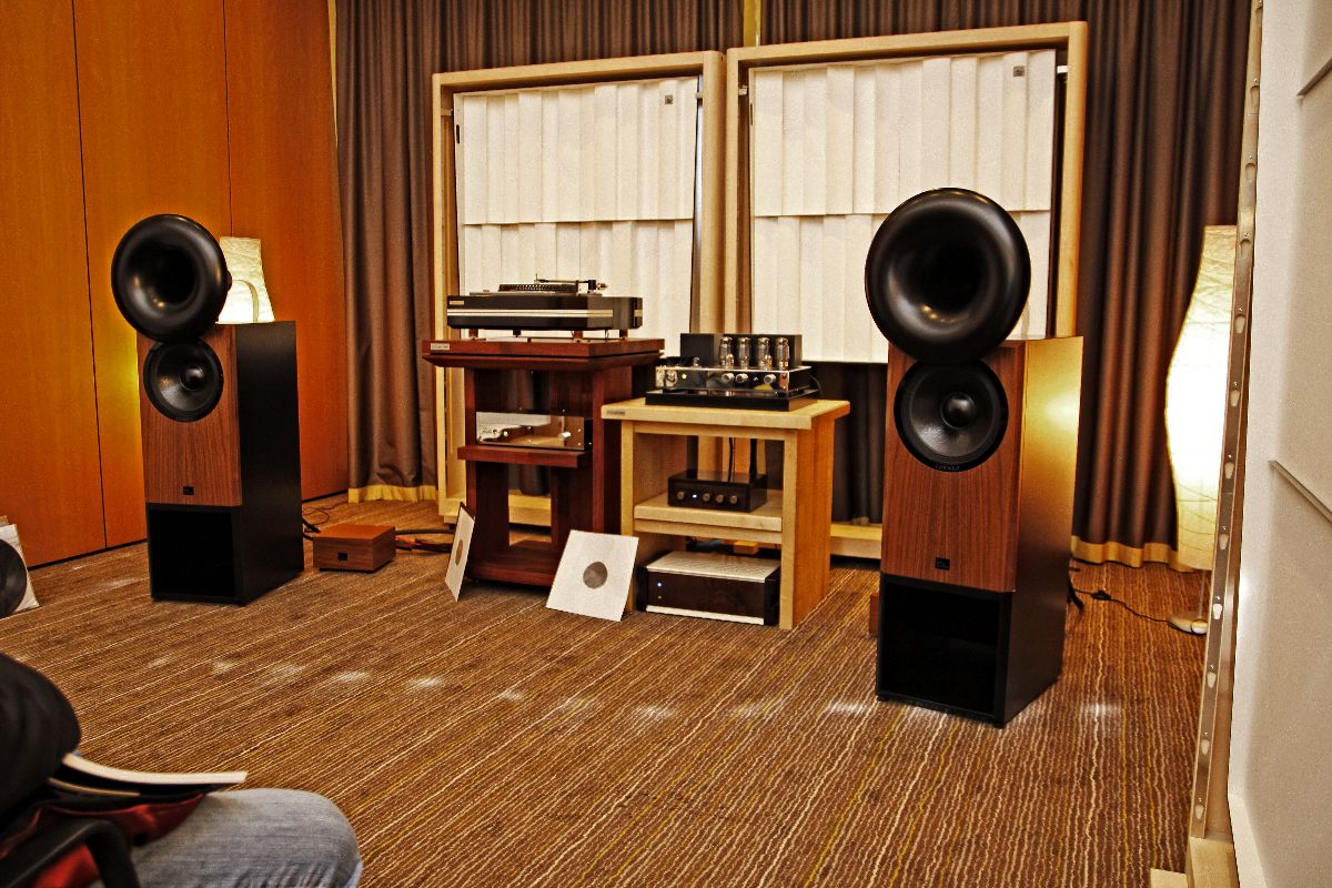 Ebenso positiv aufgefallen ist mir der Raum von „Horn-Kultur“: aufwendig akustisch behandelt und ausgestattet mit Garrard 401 Frontend, Jadis Vollverstärker und einem großen 2-Wege-Hornsystem von Joachim Bembennek, Mr. Horn-Kultur. Dieses System bot guten Durchzug, echten Punch und jede Menge Grip, die Bühne war sauber sortiert und es hat rundum richtig Laune gemacht. Aber Achtung, auch hier drohte wieder ein Frontalangriff aufs Portemonnaie. So ist es halt: Damit die Kinnlade runterklappt, müssen Opfer gebracht werden.