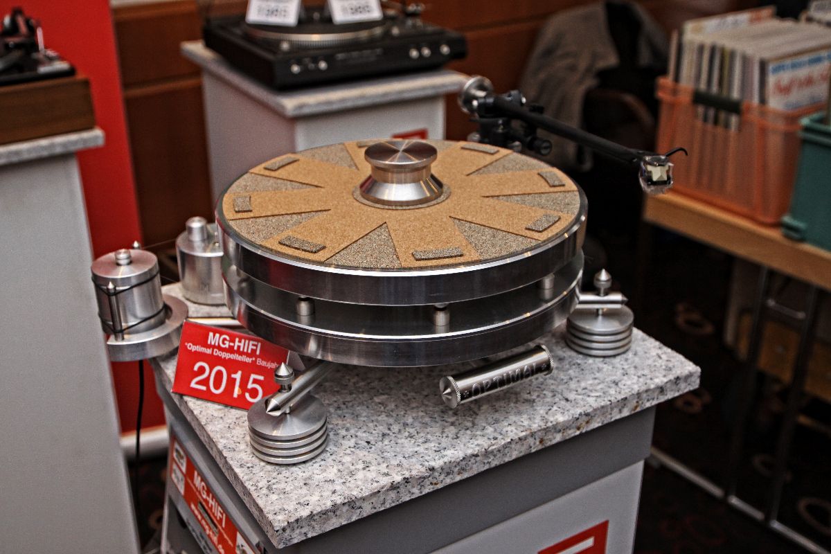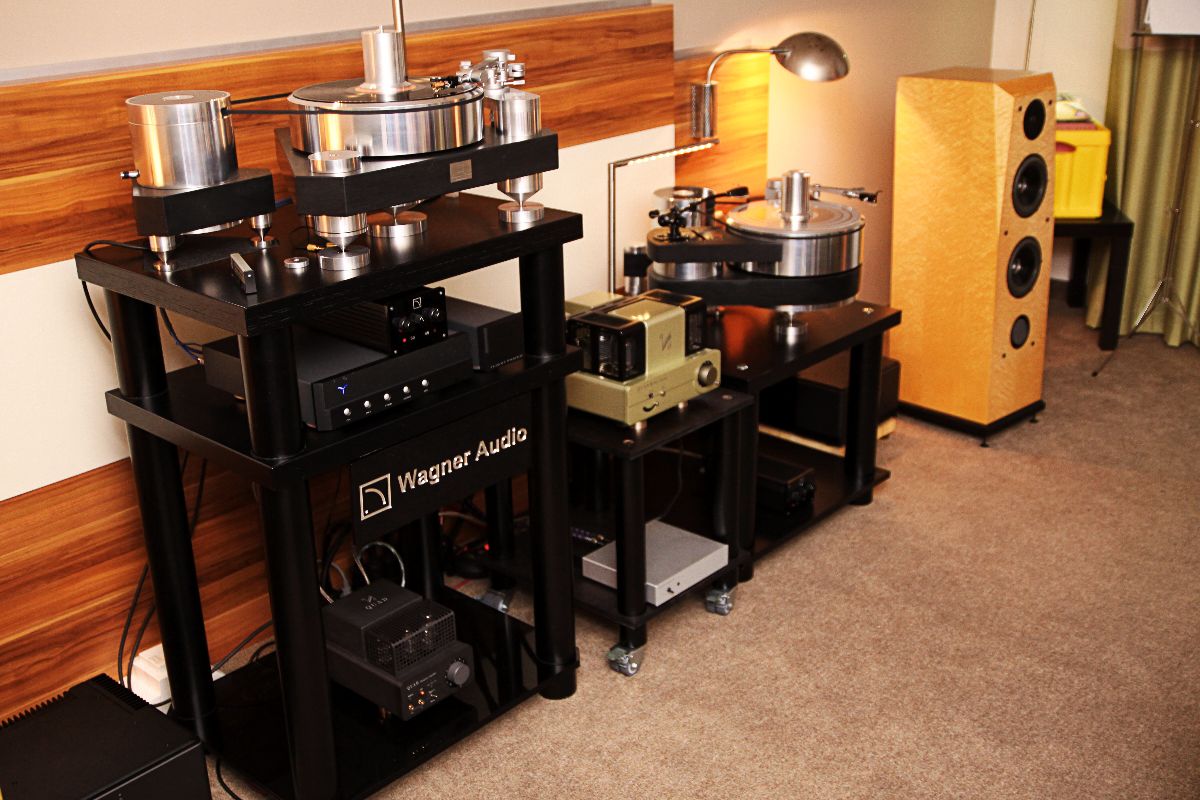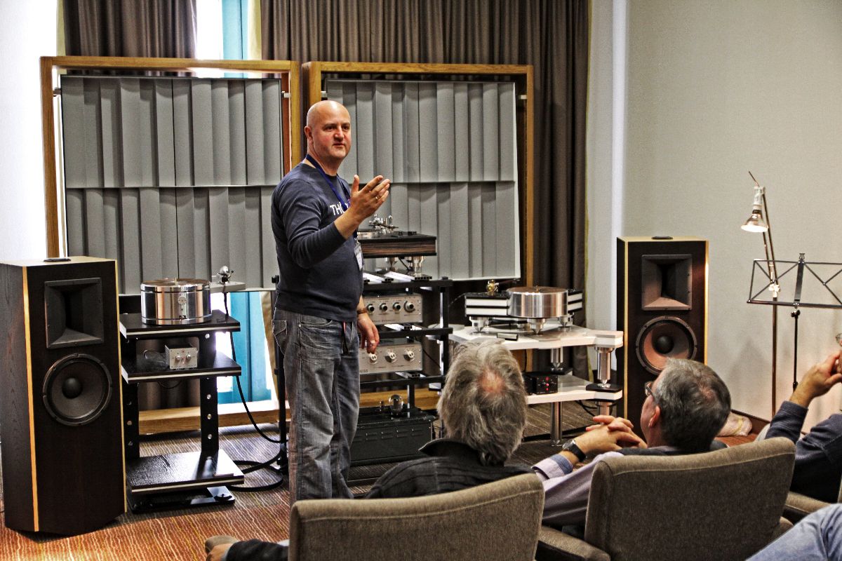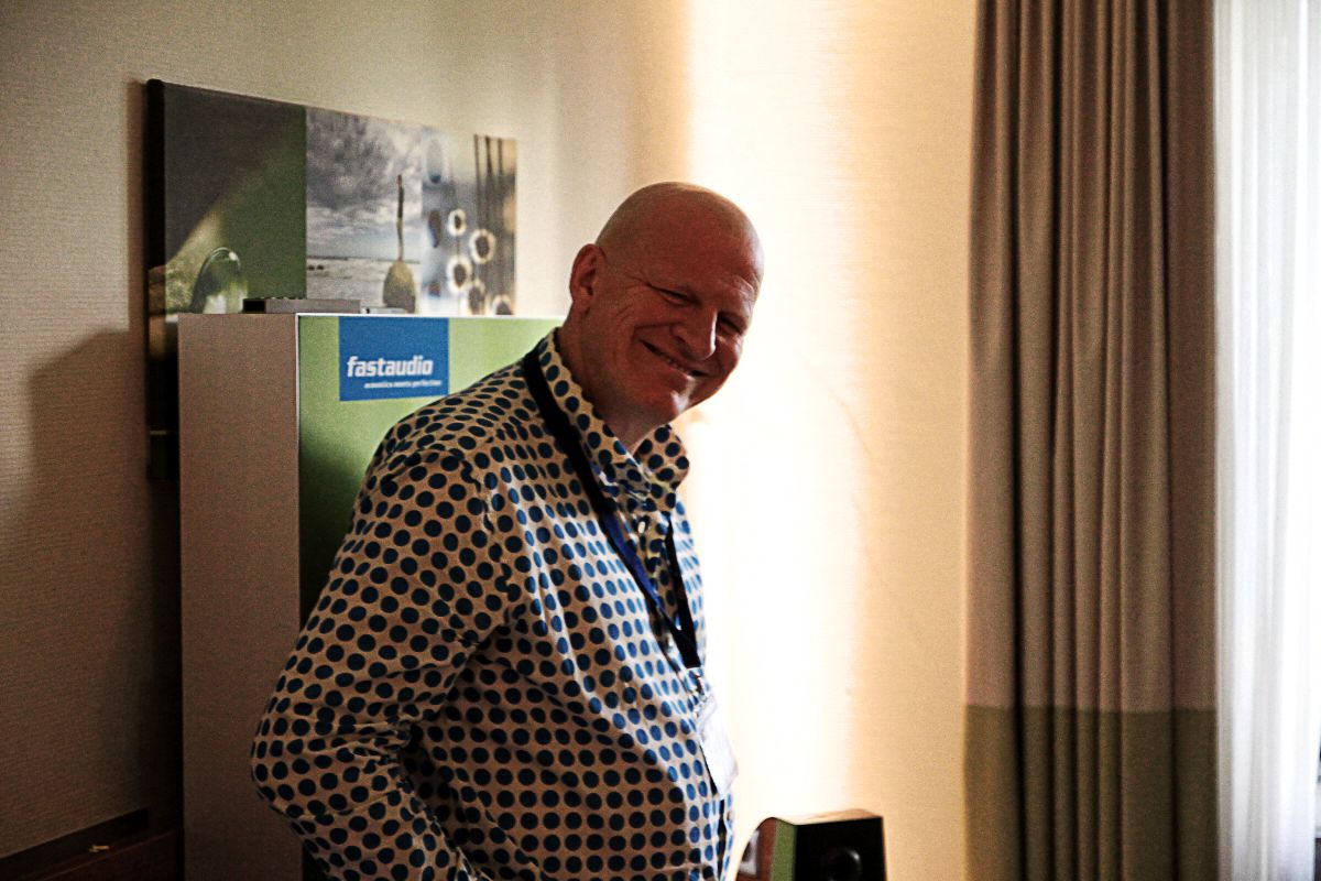 Zurück zur eigentlichen Veranstaltung. Die Qualität der Vorführungen reichte von Spitzenklasse bis hin zu lausig, wobei fairerweise gesagt werden muss, das letztere nur sehr wenige Ausnahmen waren. Und fragen Sie mich bitte nicht nach deren Namen, die habe ich eh schon wieder vergessen. Den Preis fürs beste Entertainment (in Verbindung mit sehr gutem Klang) ging dieses Jahr an Thomas Fast von Fastaudio. Thomas Fast demonstrierte die Unterschiede zwischen verschiedenen Lyra-Tonabnehmern mit ein und derselben Schallplatte. Den Einstieg machte das Lyra Kleo, gefolgt vom Lyra Etna und gekrönt vom Lyra Atlas. Die Unterschiede waren mit jedem Plattenbeispiel sofort nachvollziehbar, und zwar klar und eindeutig. Doch der „Aufstieg“ bei Lyra ist aber auch ein harter Angriff aufs Portemonnaie. Beinahe noch besser als der Klangvergleich war bei Thomas Fast die Musikauswahl: nicht das übliche High-End-Gedudel, sondern unkonventionelle Stücke von jungen Bands aus dem Electronica-Genre, abgerundet mit einem Barry-White-Remix-Album – einfach zum Nieederknien. Das war große Klasse und für mich „volle Punktzahl“, nicht zuletzt wegen des großartigen Gastgebers … äh … Entertainers.