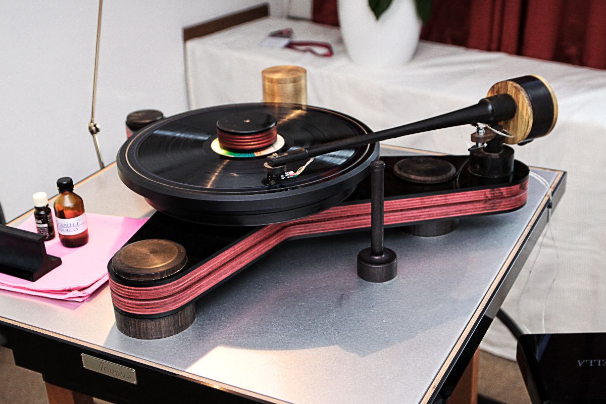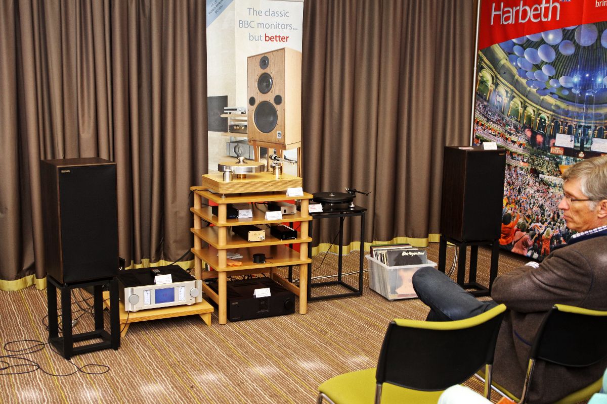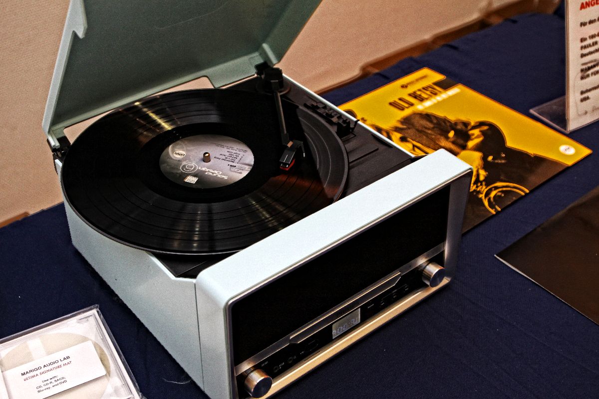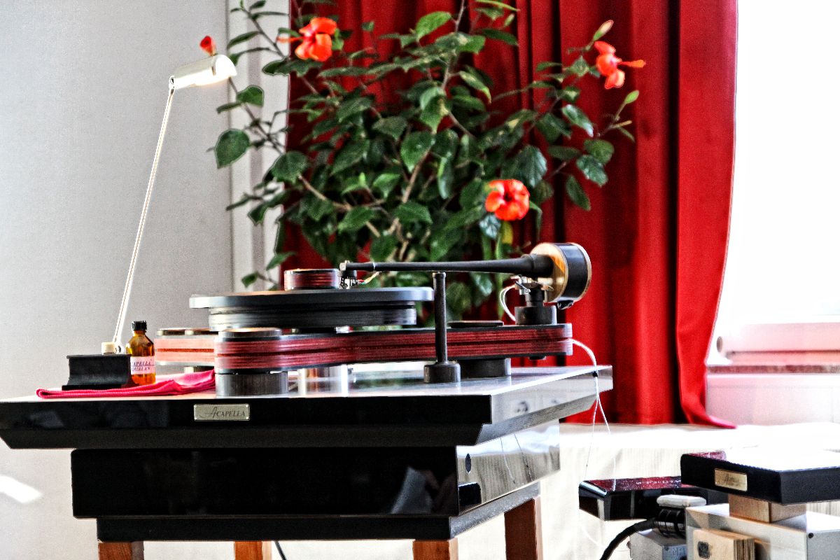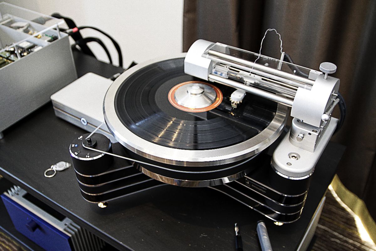 Zurück zur eigentlichen Veranstaltung. Die Qualität der Vorführungen reichte von Spitzenklasse bis hin zu lausig, wobei fairerweise gesagt werden muss, das letztere nur sehr wenige Ausnahmen waren. Und fragen Sie mich bitte nicht nach deren Namen, die habe ich eh schon wieder vergessen. Den Preis fürs beste Entertainment (in Verbindung mit sehr gutem Klang) ging dieses Jahr an Thomas Fast von Fastaudio. Thomas Fast demonstrierte die Unterschiede zwischen verschiedenen Lyra-Tonabnehmern mit ein und derselben Schallplatte. Den Einstieg machte das Lyra Kleo, gefolgt vom Lyra Etna und gekrönt vom Lyra Atlas. Die Unterschiede waren mit jedem Plattenbeispiel sofort nachvollziehbar, und zwar klar und eindeutig. Doch der „Aufstieg“ bei Lyra ist aber auch ein harter Angriff aufs Portemonnaie. Beinahe noch besser als der Klangvergleich war bei Thomas Fast die Musikauswahl: nicht das übliche High-End-Gedudel, sondern unkonventionelle Stücke von jungen Bands aus dem Electronica-Genre, abgerundet mit einem Barry-White-Remix-Album – einfach zum Nieederknien. Das war große Klasse und für mich „volle Punktzahl“, nicht zuletzt wegen des großartigen Gastgebers … äh … Entertainers.