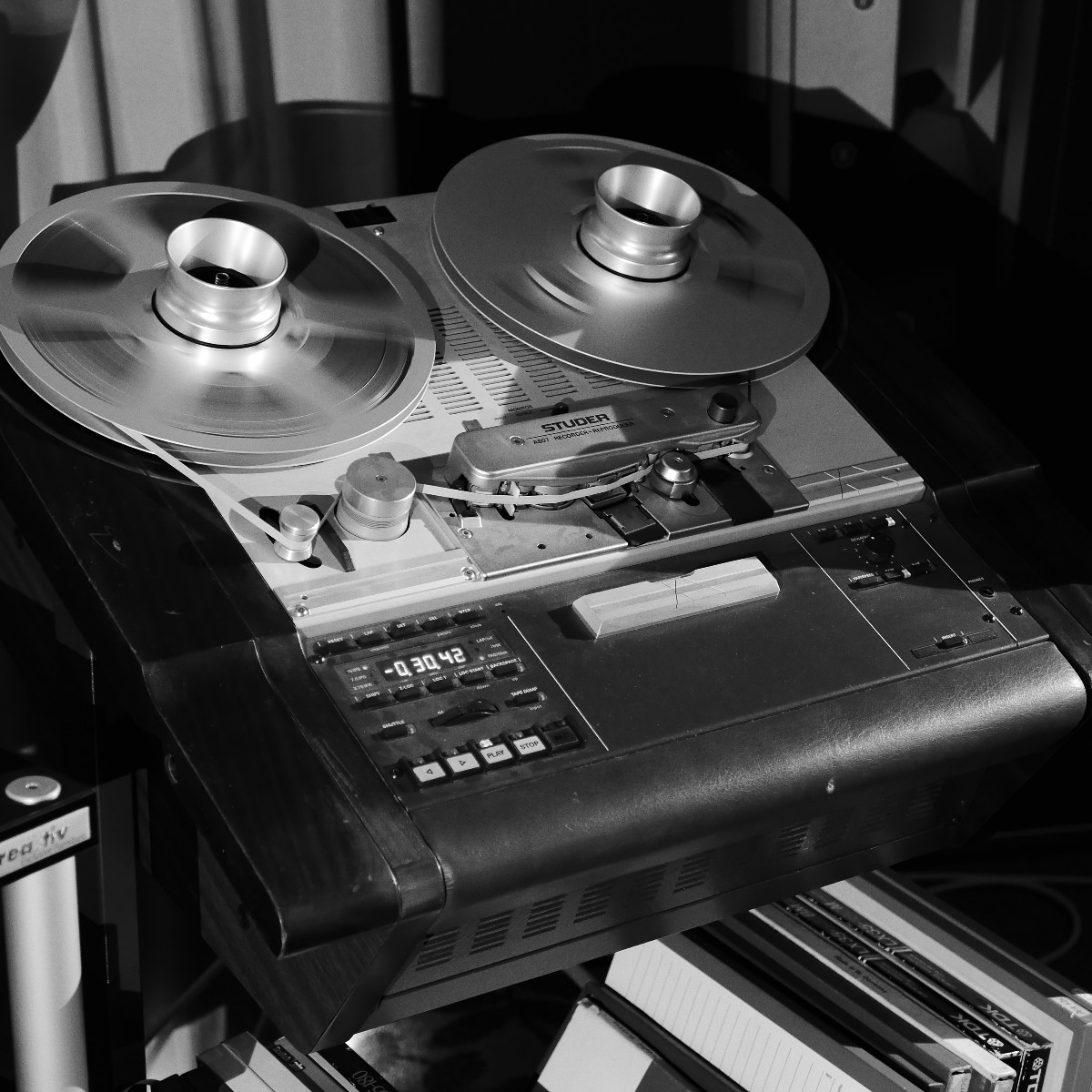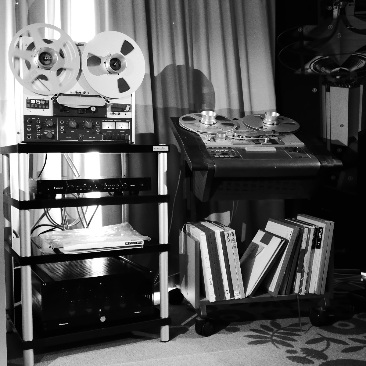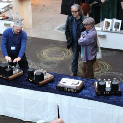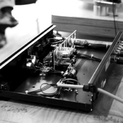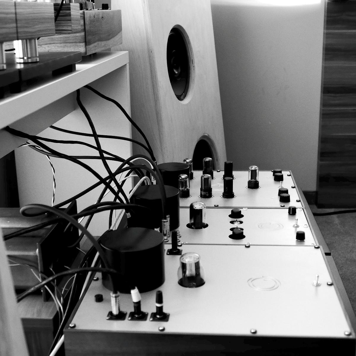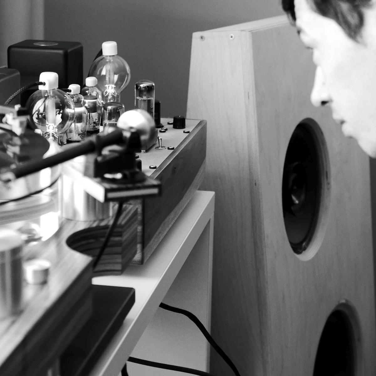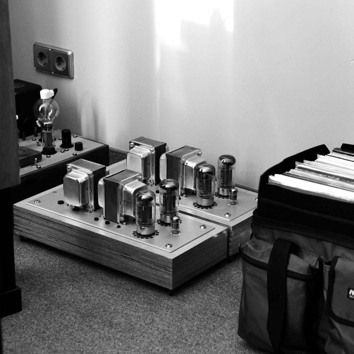 Sonntags klangen erwartungsgemäß viele Installationen noch besser, weil sie warm- und eingespielt waren, trotzdem hatten einige professionelle Besucher sichtlich Mühe, dem Geschehen unmittelbar zu folgen. Herauszuheben ist bezüglich des Klangs Martina Schöner, die mit eigenen modularen Lautsprechern und Elektronik von Joachim Gerhard angereist war. Und natürlich mit ihrer wundervollen Garrard-Weiterentwicklung 501. Ebenso wie Thomas Fast, dessen mit Klangschälchen vollgepfropfte Vorführungen der kleinen Kiso-Lautsprecher immer ausgesprochen dynamisch vorwärts marschieren, und Croft in Verbindung mit Harbeth bei Input-Audio, wo auch sehr tiefe Impulse noch druckvoll wiedergegeben wurden. Ähnlich auf den Punkt tönte es auch bei SWS-Audio mit Feickert-Laufwerk und Geithain-Monitoren. Kompromisslos und brutal gingen die Euphonic Architects mit einem im Wortsinn betonierten Basshorn inklusive Monitoren in PA-Optik zu Werke. Dass es dort trotz gehobener Lautstärke und nicht gerade betontem Wohlfühlsound trotzdem einen Heidenspaß machte, dürfte nicht zuletzt an der hervorragenden Quellenlage gelegen haben: Nebeneinander standen dort ein EMT-Laufwerk, ein sehr rarer Ulysses und eine Studer-Bandmaschine und sorgten für starke Begehrlichkeiten bei den zahlreichen Vintage-Jüngern.