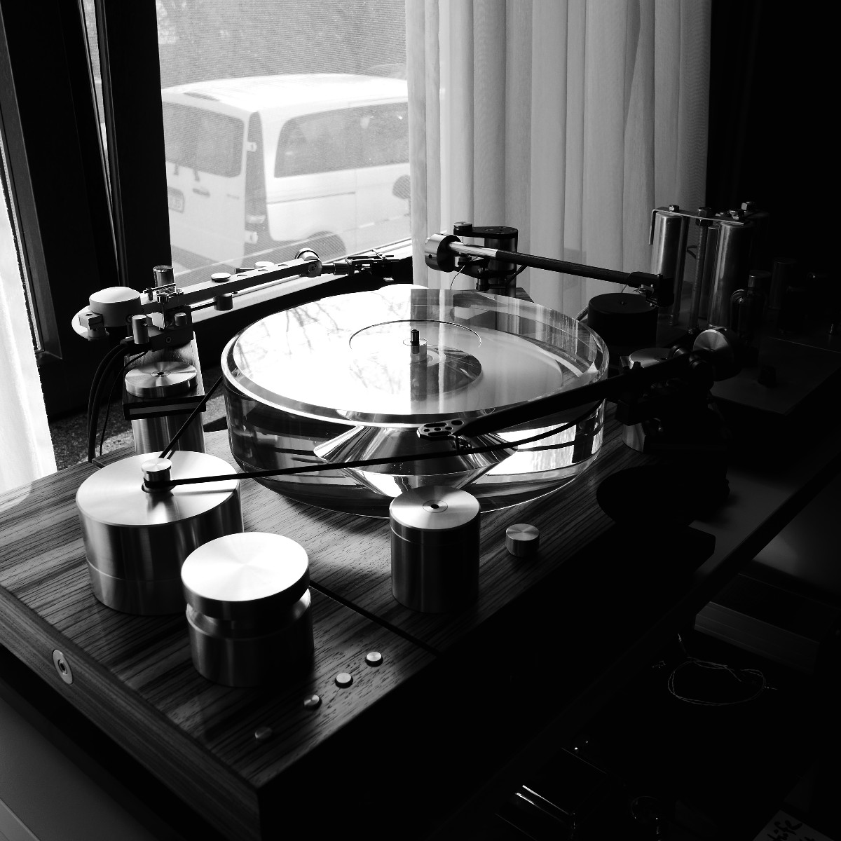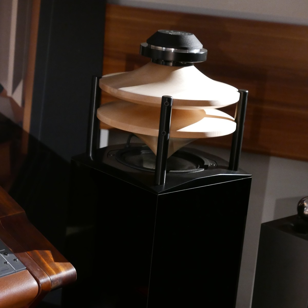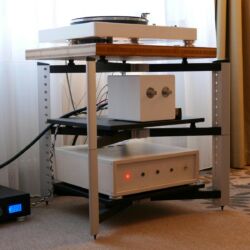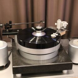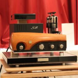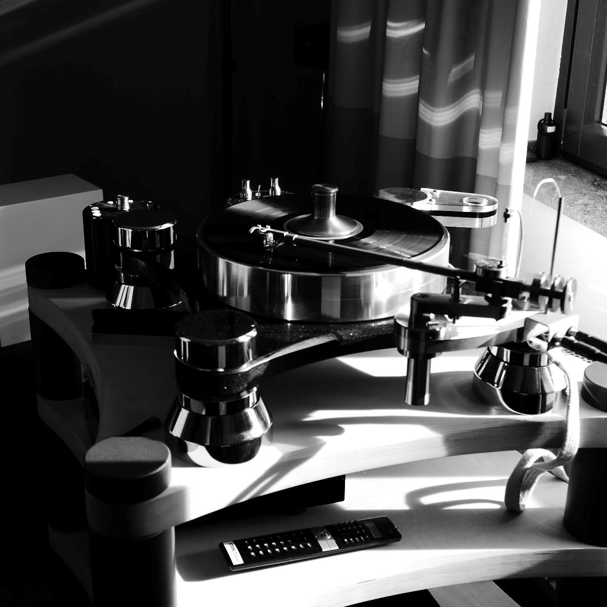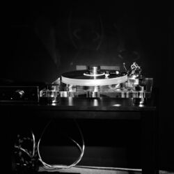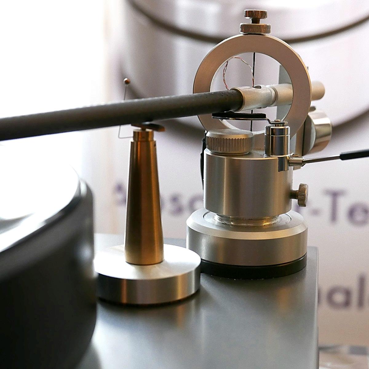 Linearer, aber beileibe nicht langweiliger klang es bei WOD-Audio, wo erstmals ein Bergmann-Laufwerk vorgestellt wurde, auf dem sich bis zur vier Arme montieren lassen. Wir Analog-Nerds mögen so etwas selbstverständlich, aber dem zurückhaltenden Design des Sleipner tut das unter Umständen nicht gut. Sehr schön, sowohl gestalterisch wie klanglich, war auch ein PTP-Laufwerk, basierend auf einem Lenco-Boliden, das an Manger-Wandlern sehr klar und transparent aufspielte. Etwas ganz Besonders hatte Genuin-Audio im Gepäck: Ein von Grund auf neu entwickeltes und sehr raumgreifendes Subchassis-Laufwerk namens Drive inklusive Einpunkt-Karbontonarm und getuntem 103-System Sting. Der von Helmut Thiele entworfene Dreher verfügt über einen eingebauten Entzerrer und geplant ist sogar eine integrierte Vorstufe, damit könne man eine ganz kurze Kette aus Plattenspieler und Aktivlautsprechern realisieren, schwärmt Vertriebseigner Thomas Wendt. An Perreaux-Elektronik und mit den ebenfalls brandneuen Pulse-Lautsprechern konnte man bei Genuin ein betont knackiges und sauberes Klangbild genießen. Etwas wolkiger und ätherischer, aber nichtsdestoweniger reizvoll ging es gegenüber bei Sperling und Silberstatic/Audreal zur Sache, daneben im Raum von Aura-HiFi aber dafür umso handfester mit Hörnern von Avantgarde Acoustic – durchaus eindrucksvoll, aber nichts für Zartbesaitete. Gewohnt feingeistig und perfekt ausgewogen klang es erneut und trotz des eigentlich zu kleinen Raumes bei Acapella – mühevolle Resonanzkontrolle aller beteiligten Gerätschaften zahlt sich eben doch aus. Eine ebenso über alle Zweifel erhabene Vorführung konnte auch Wolf von Langa auf die Beine stellen.