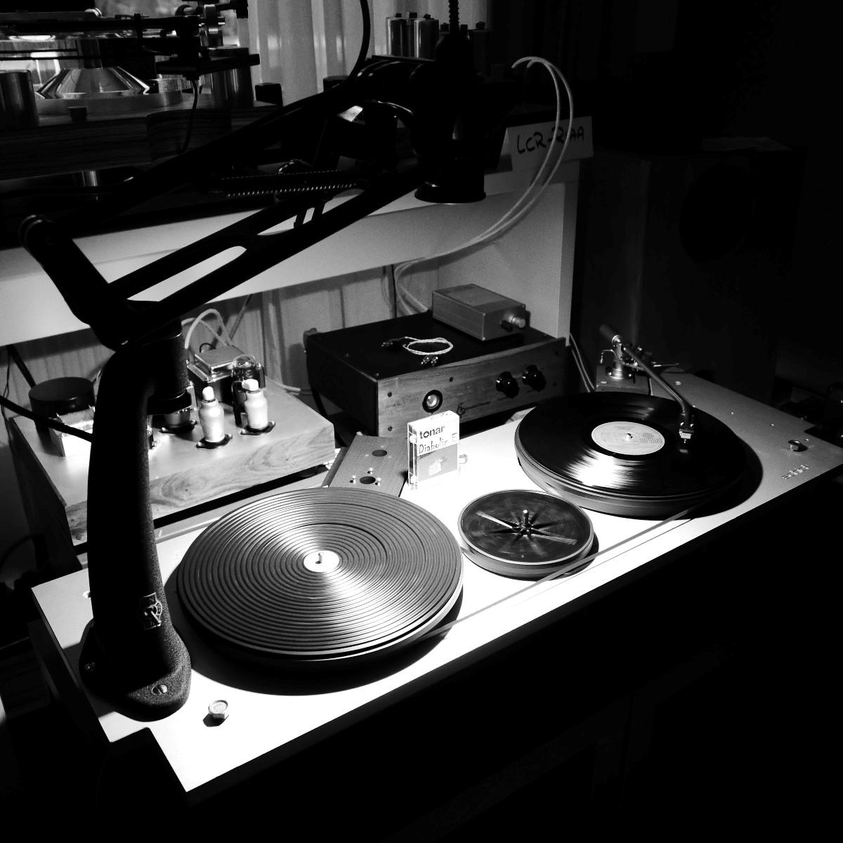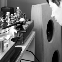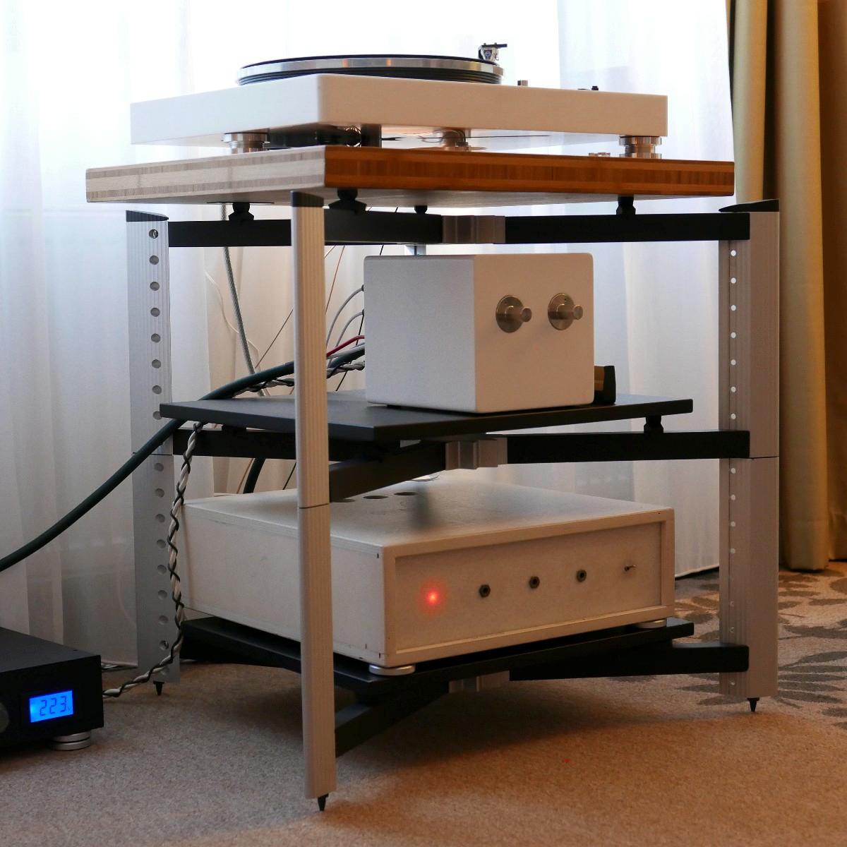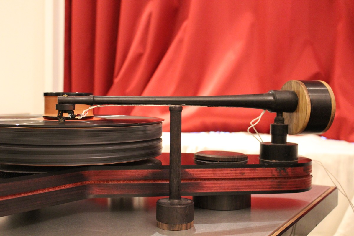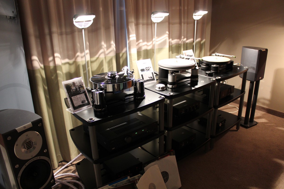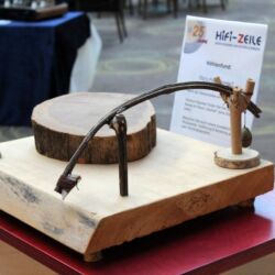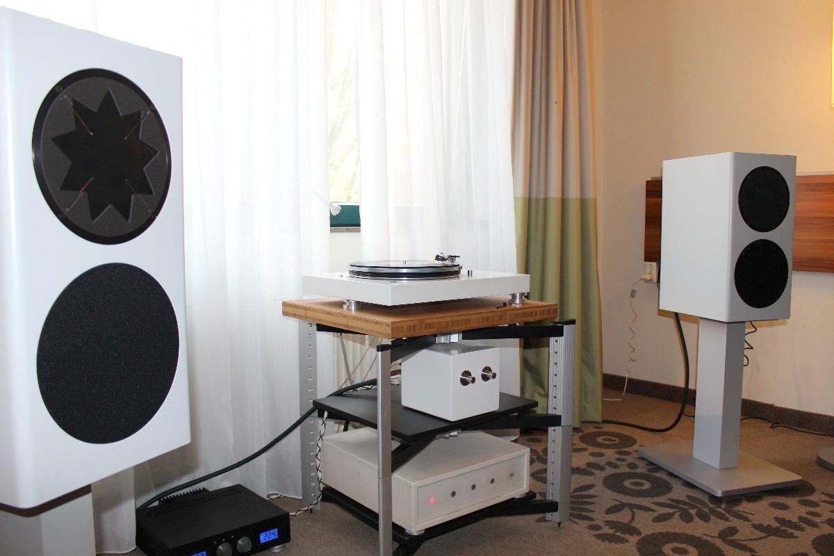 Nachzuhören beispielsweise bei AVID, wo drei Dreher unterschiedlicher Preisklassen mit identischen Armen und Nagaoka-Abtastern, eingehende Vergleiche zuließen. Zum Leidwesen des finanziell notorisch klammen Berichterstatters, klang der größte und teuerste Acutus-Dreher mit reichlich Abstand am besten. Allerdings ging ein guter Teil dieser reizvollen Vorführung auf das Konto zweier geradezu holografisch abbildender Audiovector-SR1-Monitore, die mich mit offenem Mund staunen ließen, ob ihrer Klangfülle gerade im Grundton. Sagenhafte Lautsprecher, um die wir uns baldmöglichst bemühen werden. Es wäre eine Schande, Ihnen, liebe Leser, das vorzuenthalten. Andererseits zeigte Thomas Schick im sogenannten DIY-Raum, dass Analog-Genuss nicht zwingend kostenintensiv sein muss: Unter Umständen reichen auch zwei alte Garagenfunde – ein Lenco als Antrieb, ein zweiter als passiver Dreher – und ein Tonar Diabolic DJ-System(!), um sehr frisch und dynamisch Musik zu hören. Vermutlich wurde in der Röhren-LCR-Entzerrung doch ein wenig getrickst, denn auch „aufgebohrt“, im Sinne von seines Gehäuses entledigt, kann dieses extrem preiswerte, schreiend pinke System nicht so unaufdringlich, aber quicklebendig klingen. Vielleicht schönte aber auch der weltexklusiv einzigartige und noch nicht dagewesene in Franken oder Istanbul entdeckte „Hochdöner“ ein wenig.
