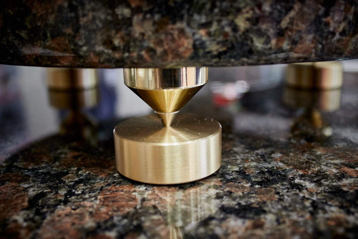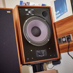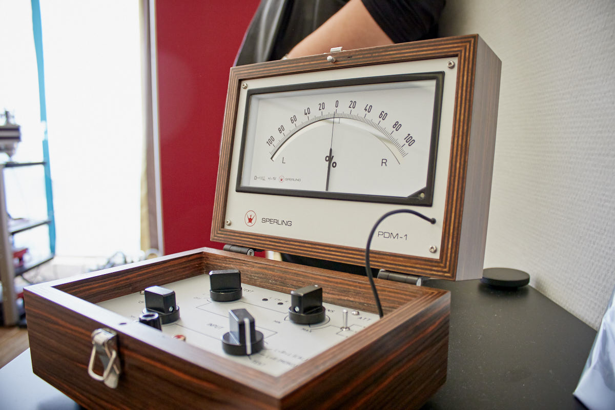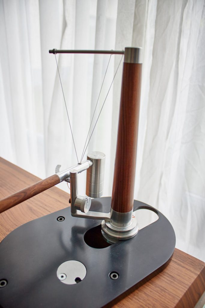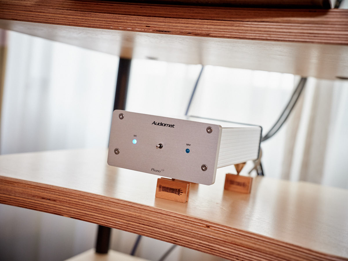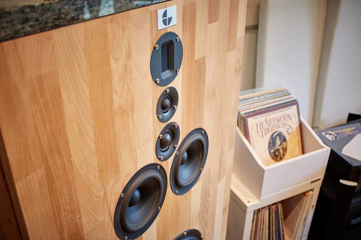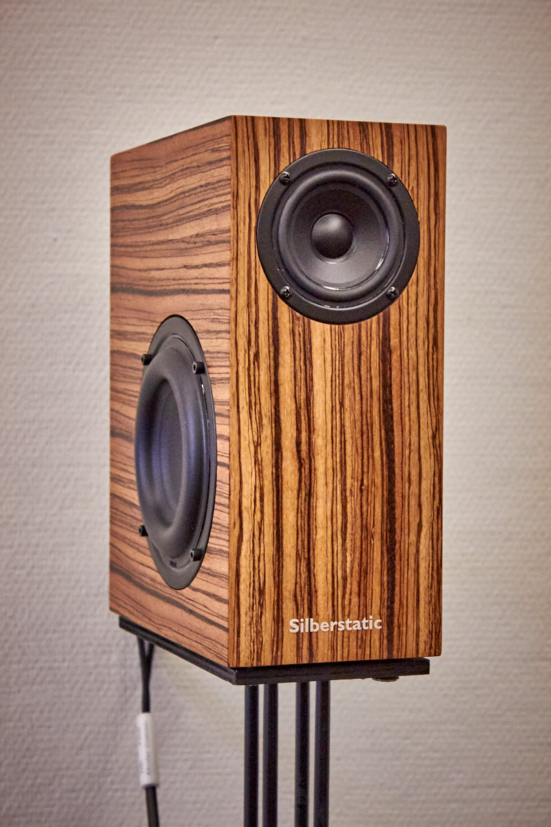 Lignolab machte mit dynamischem Bass und vierzelligem Hochtonhorn einen bodenständigen Eindruck, obwohl es sich um eine extrem waghalsige, digital entzerrte Konstruktion mit offenem Mini-Verstärker vor dem Horn handelt. Dass so etwas auf dem Analog Forum überhaupt erlaubt ist! Klang aber schön stämmig. Endlich war auch bei ToneTool die Tür auf, wo mir schon im Vorjahr ein Gratis-Kaffee versprochen wurde. Hatte ich aber zwischenzeitlich vergessen, Holger Wilhelm, der Erbauer der wundervollen ToneTool-Laufwerke, war so freundlich, mich daran zu erinnern. Dort gab es gleich zwei Premieren zu feiern: Zum einen war das erste Hana-ML-Abtastsystem Europas zu sehen und natürlich zu hören und ein an Fäden schwebend dreipunktgelagerter Einpunkttonarm (oder so) von Studo spielte weltweit an diesem Tag in diesem Raum zum ersten Mal – spektakulär! Zu diesem Zeitpunkt mit Lautsprechern von Lautsprung, die mir auch im letzten Jahr schon aufgefallen waren. Bei einem späteren Besuch fanden sich auf den Stativen kleine Zweiwege-Lautsprecher Bobby-S von Stein Music. Niedliche ventilierte Kisten mit getuntem Hochtonhorn und gewaltigem Klang, daran konnten auch die Audreal-Monos nichts ändern. Die selbstverständlich, man muss das immer dazu sagen, gemessen an ihrem Preis, Großes zu leisten imstande sind.