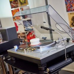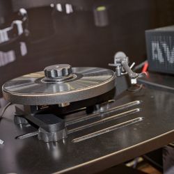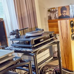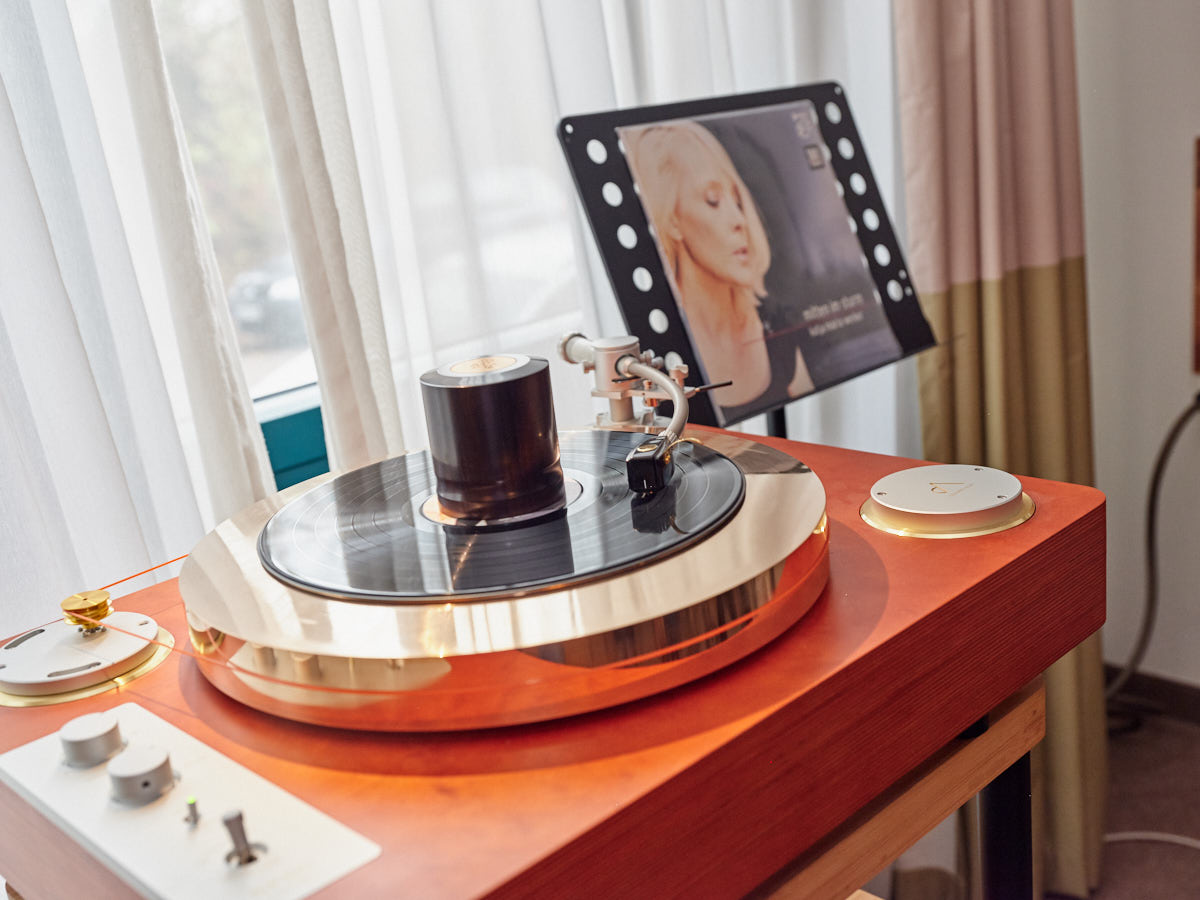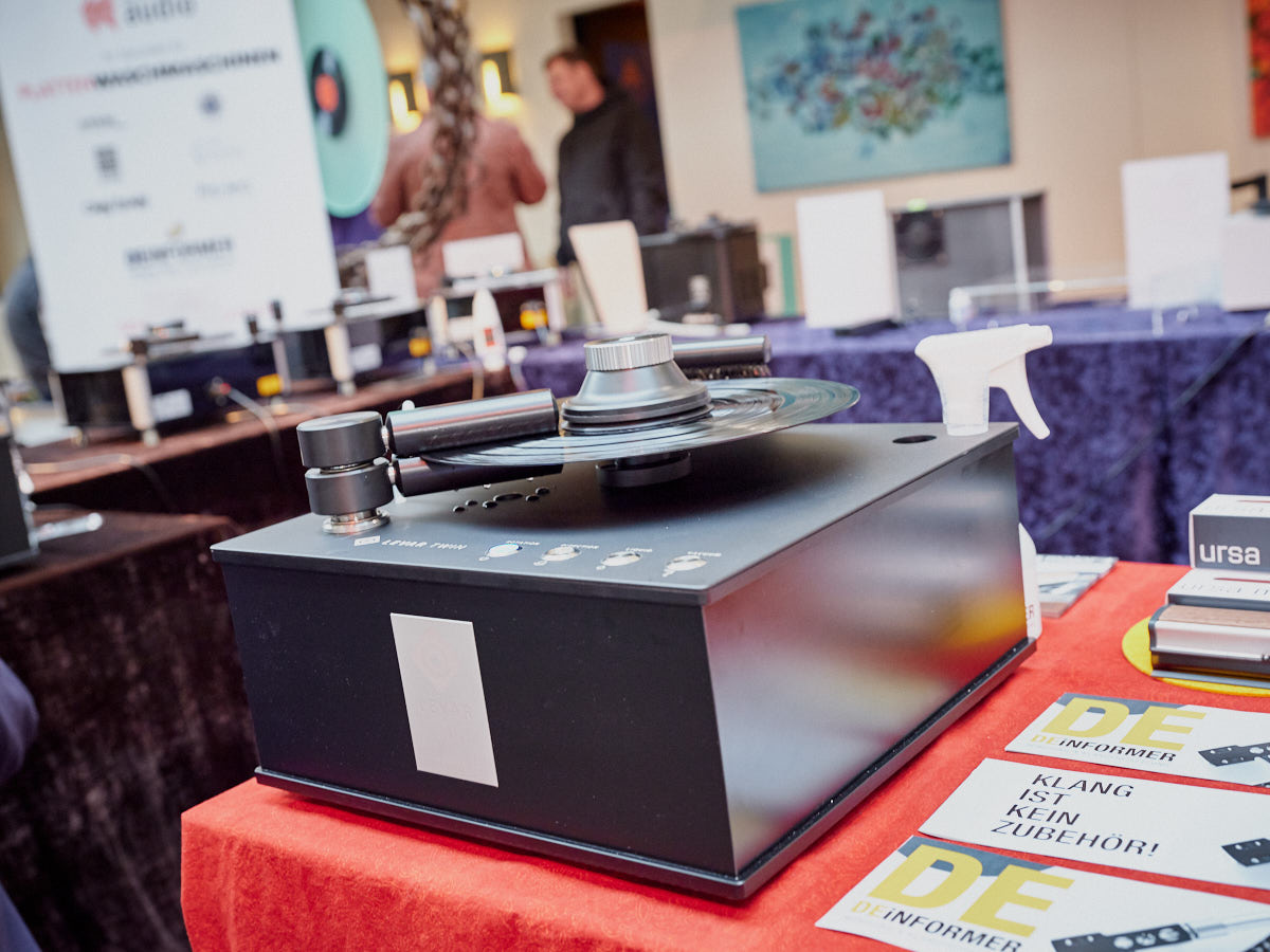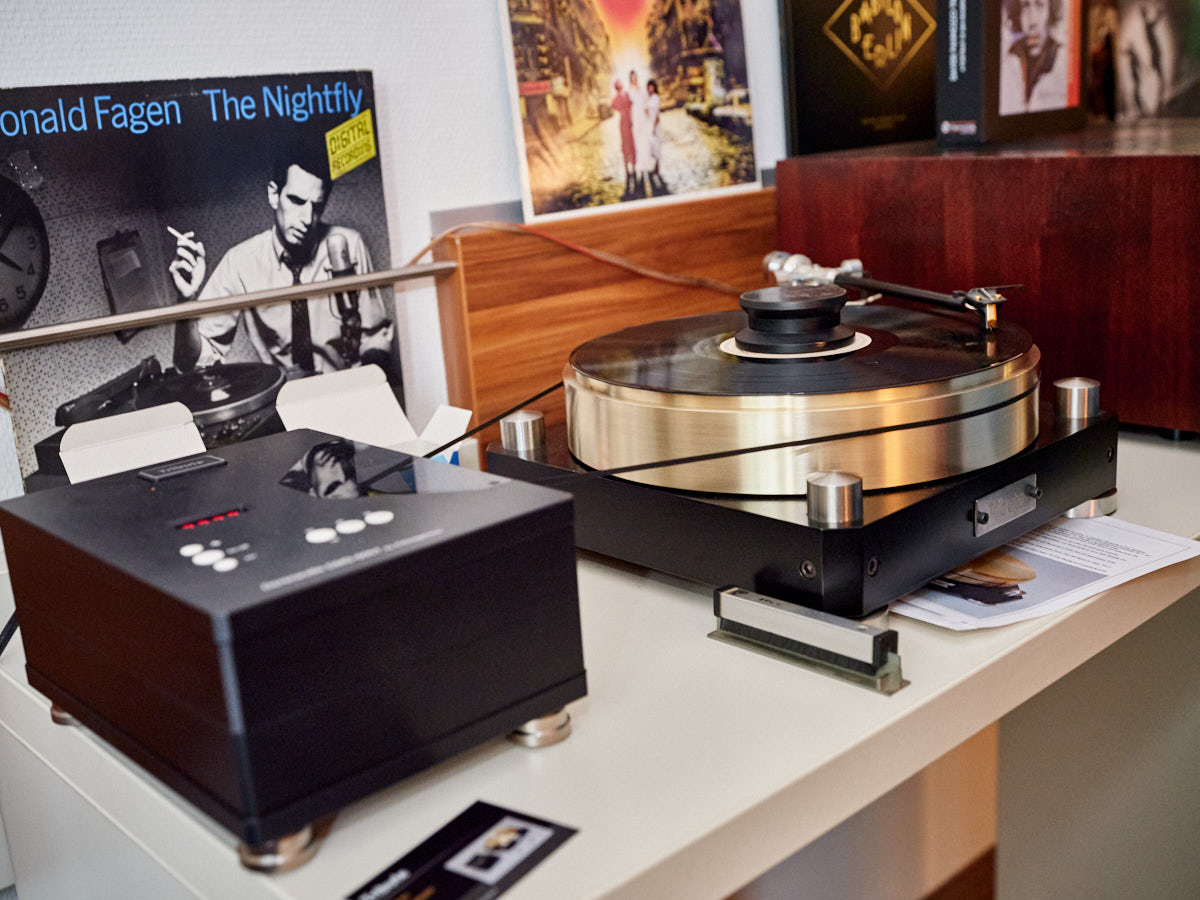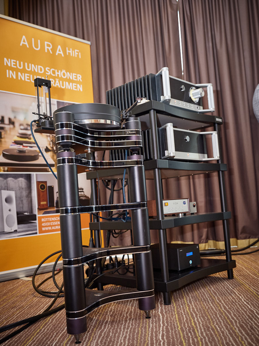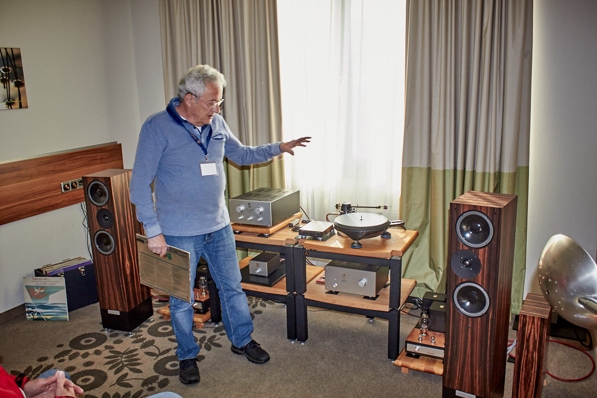 Es gäbe so viel zu erzählen, liebe Leserinnen und Leser: über ein extrem modifiziertes Sony-Laufwerk von Thomas Schick etwa, auf dem sehr aufschlussreiche Tonabnehmervergleiche mit Hilfe des Phonolab Pro von Audiospecials durchgeführt wurden, den neuen Volare von Dr. Feickert, über dessen Raum zwar unglücklicherweise ein merkwürdiges Aroma lag (Chris Feickert war entsprechend auf das Hotel nicht besonders gut zu sprechen), der aber dafür umso frischer klang, die „Begeisterung“, so der Name des Raumes in dem Martina Schöner kurz vor oder nach einem Friseurtermin mit (etwas zu?) großen Lautsprechern von Joachim Gerhard, übrigens das Geburtstagskind der Messe, bisweilen durchaus herausfordernde Musik auflegte und die wie immer tolle Vorführung bei Input Audio mit Johnny Guitar Watson und – natürlich – Vertriebsleiter Bernd Hömke, aber das müssen wir zu einem späteren Zeitpunkt nachholen.