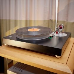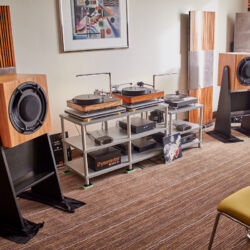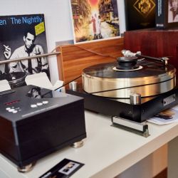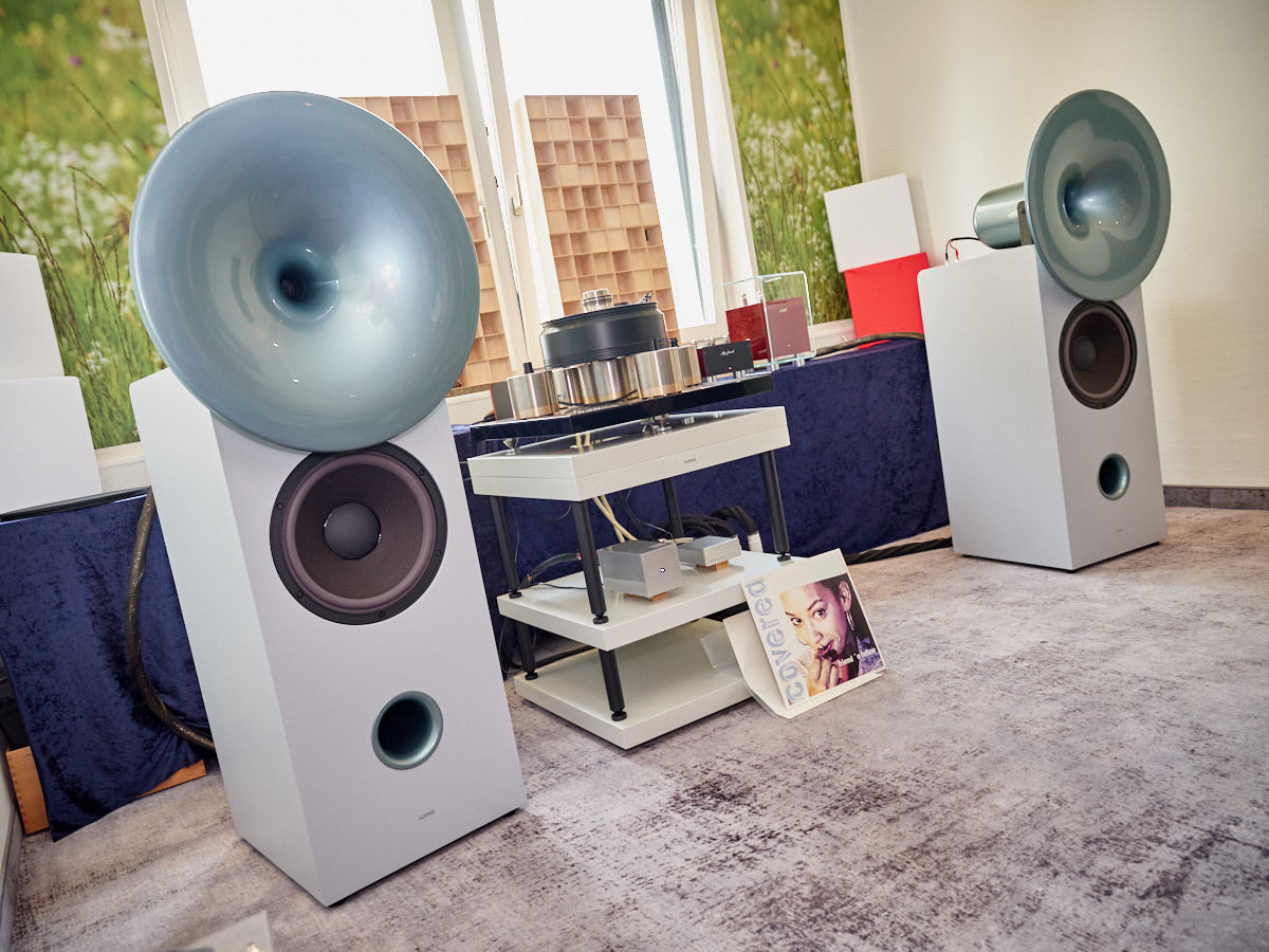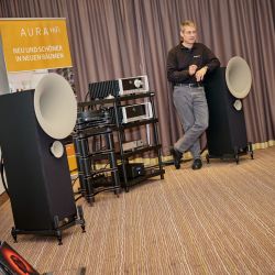 Währenddessen war nämlich bei Manger Audio gerade ein wenig Platz. Die P2-Lautsprecher (demnächst in FIDELITY) Im Verbund mit Audionet-Elektronik und einem mächtigen Scheu Premier machten ganz famos Musik. Was für eine toll zusammengestellte Understatement-Kette: leichtfüßig, trotz des schweren Masselaufwerks, und wahnsinnig schnell sowie transparent.