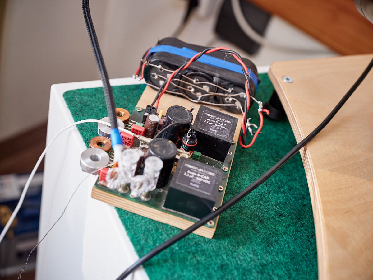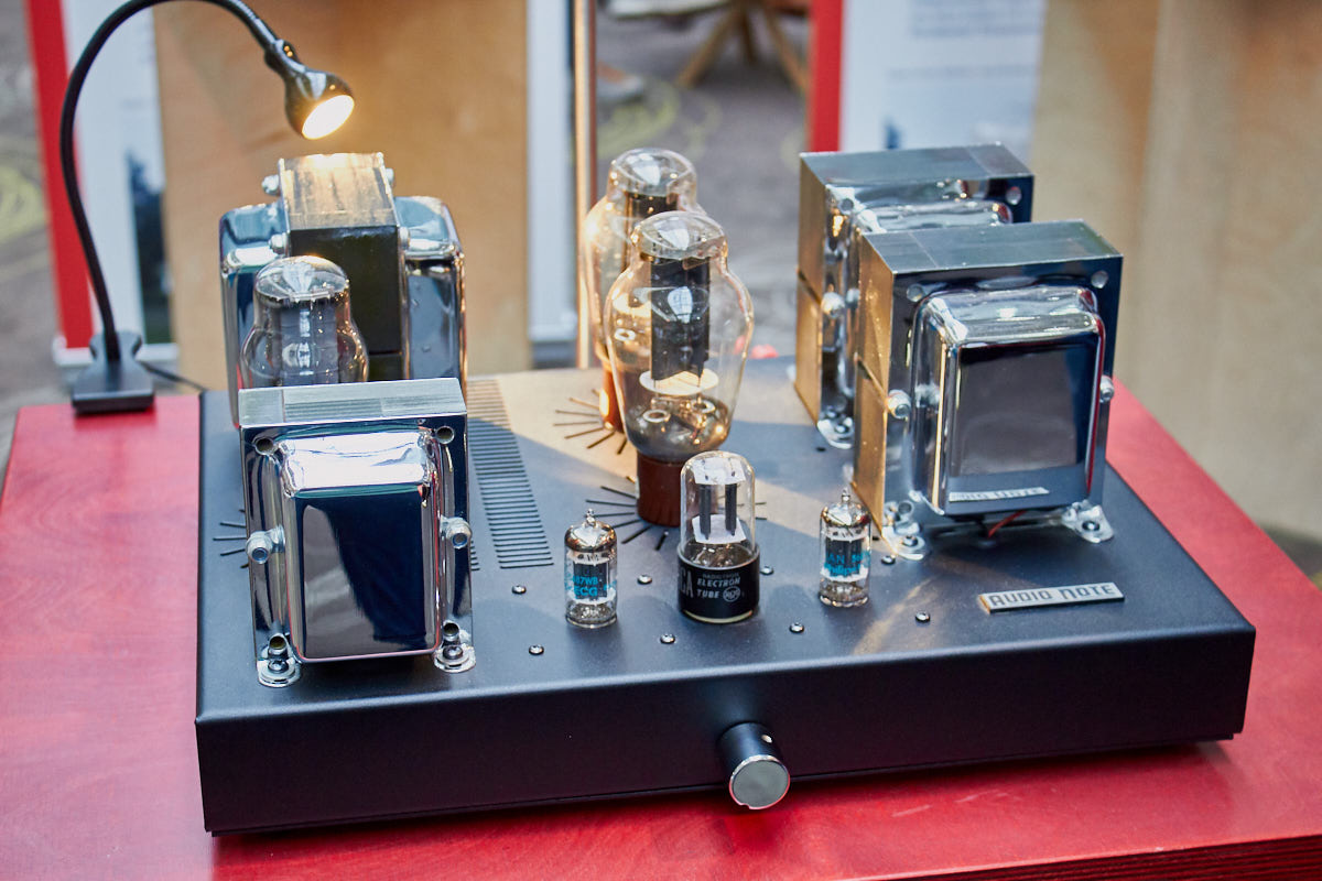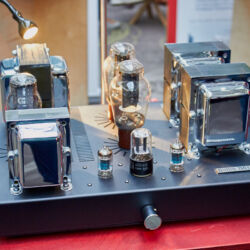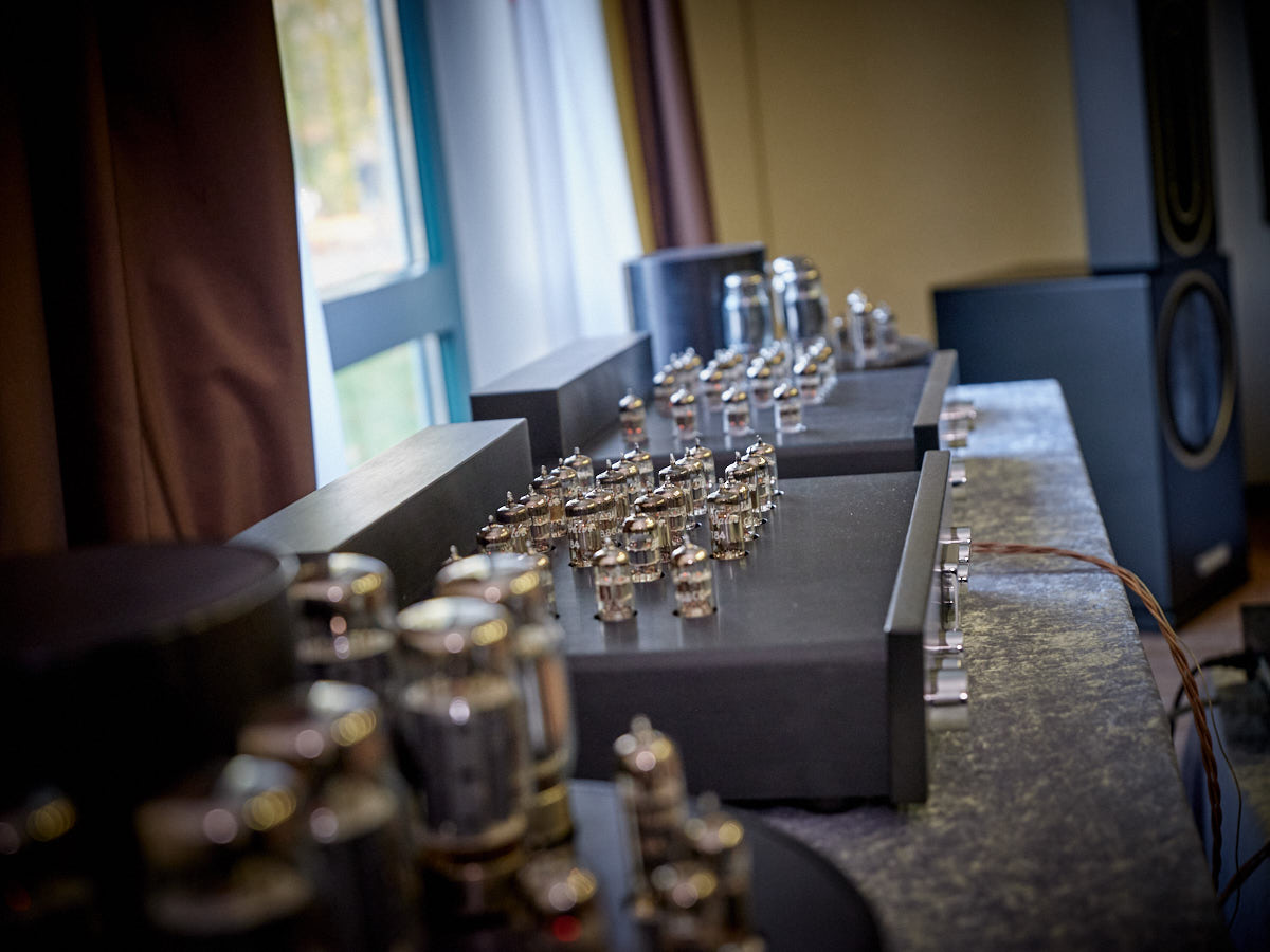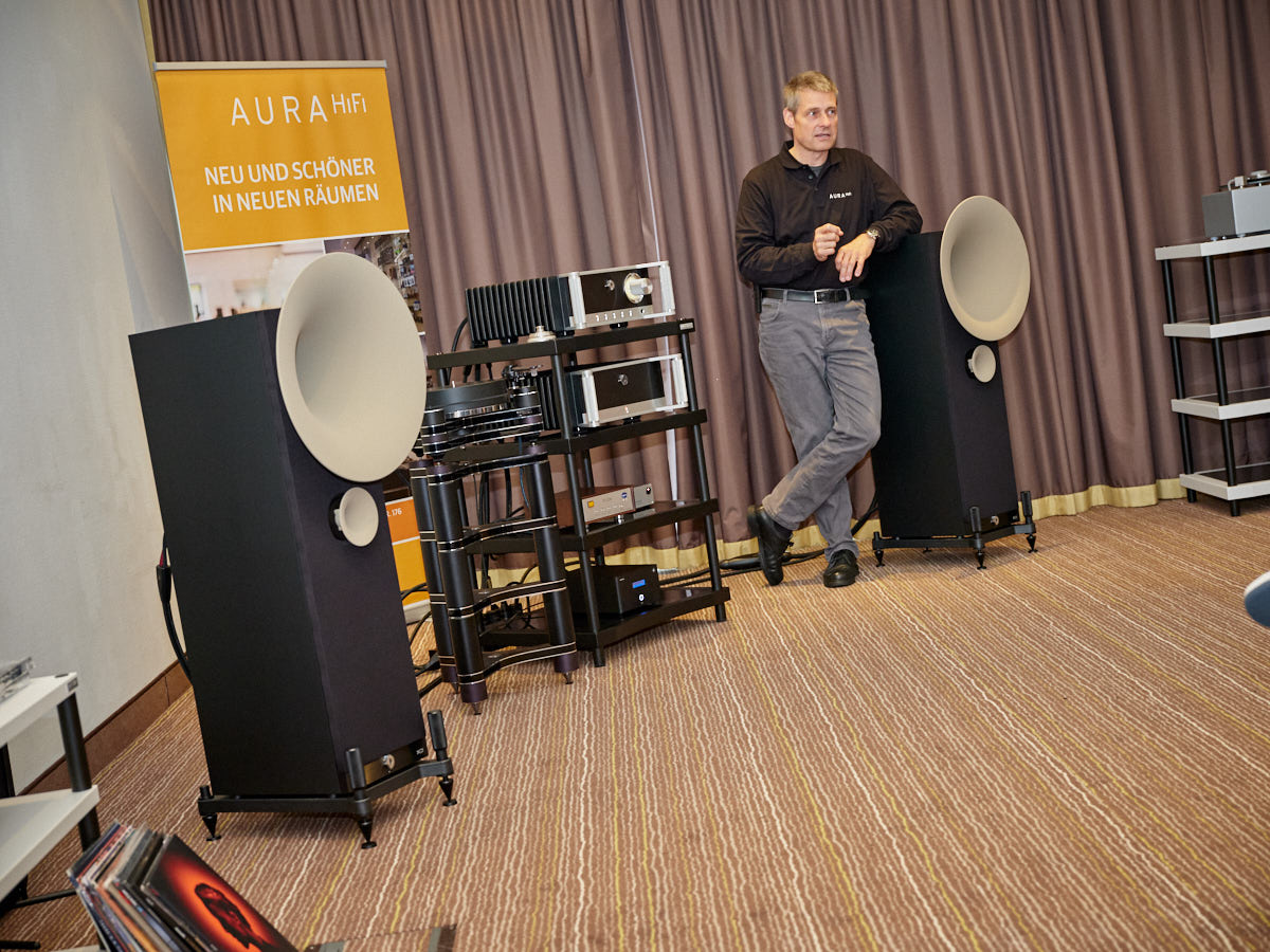 Zwischenzeitlich hatten mehrere kräftige Männer den Vollverstärker vom Vorabend bei Ultraudio gegen gewaltige Röhrenendstufen von Legat-Audio getauscht. Allein die Ausgangsübertrager bringen 25 Kilo auf die Waage! Was diese brachial-feinsinnigen Endstufen mit den, mit äußerstem Respekt formuliert, geschwind zusammengeleimten Breitbandhörnern machten, ist mit Worten kaum zu beschreiben. Wer schon einmal erfahren hat, wie unmittelbar mitreißend Pappmembranen ohne Korrektur klingen können (was nicht heißt, dass sie das unbedingt müssen, siehe Vorabend), hat eventuell eine Idee davon.
