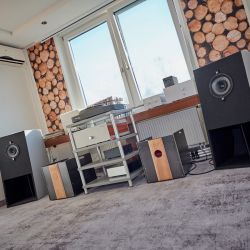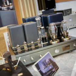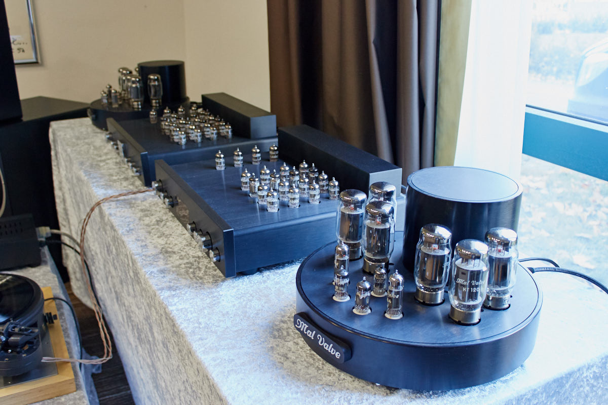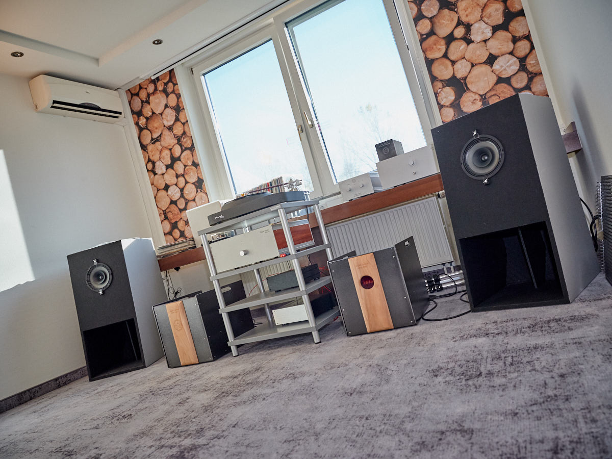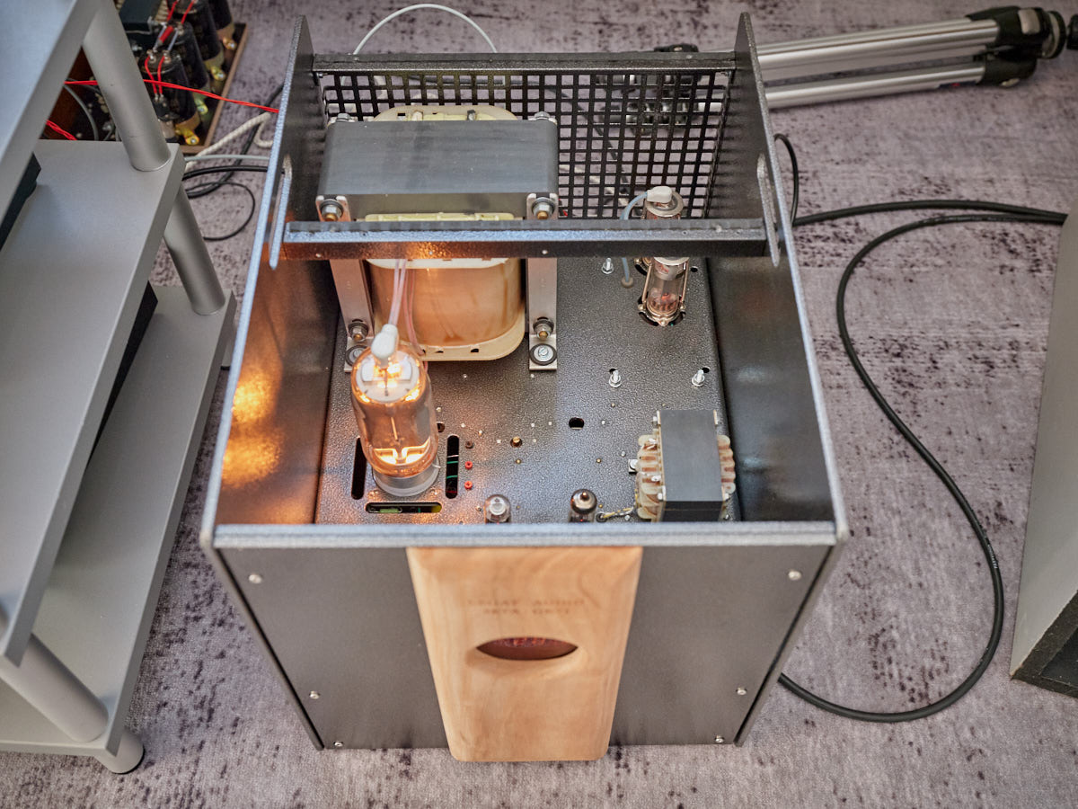 Zwischenzeitlich hatten mehrere kräftige Männer den Vollverstärker vom Vorabend bei Ultraudio gegen gewaltige Röhrenendstufen von Legat-Audio getauscht. Allein die Ausgangsübertrager bringen 25 Kilo auf die Waage! Was diese brachial-feinsinnigen Endstufen mit den, mit äußerstem Respekt formuliert, geschwind zusammengeleimten Breitbandhörnern machten, ist mit Worten kaum zu beschreiben. Wer schon einmal erfahren hat, wie unmittelbar mitreißend Pappmembranen ohne Korrektur klingen können (was nicht heißt, dass sie das unbedingt müssen, siehe Vorabend), hat eventuell eine Idee davon.