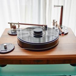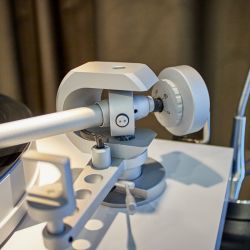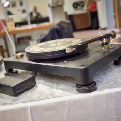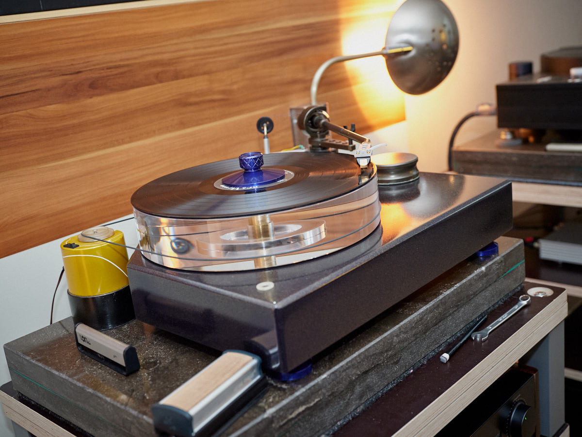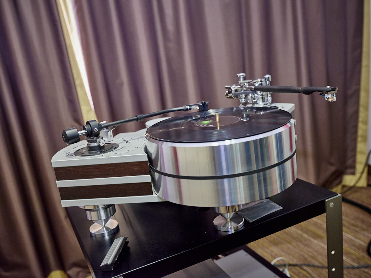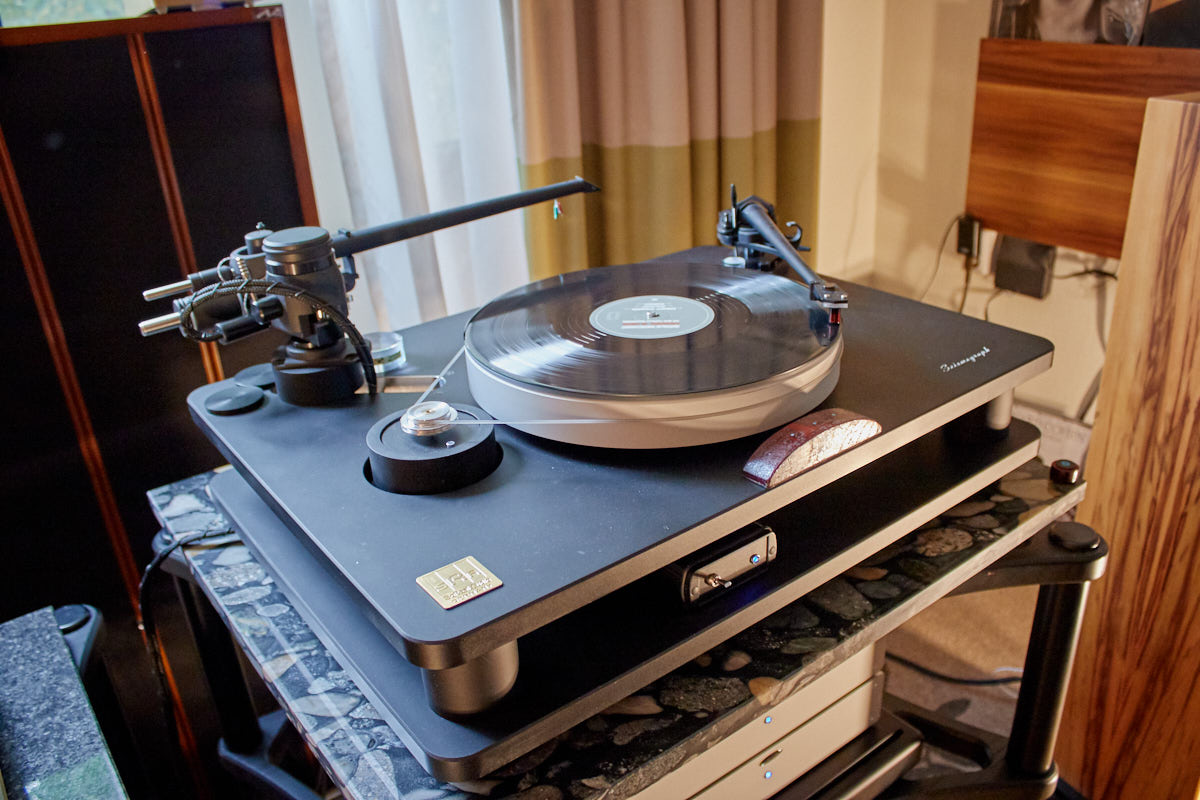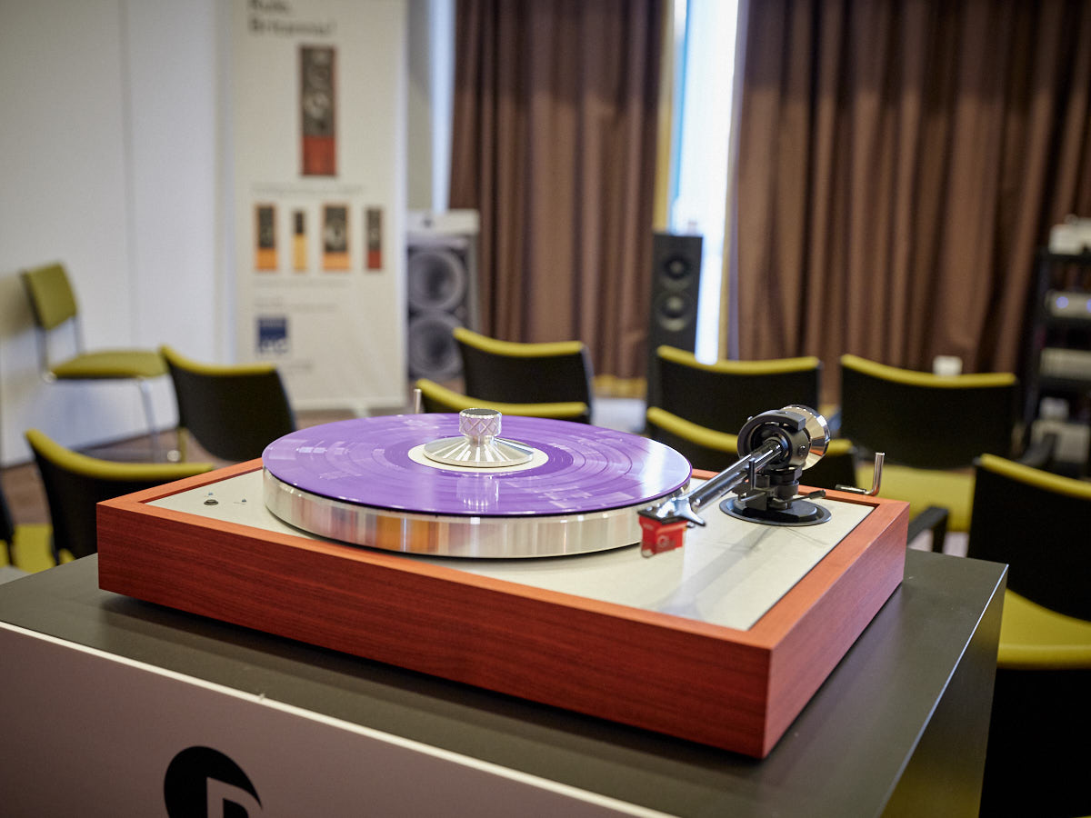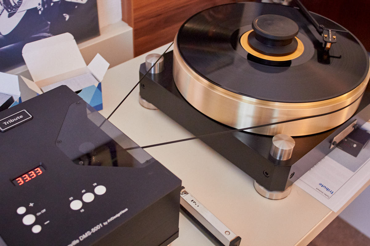 Lyra-Tonabnehmer-Vergleiche bei Thomas Fast mit ästhetisch sehr ansprechenden Kinea-Laufwerken von Primary Control sind immer wieder ein lehrreicher Genuss. Das hat sich herumgesprochen, so dass schon am späten Vormittag die Schau- und Hörlustigen bis auf den Gang standen. Durchgequetscht habe ich mich dennoch, um kurz Hallo zu sagen und dann wieder denen die Vorführung zu überlassen, die sie noch nicht kennen.