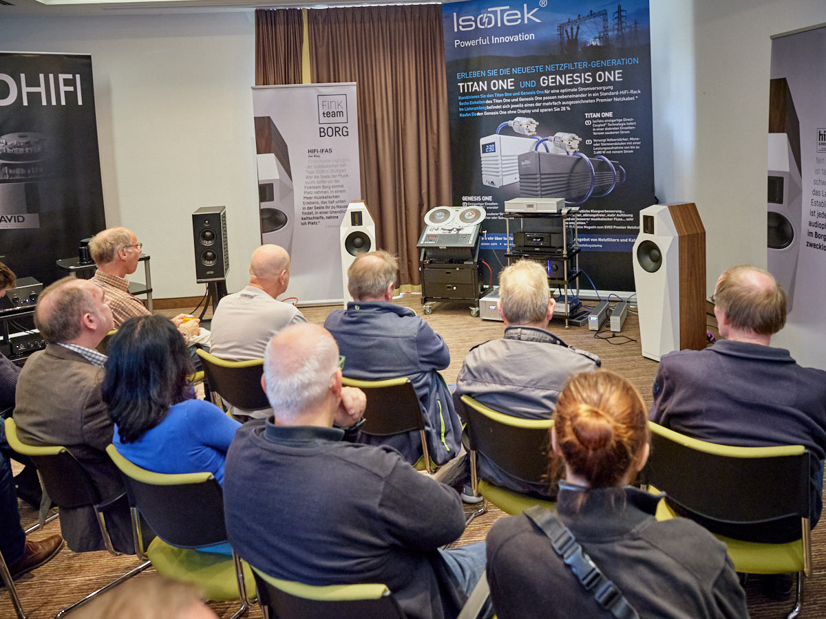 Im Raum daneben hat sich erstmals auf dem Analog Forum SoReal-Audio niedergelassen und das Hotelzimmer ordentlich durchoptimiert, wie der Kennerblick in allen Ecken, auf allen Wänden und einer Decke sofort erkennen konnte. Mit Erfolg lässt sich sagen. Der uns aus der Redaktion bestens bekannte Seismograph legte eine unbedingt überzeugende Vorstellung hin.