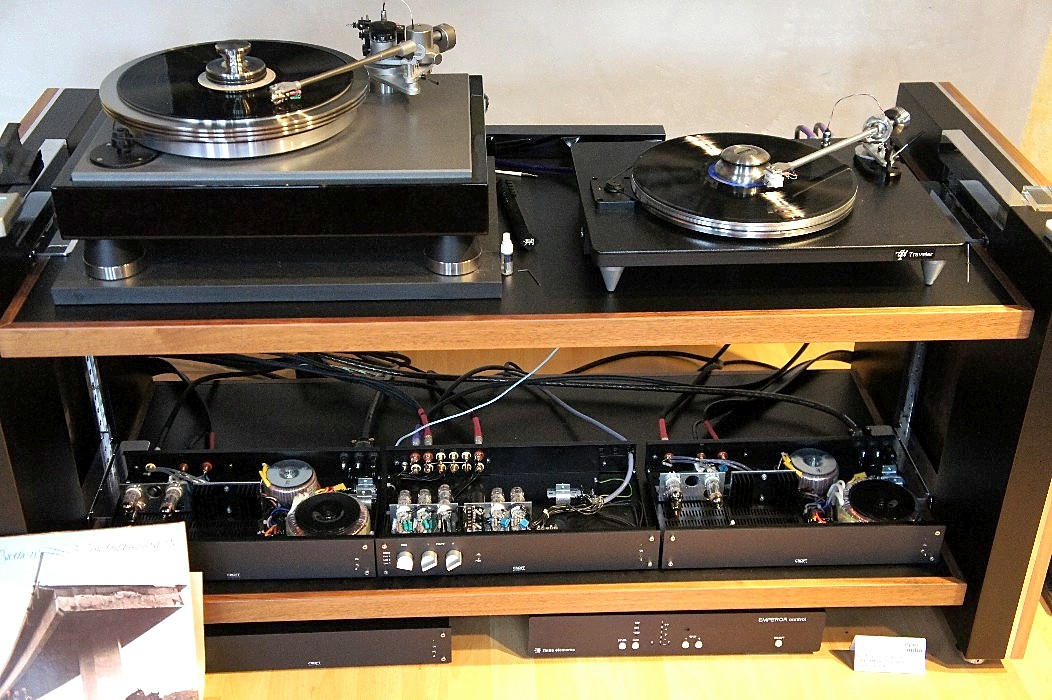 Gepielt wurde u.a. mit VPI Classic 3 mit Dynavector Te Kaitora Rua am van den Hul “The Grail” Phonopre, VPI Traveller mit Goldenote Valore direkt am Phonoeingang des Croft Micro 25 Regulated S-Vorverstärkers mit ausgelagertem Netzteil und den Croft Regulated Mono-Endstufen.