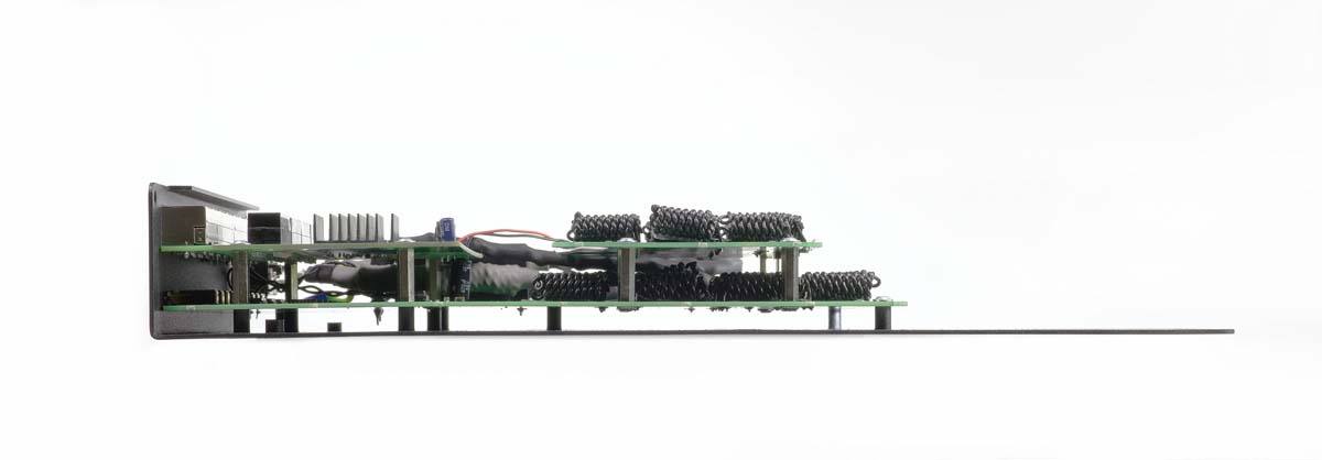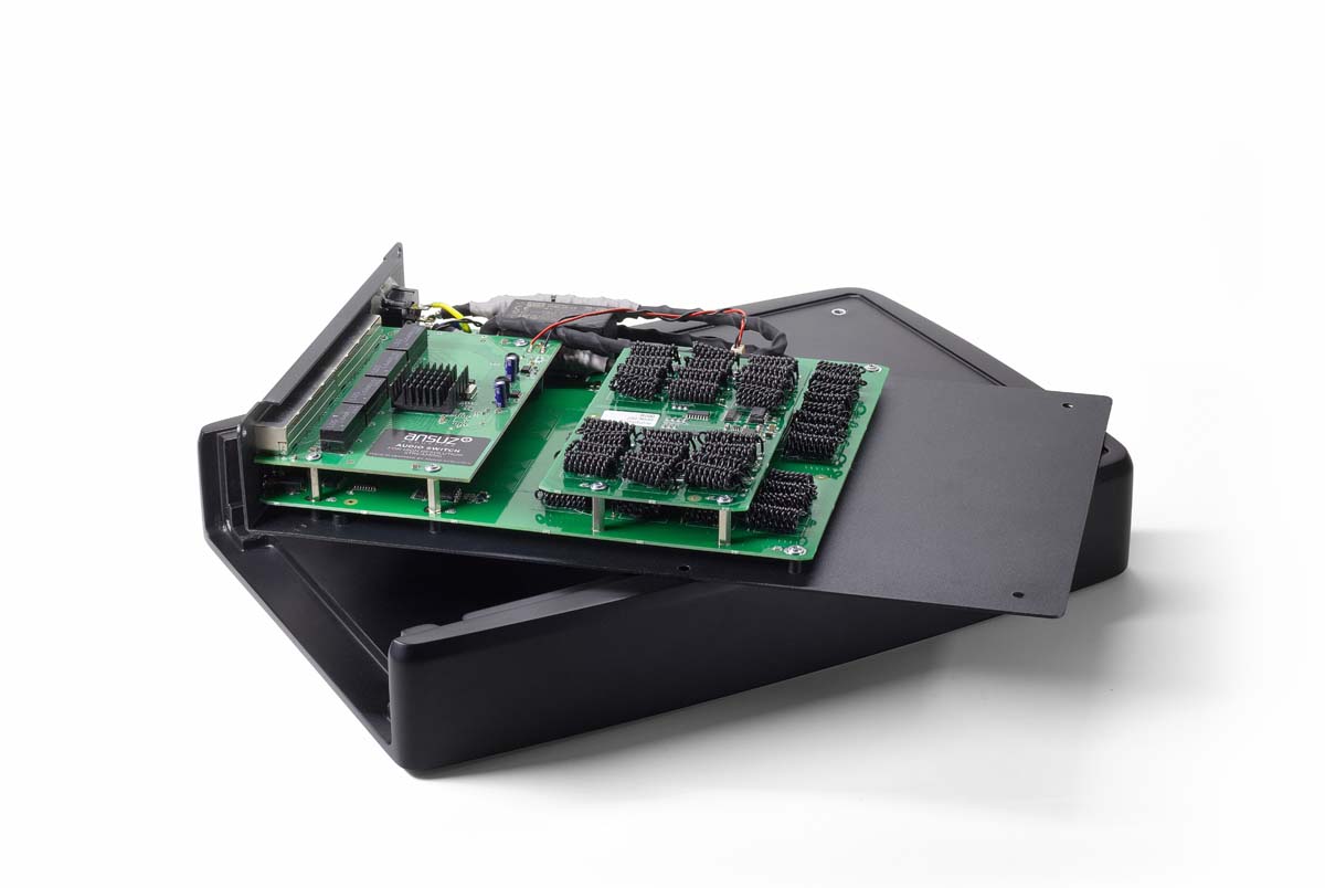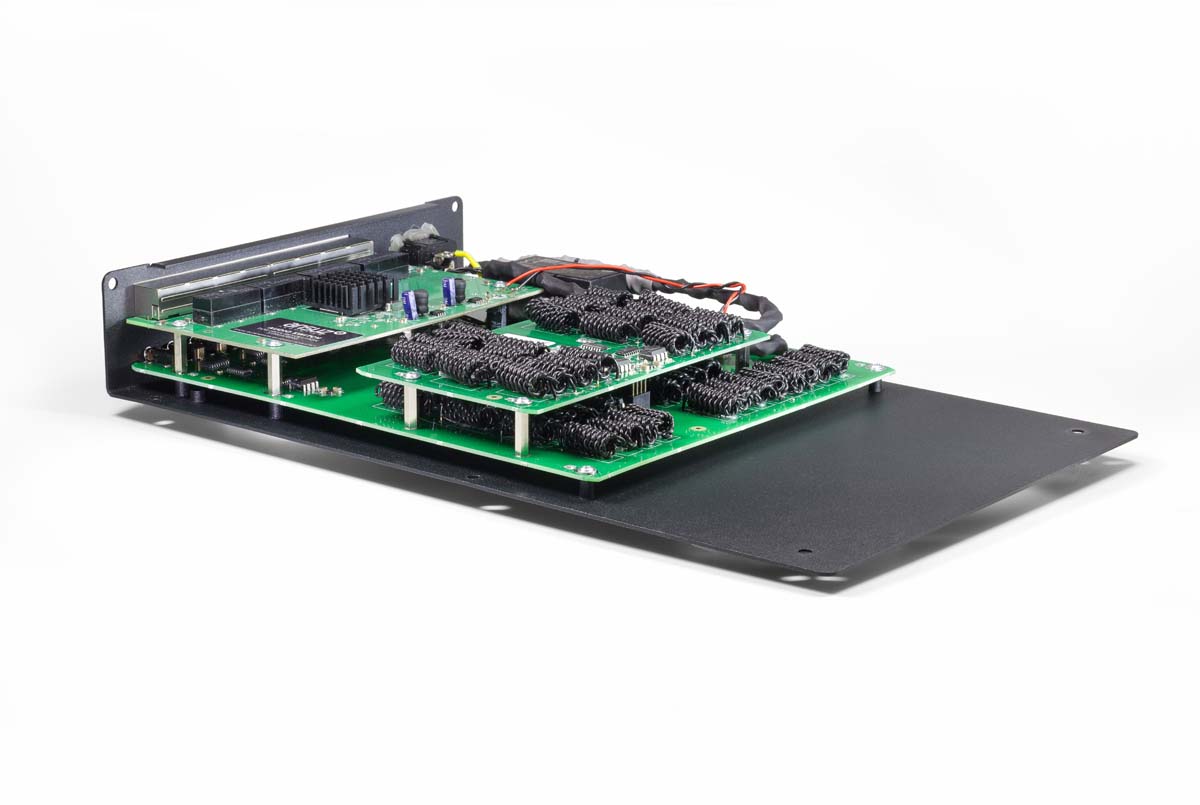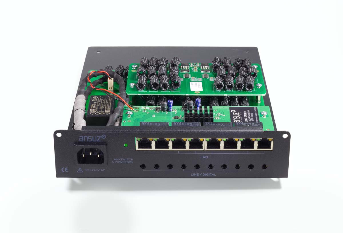 Innen gruppieren sich ein massives Aufgebot an Ansuz-Entstörschaltkreisen und eine auf einem kompakten Schaltnetzteil basierende Stromversorgung um eine schlichte Industrie-Platine mit acht Netzwerkbuchsen. Michael Børresen bestätigt mir, dass er die eigentliche Netzwerktechnik im Originalzustand belässt und weder mechanische noch elektrische Eingriffe vornimmt. Umso mehr konzentriert er sich auf den hochfrequenten Mikrokosmos drumherum, dem er auf seine ganz eigene Art zu Leibe rückt. Sie möchten es genauer wissen? Dann lesen Sie die 184 Seiten lange Arbeit eines Doktoranden der Technischen Universität Eindhoven, die auf Ansuz’ Homepage verlinkt ist. Thema: „Analoge Dithering-Technologien für hochlineare und effiziente Übertragung“. Harter technischer Tobak, gleichwohl auch für den Laien faszinierend. Sie können natürlich auch Michael Børresen auf einer Fachmesse direkt ansprechen. Und sich unversehens in einem Gespräch über die Probleme bei der Erdung einer Yacht wiederfinden.