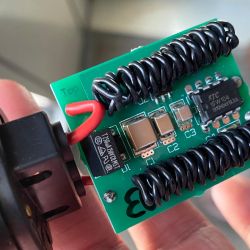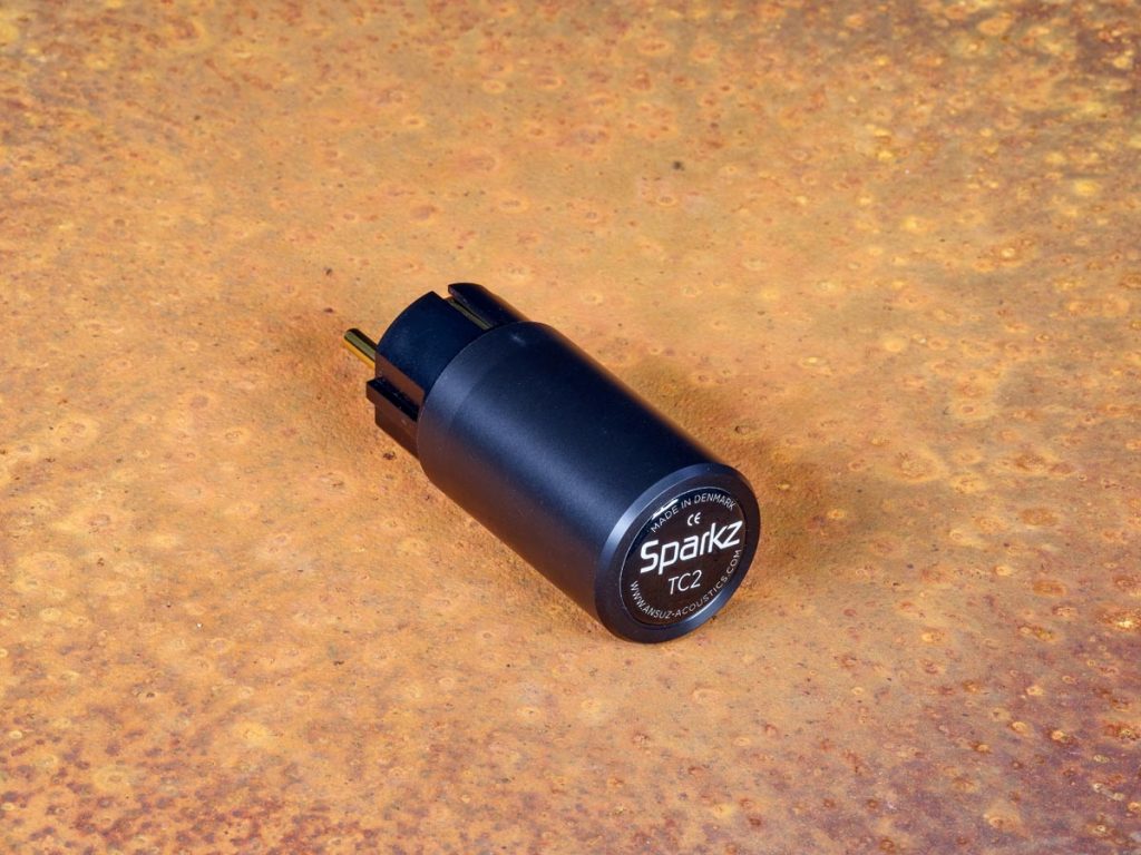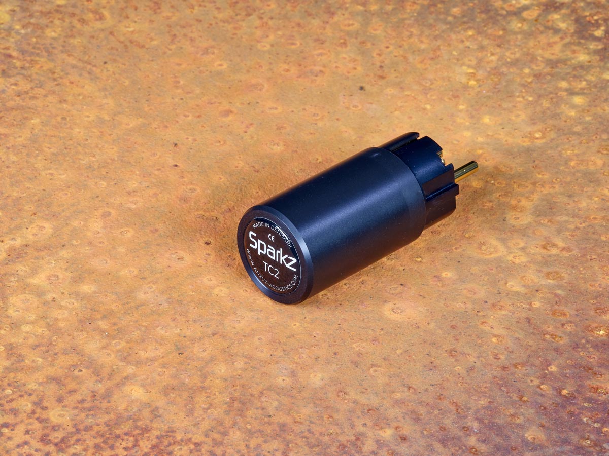 Der Sparkz-Stecker und das Netzkabel A2 eröffnen den Katalog von den Netzstrom-optimierenden Produkten aus dem Hause Ansuz. Der Sparkz TC2 („TC“ steht für „Tesla Coil“) besteht aus einem Schukostecker, dessen Kontaktstifte mit einer kleinen Platine verbunden sind, die mit insgesamt sechs Teslaspulen und einer kleinen Handvoll weiterer elektronischer Bauteile bestückt ist.