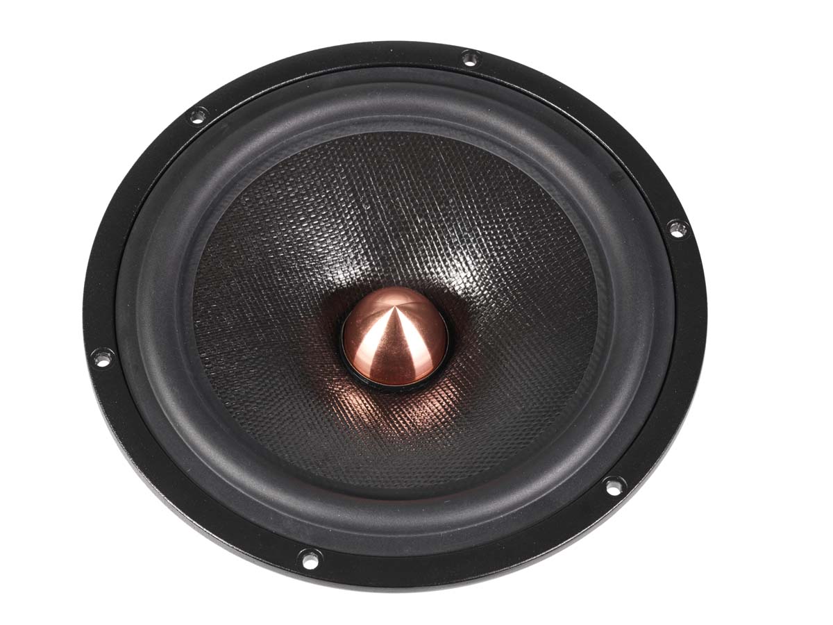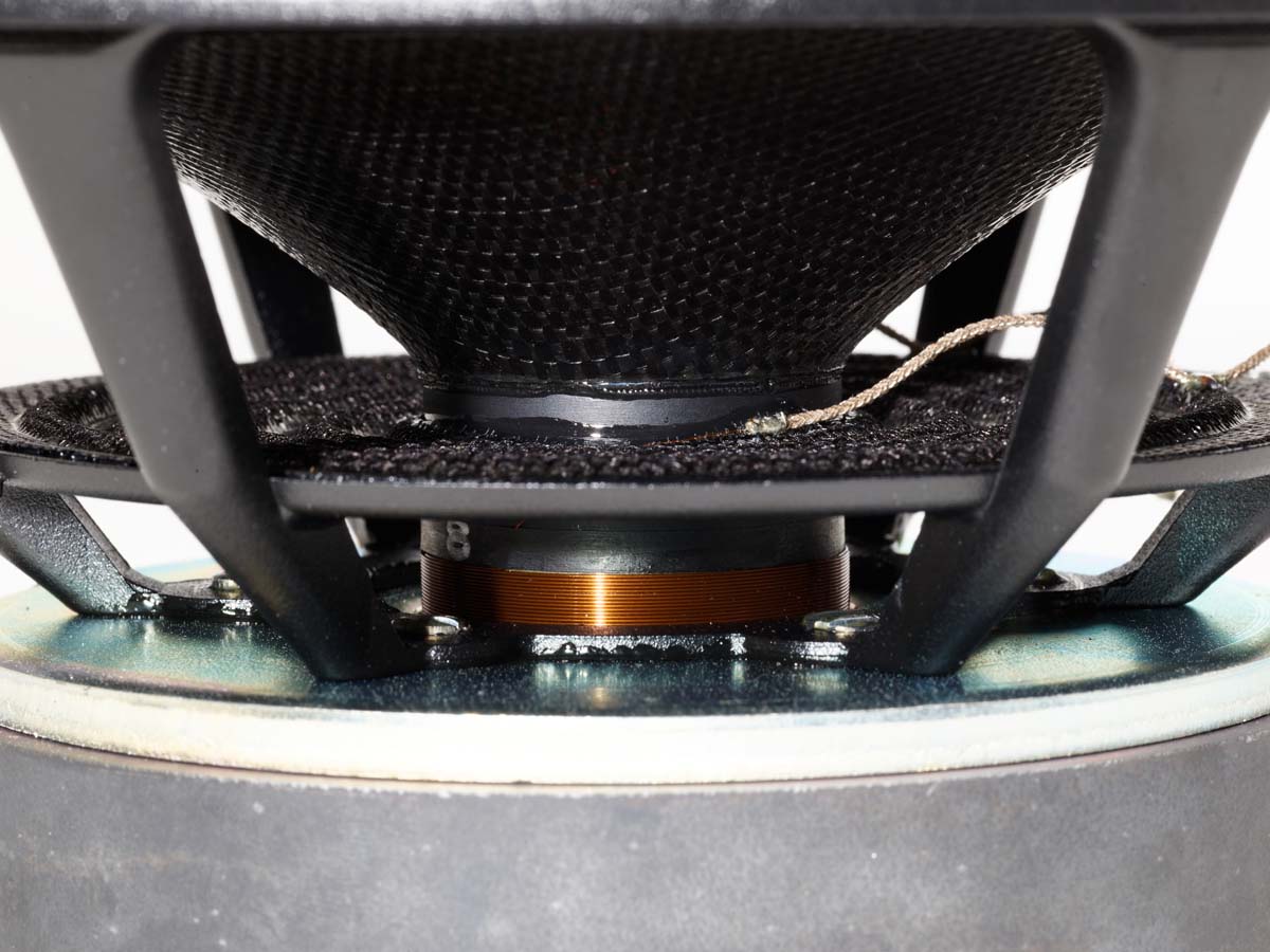 Die Tiefmitteltöner (zwei pro Lautsprecher) von SEAS aus Norwegen, besitzen eine spezielle „Isostatic-Matrix“-Membran und – der Tieftonpotenz halber – eine Langhub-Schwingspule.