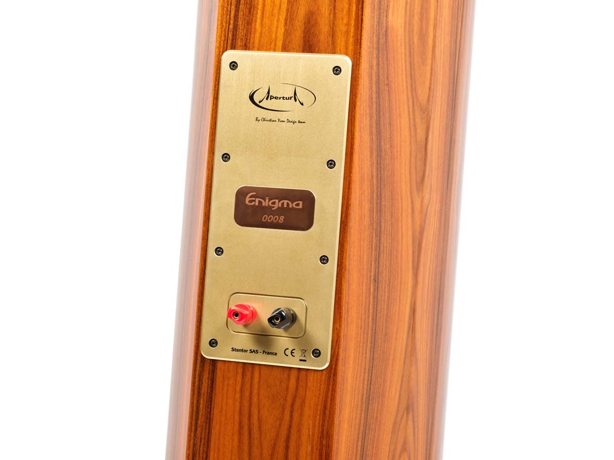 Die Apertura Enigma Mk II ist der klingende Gegenentwurf zum Lautsprecher-Mainstream aus der Großserienfertigung. Kein per Computerprogramm schnell zusammengeklickter Schallwandler der Sorte „Viel bringt viel“, sondern ein Manufakturprodukt, in dem eine Menge Gehirnschmalz und noch mehr Stunden intensiven Hörens, Experimentierens, Verwerfens und neu Versuchens stecken. Der Entwickler Christian Yvon, seit Jahrzehnten im Geschäft (von ihm stammen ein paar bemerkenswerte Konzepte der Lautsprecher-Labels Sonus Faber und Goldmund), hat in sein amtierendes Boxen-Flaggschiff Herzblut und Erfahrung investiert – und eine tönende Skulptur geschaffen, die alles andere als jedermanns Liebling sein will.