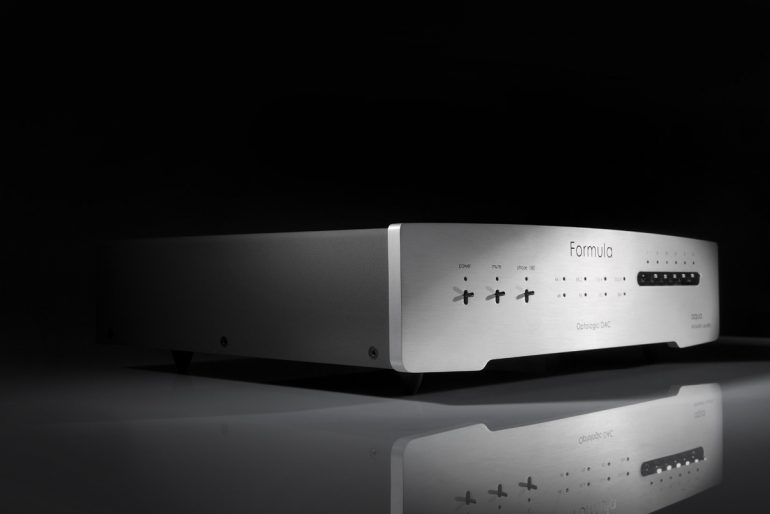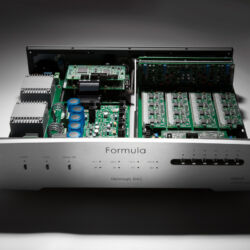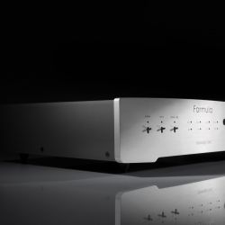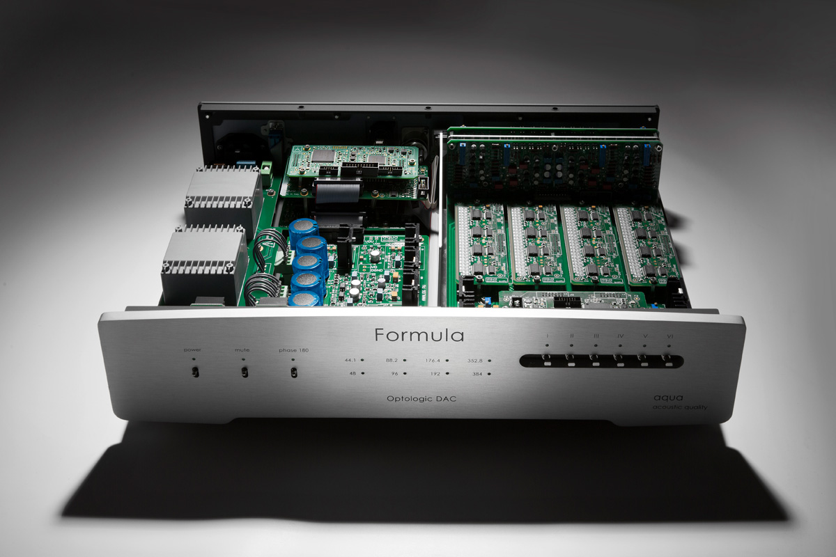 Der derzeitige Top-DAC von Aqua hört auf den Namen „Formula xHD“. Dass die hauseigene Aufrüst-Politik funktioniert, beweist das Kürzel „xHD“, das ein 2017 erfolgtes Update des Wandlers signalisiert. Es ermöglicht nun das Abspielen von PCM-Dateien bis 768 kHz Samplingfrequenz und des DSD-Formats DSD256 (Quad DSD). Neben dem dafür nötigen Platinentausch umfasst das Update auch neue Firmware für den Steuerchip des R2R-Widerstandsnetzwerks, die eine Klangverbesserung mit sich bringen soll.