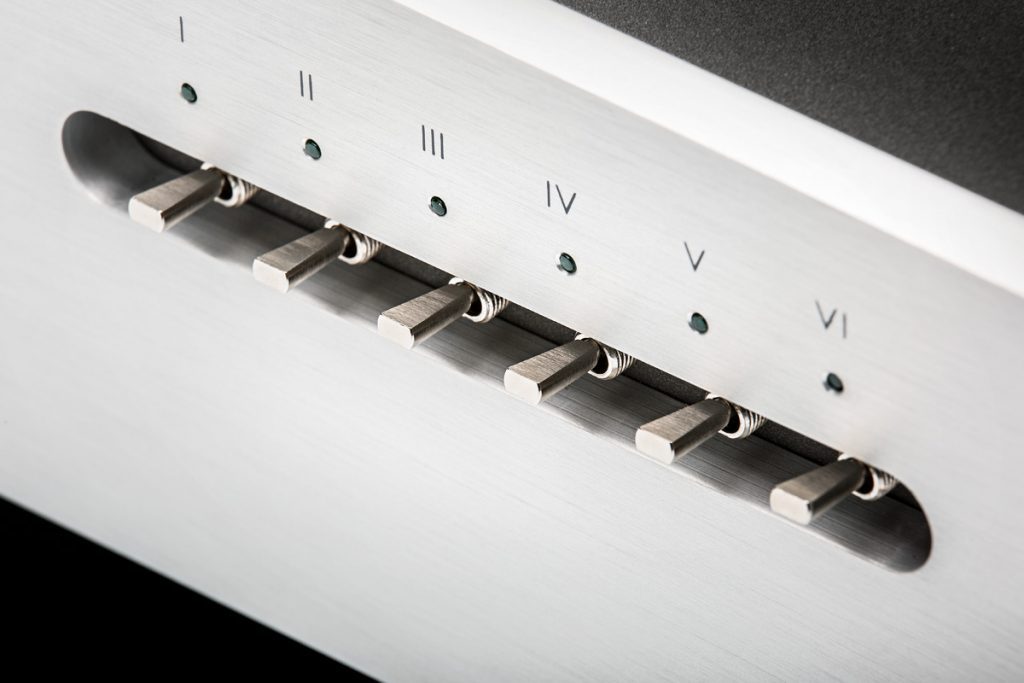 In Sachen Ausstattung und Bedienung bietet der italienische Nobel-DAC – nun ja, mehr als nichts. Der Phasenumschalter ist definitiv nützlich, der Mute-Knopf nett, sofern keiner am Verstärker vorhanden ist (was eigentlich sein sollte). Acht dezent glimmende LEDs signalisieren die empfangbaren PCM-Samplefrequenzen von 44,1 bis 384 kH, was bei Eintreffen von 768 kHz passiert, konnte ich nicht prüfen. Die Eingänge werden mit hochwertigen Kippschaltern angewählt und könnten gerne mit Klartext beschriftet sein – die vorhandenen römischen Ziffern sehen vor allem schick aus. Eine Fernbedienung ist optional erhältlich.