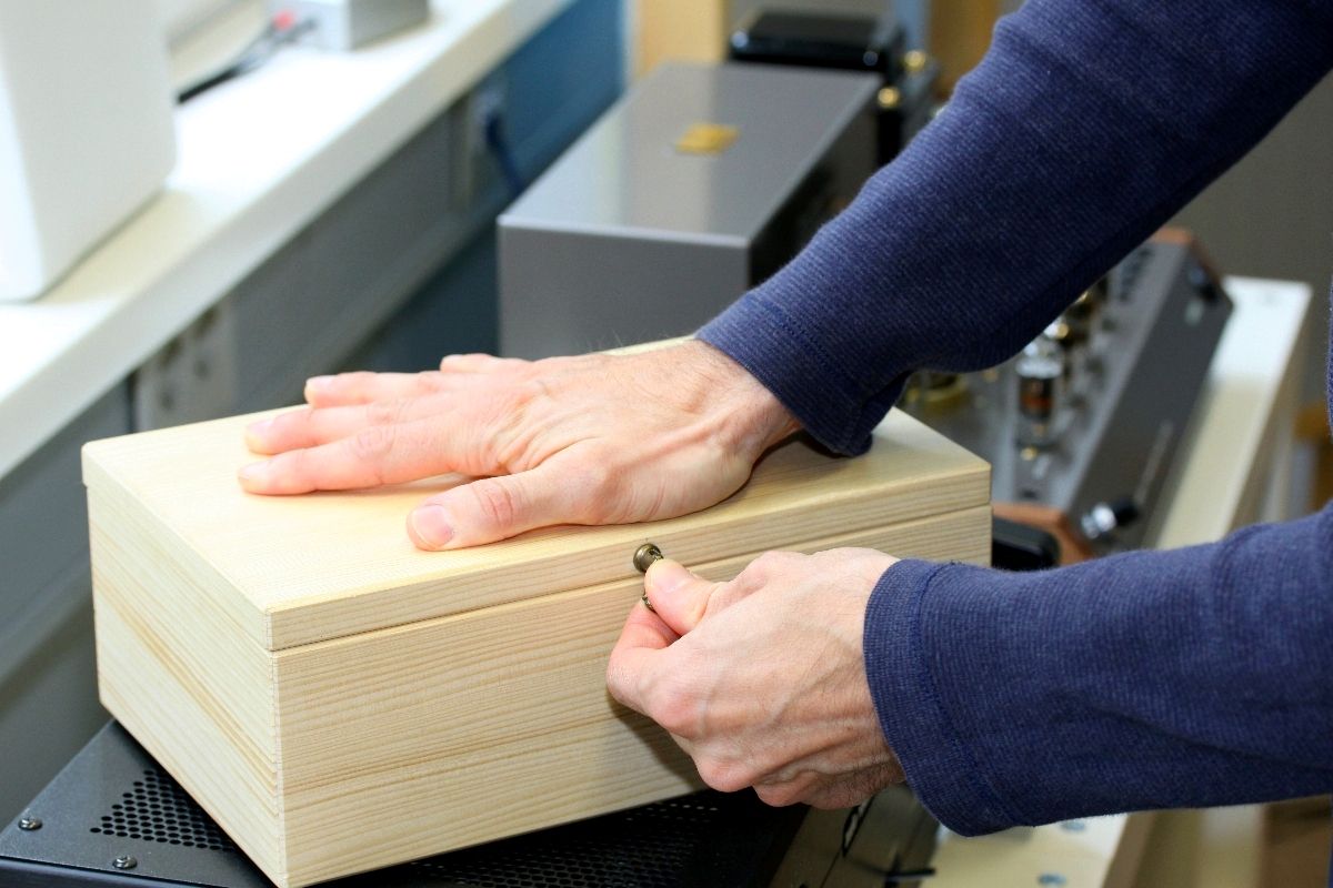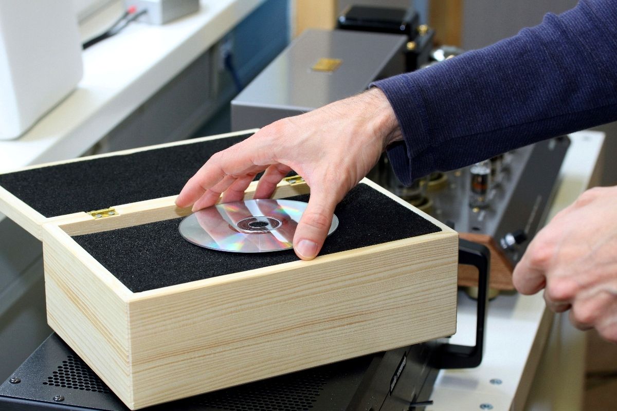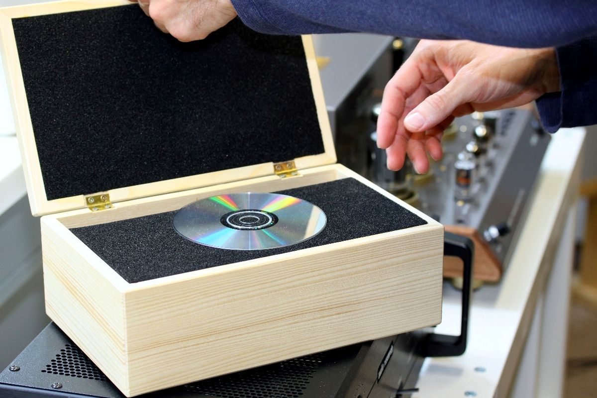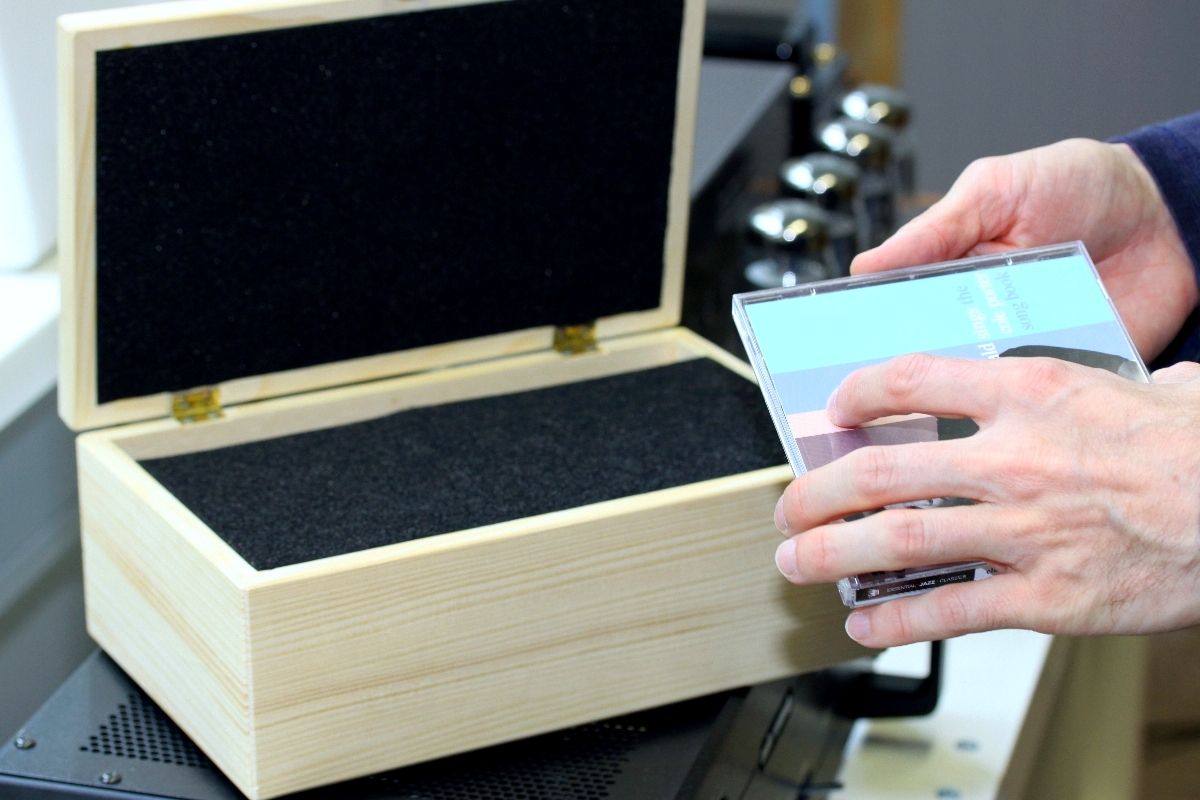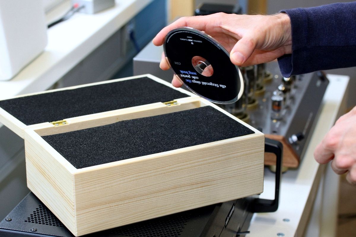Angefangen hat es damit, dass wir auf ein HiFi-Zubehör namens „Klangschatulle“ aufmerksam wurden. Google sei Dank war auch schnell klar, worum es sich dabei handelt: die Klangschatulle ist ein Holzkästchen etwa von der Größe eines Humidors. Die Funktion: Man legt eine CD für wenige Sekunden hinein und nach dieser „Behandlung“ soll die Scheibe besser klingen. Okay: Das, was Sie jetzt denken, ging uns auch durch den Kopf (und das wollen wir hier nicht präzisieren). Der nächste Gedanke lag auf der Hand: Sicher ein überaus lohnendes Objekt, um Szene-Voodoo und Esoterik einmal richtig auf die Hörner zu nehmen. Also, wie wäre es mit Klangschatulle im Vergleich zu Orangenkiste, Klangschatulle im Vergleich zu echtem Humidor, Klangschatulle im Vergleich zu geerdeter CD-Hülle – und so weiter. Unsere Forschungsergebnisse schienen natürlich schon im Vorfeld festzustehen: die Schatulle muss sich immer knapp geschlagen geben (denn sie kann ja nicht funktionieren).