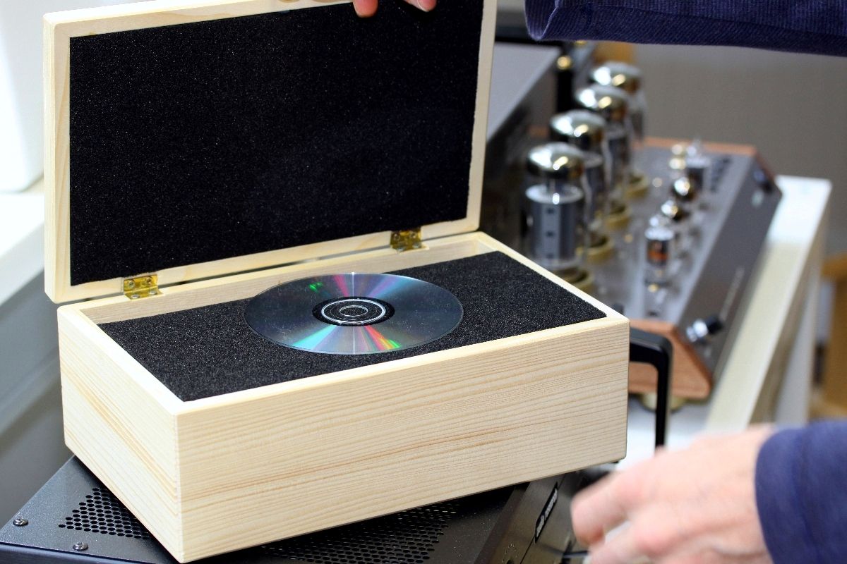 Laut Aussage von Herrn Bartl hat der ganze Vorgang die Ableitung elektrostatischer Ladung zur Folge, so dass der Servo des Lasers nicht so stark durch Ladungsfelder beeinflusst werden soll. Geringere Störungen beim Servo des Lasers sollen weniger Störungen beim Auslesen und somit eine präzisere Abtastung bewirken. Letztlich ist das Ganze zumindest theoretisch logisch und nachvollziehbar. Was allerdings der im unteren Teil der Schatulle eingebaute Bergkristall beiträgt, bleibt, zumindest mit Hilfe anerkannter Physik, unerklärlich … Mit einem Preis von 470 Euro ist die Klangschatulle freilich alles andere als ein preiswertes Vergnügen. Trotzdem muss aber gesagt werden: Es funktioniert.