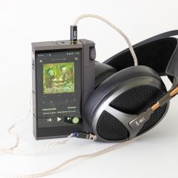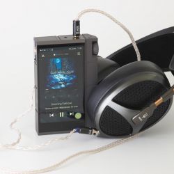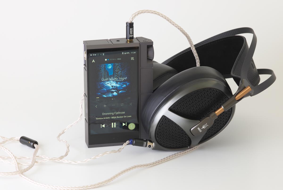 Der Kann Cube lässt sich dafür unter Mac OS X ohne Treiberinstallation direkt als hochauflösender USB-DAC verwenden, der unsymmetrische Ausgang lässt sich außerdem nach entsprechender Vorgabe über „Einstellungen“ als optischer Digitalausgang verwenden, der Dateien im S/PDIF-Format ausgibt. Wer keine Lust auf Dauerbetrieb via Kopfhörer hat, kann den Player auch in seine Anlage integrieren. Momentan geschieht das noch mit einem entsprechenden Y-Kabel, das bestenfalls – Stichwort optimale Rausch- und Gleichtaktunterdrückung – am symmetrischen 2,5-mm-Klinkenausgang angeschlossen ist. Zusätzlich ist der Player mit einem speziellen 5-poligen Mini-XLR-Ausgang ausgestattet, der die symmetrische Verbindung beispielsweise zu professionellen Aktivlautsprechern ermöglicht. Ein entsprechendes Kabel, das PEE41, hat AK im Programm, für den Test müssen wir aber darauf verzichten – es ist zurzeit ausverkauft. Dafür hat uns der deutsche AK-Vertrieb Headphone Company aus dem schönen Heidelberg einen ganz besonderen Kopfhörer fürs Testhören zur Verfügung gestellt: Den nach dem isodynamischen Prinzip arbeitenden Super-Hörer Empyrean des rumänischen Kopfhörer-Spezialisten Meze Audio. Für den rund 3000 Euro kostenden Top-Hörer gibt es ein spezielles Anschlusskabel, das die Verbindung mit dem symmetrischen 2,5-mm-Ausgang des Kann Cube herstellt. Die beiden anderen Hörer für den Kann-Cube-Test, ein AKG K 702 Studio und ein Beyerdynamic T1, finden ganz konventionell Anschluss an der 3,5-mm-Buchse, der Player läuft in dieser Kombination also im unsymmetrischen Betrieb.