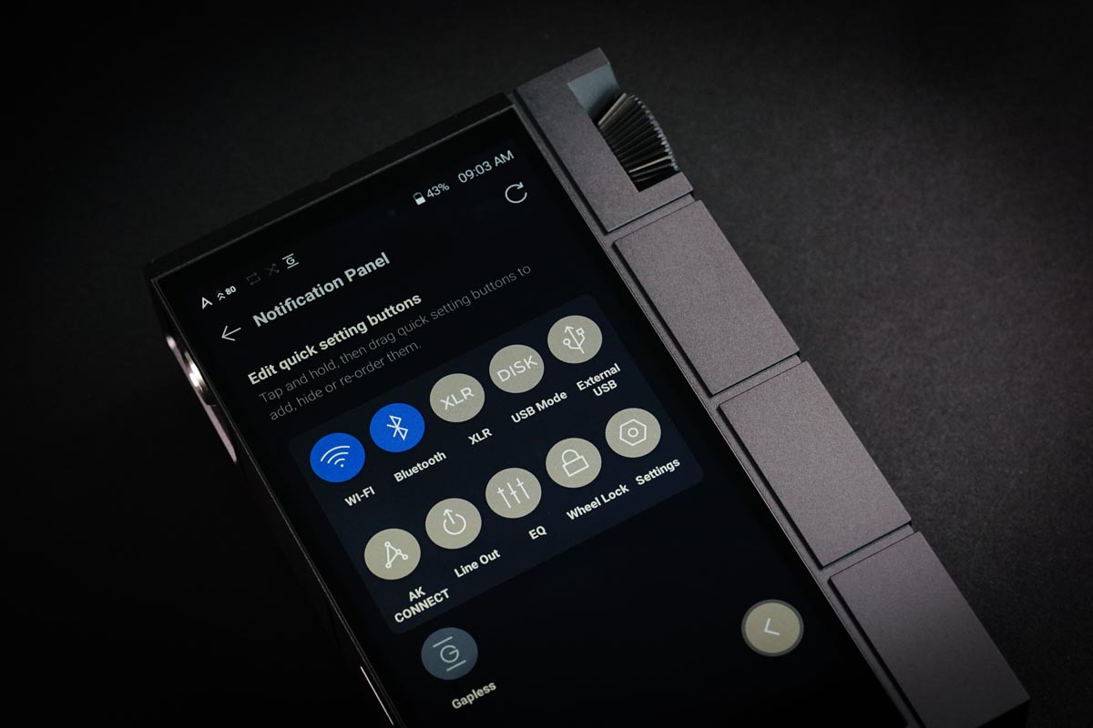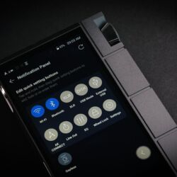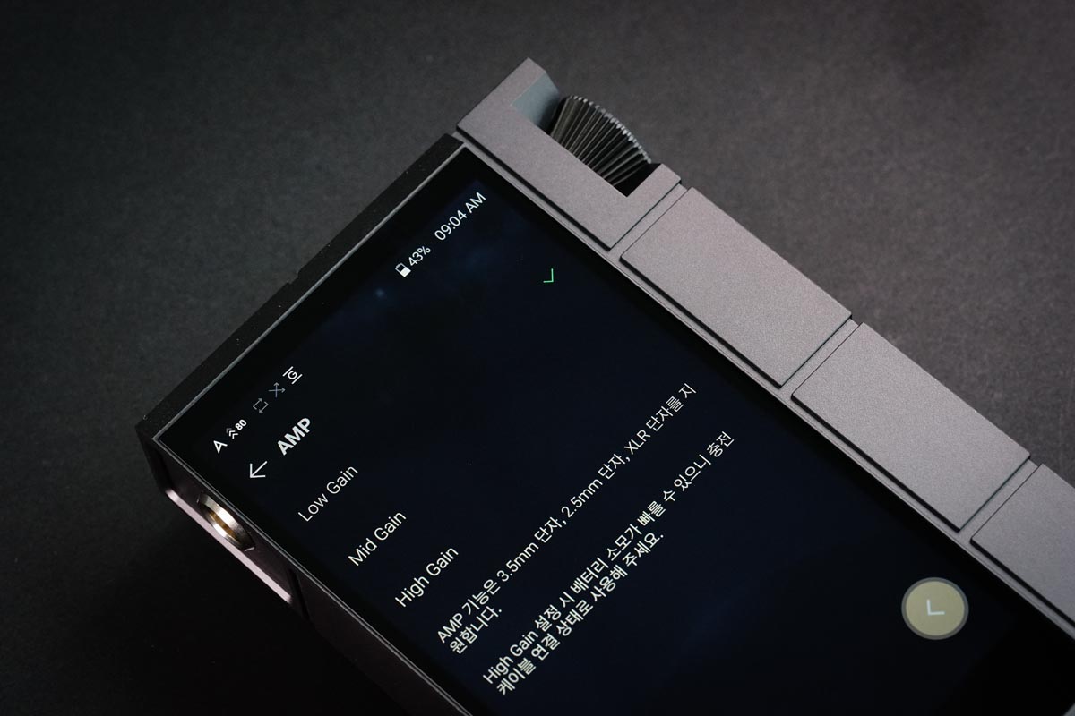 Apropos Kopfhörerbetrieb: Astell & Kern hat dem Neuen zwei neu entwickelte, vollsymmetrisch aufgebaute Verstärkerstufen spendiert, die in puncto Dynamik nicht nur die Mitbewerber sondern auch die Anverwandten blass werden lassen: Im symmetrischen Betrieb stellt der Spieler eine Spannung von immerhin 12 Vrms bereit, womit er den älteren Bruder Kann, der es auf 7,0 Vrms bringt, deutlich übertrifft. Allerdings bedarf es hierzu eines 2,5-mm-Klinken-Kabels. Am unsymmetrischen Ausgang mit seinem gängigeren 3,5-mm-Klinken-Anschluss halbiert sich die Ausgangsspannung auf 6 Vrms. Sehr gut gefällt uns die Möglichkeit, die Verstärkung in drei Stufen – „Low“, „Mid“ und „High“ – voreinzustellen, in etwa vergleichbar mit „Pre-Gain“ der Super-HPAs von Lake People/Violectric. Auf diese Weise lassen sich laute und leisere Kopfhörer an den Spieler anpassen – zum Segen für Mensch und Maschine.