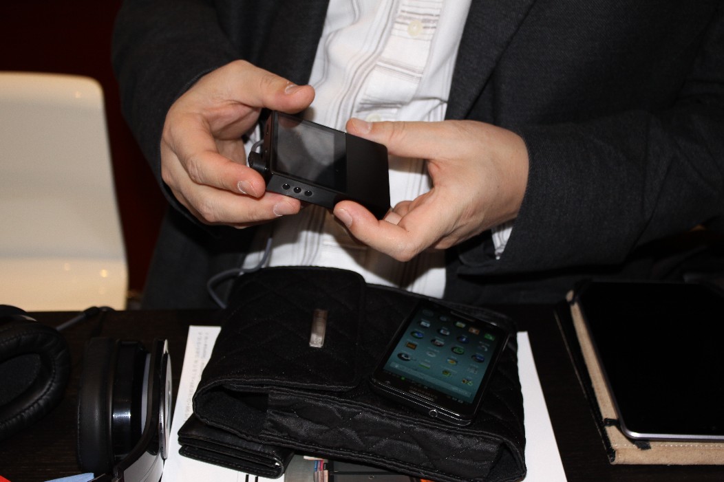 Der AK100 hat rein gar nichts mit Videos, Bildern oder Games zu tun, sondern spielt ausschließlich Musik, und das am liebsten in HD-Qualität bis hin zu 24Bit/192 kHz. Die Files kommen von gleich zwei Speicherkarten (2 x 32GB), akzeptiert werden derzeit WAV, FLAC, WMA, MP3, OGG, APE sowie in naher Zukunft auch ALAC.