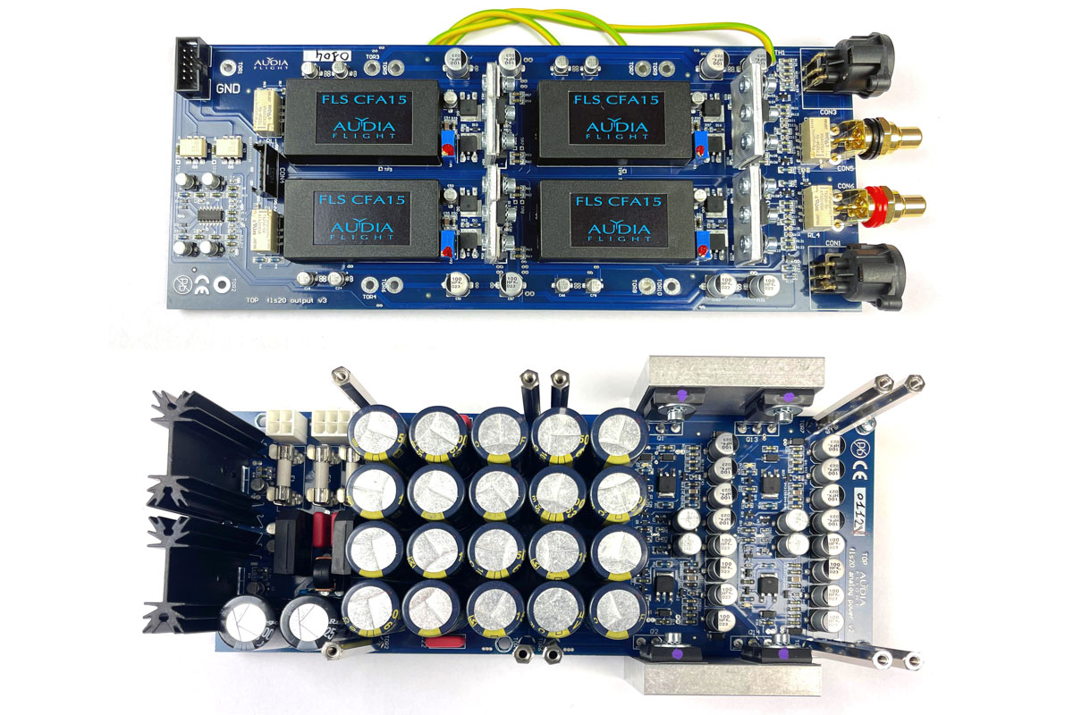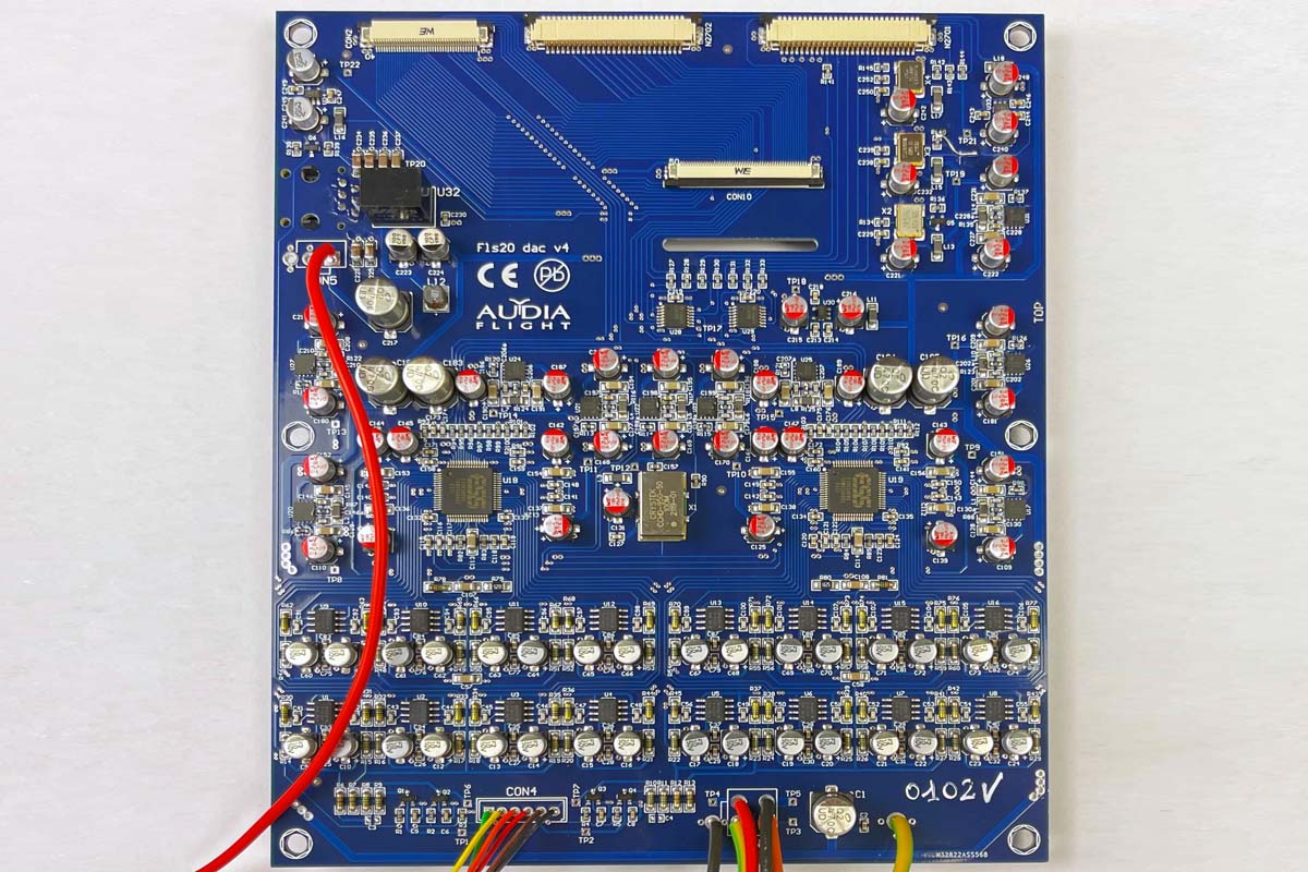 Das Gehäuse trägt seinen Teil dazu bei. Nicht nur optisch, sondern auch konstruktiv: Das Gewicht des FLS20 resultiert nicht bloß aus der massiven Frontplatte oder den mechanischen Reserven des Toplader-Deckels. Es ist das Ergebnis einer klaren Philosophie: Wer Stromversorgung ernst nimmt, muss Masse bauen. Drei Ringkerntrafos – einzeln abgeschirmt und streng getrennt: einer für die analoge Stufe (80 W), einer für die digitale Sektion (85 W), und ein dritter (15 W) für die Logiksteuerung. Dazu gesellen sich vier diskrete Spannungsregler und zehn äußerst rauscharme Netzteilstränge für die digitalen Bereiche. Das Schaltungsdesign selbst trägt die Handschrift von Audia Flight: vollsymmetrisch, mit Class-A-Stromrückkopplung, kurzen Wegen und einem Mono-DAC-Konzept auf Basis des ES9038Pro – je ein Chip pro Kanal. Der Taktgeber stammt von Crystec (CCHD-950), ebenfalls hochwertig, ebenfalls low-noise. Anschlussseitig bleibt man offen: vier Digitaleingänge, vier Ausgänge, zwei analoge Outputs.