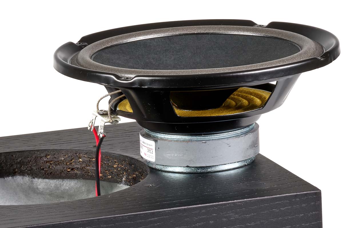 Bestückung: Dreiviertelzoll-Kalottenhochtöner (Seide-Polyamid-Gemisch), Sechszoll-Tieftöner mit Papiermembran