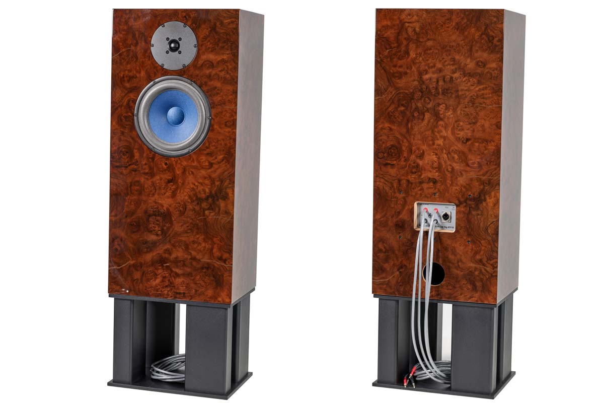Bestückung: 1 x 20-cm-Feldspulen-Basstreiber (Hanfmembran, Schaumstoffsicke), 1 x 25-mm-Feldspulen-Tweeter (Seidenkalotte)
