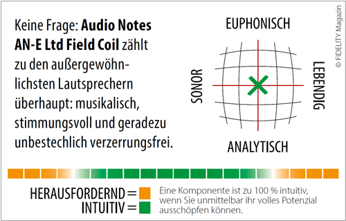 Keine Frage: Die Audio Note AN-E Ltd Field Coil zählt zu den außergewöhnlichsten Lautsprechern überhaupt: musikalisch, stimmungsvoll und geradezu unbestechlich verzerrungsfrei.