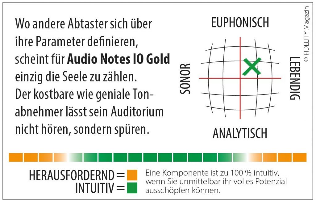 Wo andere Abtaster sich über ihre Parameter definieren, scheint für Audio Notes IO Gold einzig die Seele zu zählen. Der kostbare wie geniale Tonabnehmer lässt sein Auditorium nicht hören, sondern spüren. Preis um 9200,- Euro.