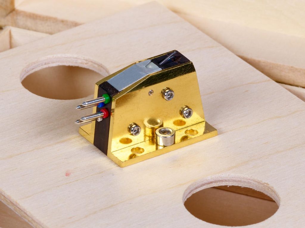 Das Audio Note IO Gold ist ein veritabler Klotz, der sage und schreibe zwanzig Gramm auf die Waage bringt. Schuld daran ist das durchaus große und aus Metall gefertigte Gehäuse, das aber wohl sein musste, um im Innern alles so einrichten zu können, wie man es sich denn wünschte. Außerdem schätzt man das Resonanzverhalten des Systemkörpers als extrem wichtig ein, legte daher auf eine besonders steife Behausung, Eliminierung stehender Wellen und eine möglichst kraftschlüssige Verbindung der Bauteile Wert. Nicht umsonst kann man das System am entsprechenden Arm mit sechs (!) Schrauben befestigen. Im Inneren sind ebenfalls ein paar spannende Ideen verwirklicht worden. Insbesondere dem Nadelträger widmete man einige Entwicklungszeit, sah Qvortrup doch gerade hier eine eklatante Schwachstelle vieler bestehender Konzepte. Um die gewünschte Mischung aus geringem Gewicht und maximaler Stabilität zu erreichen, experimentierte man mit unterschiedlichen Materialien und Geometrien, um letztlich bei einem Röhrchen aus Titan zu landen, das sowohl innen als auch außen konisch verläuft. Also kein ehemals zylindrisches Röhrchen ist, das außen abgedreht wurde. Sein konischer Verlauf mit abnehmender Materialstärke ist laut Audio Note der Schlüssel zum Erfolg. Mit Sicherheit kein günstiger. Dass sämtliche Spulen aus feinstem Silberdraht gewickelt werden, dürfte bei des Firmeneigners Vorliebe für ebendieses Material niemanden mehr verwundern.
