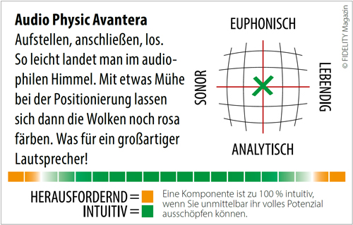 Audio Physic Avantera – Aufstellen, anschließen, los. So leicht landet man im audiophilen Himmel. Mit etwas Mühe bei der Positionierung lassen sich dann die Wolken noch rosa färben. Was für ein großartiger Lautsprecher!
