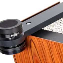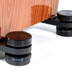Folgt man den Ausführungen des Audio-Physic-Entwicklers, fragt man sich zwangsläufig, ob er sich selbst als Lautsprecherbauer oder als Materialforscher betrachtet. Einen perfekten Ankerpunkt für diese Diskussion liefern die Magnetfüße „VCF V Magnetic plus“ (um 1400 Euro), die uns „zum Spielen“ mitgeliefert wurden. Diestertich konstruierte sie so, dass sie die gewichtige Codex vom Boden lösen und schweben lassen. Nicht vollständig, versteht sich. Die Magneten sind in einen Mantel aus Gewebe eingearbeitet, der sie seitlich fixiert. Der Effekt: Im Vergleich zu den serienmäßigen Spikes spielt die Standbox auf den VCFs so gelöst, frei und transparent, dass man sie mit geschlossenen Augen nicht mehr orten kann. Der Raum vor dem Hörplatzt wird zu einer endlosen Bühne.