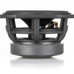 Im Zentrum dieses Trios liegt der federleichte, mit Keramik beschichtete Alu-Hochtöner, der in Sphären von 40 Kilohertz vordringt. Das Abstrahlverhalten des Tweeters wird von einem Gewebering kontrolliert. Darüber und darunter sind zwei 17-Zentimeter-Membranen verbaut, die als Mitteltöner respektive Tief-/Mitteltöner arbeiten. Nicht zu sehen ist der 27-cm-Langhub-Woofer im Inneren der Box. Der übernimmt ab 100 Hertz und spielt bis in die untersten Register, die für die Codex bei 28 Hz erreicht sind. Der Treiber besitzt eine Papiermembran und ist in einem eigenen Gehäuseséparée untergebracht, dessen vom Siliziumcarbid-Pfropfen verschlossener Boden hier gewissermaßen als Luxusversion einer Bassreflexöffnung dient. Blickt man unter die Box, kann man das mausgraue, korallenartige Geflecht sehen.