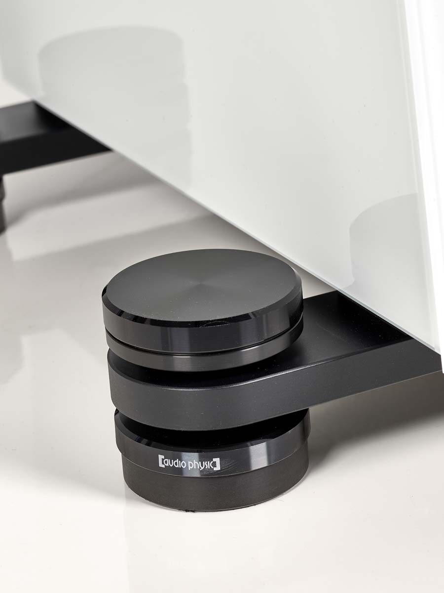 Äußerlich wie auch konstruktiv ist ansonsten vieles beim Alten geblieben, wobei „alt“ keinesfalls mit „gewöhnlich“ verwechselt werden darf: Der 27-Zentimeter-Tieftöner der Vierwege-Konstruktion verbirgt sich in einer Art Druckkammer im Inneren des Gehäuses und gibt die untersten Oktaven bis etwa 100 Hertz über eine Öffnung im Gehäuseboden ab, die mit einem offenporigen, erstmals in der Audio Physic Structure verwendeten Keramikschaum abgedeckt ist. Ebenfalls ungewöhnlich ist der Einsatz eines 40-Millimeter-Aluminiumkonus im Hochton. Manfred Diestertich hat ihm eine Staubschutzkalotte aus Gewebe verpasst, damit der Hörer beim Lauschen nicht an Aluminium denkt – ein Kommentar, bei dem ich ein wenig schmunzeln musste. Einmal, weil er natürlich vollkommen recht hat: Man hört eben, was man sieht. Ein bisschen aber auch, weil die Codex ganz schamlos ihr vollständig aus Glas bestehendes Gehäuse zur Schau stellt.